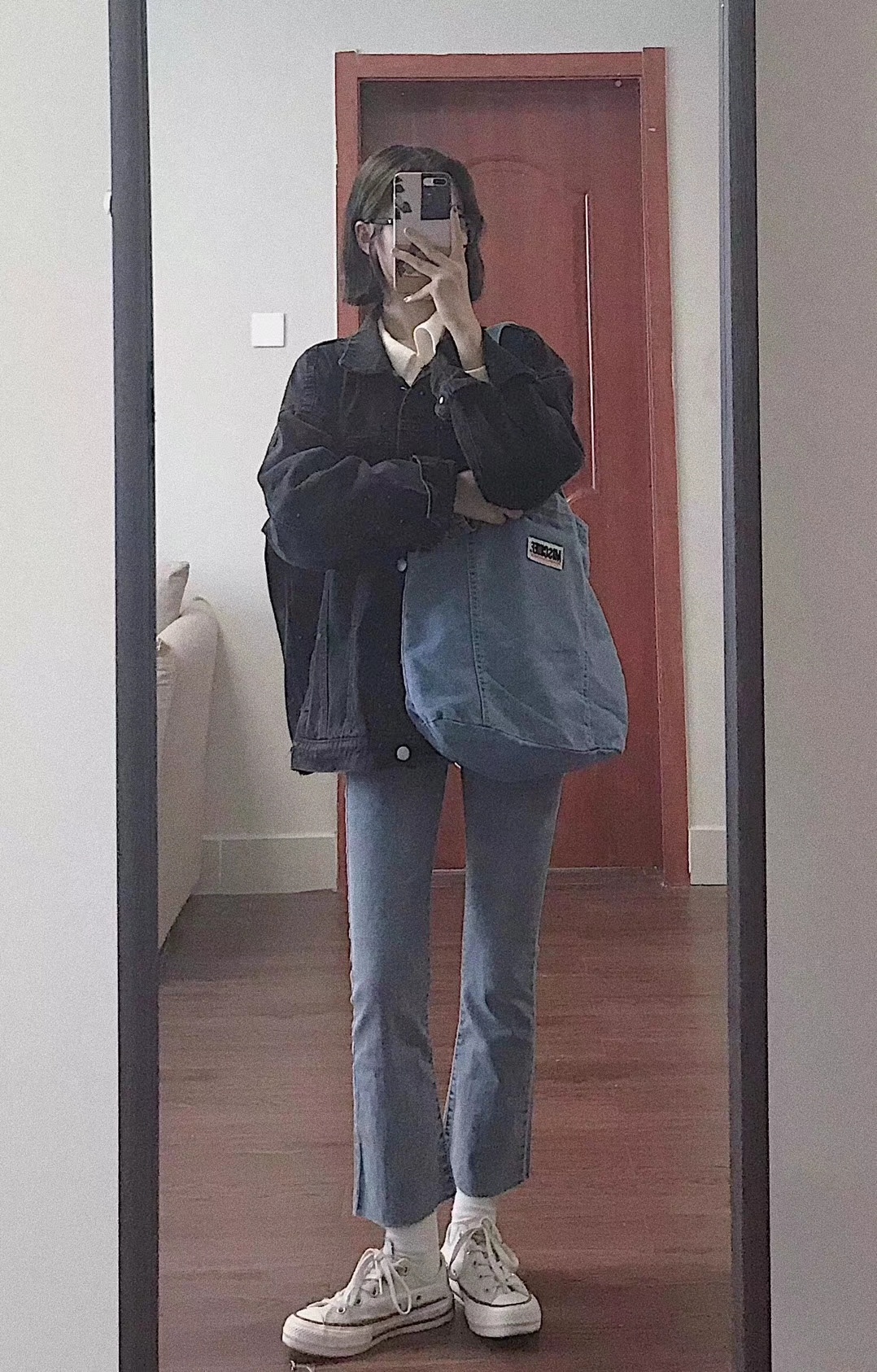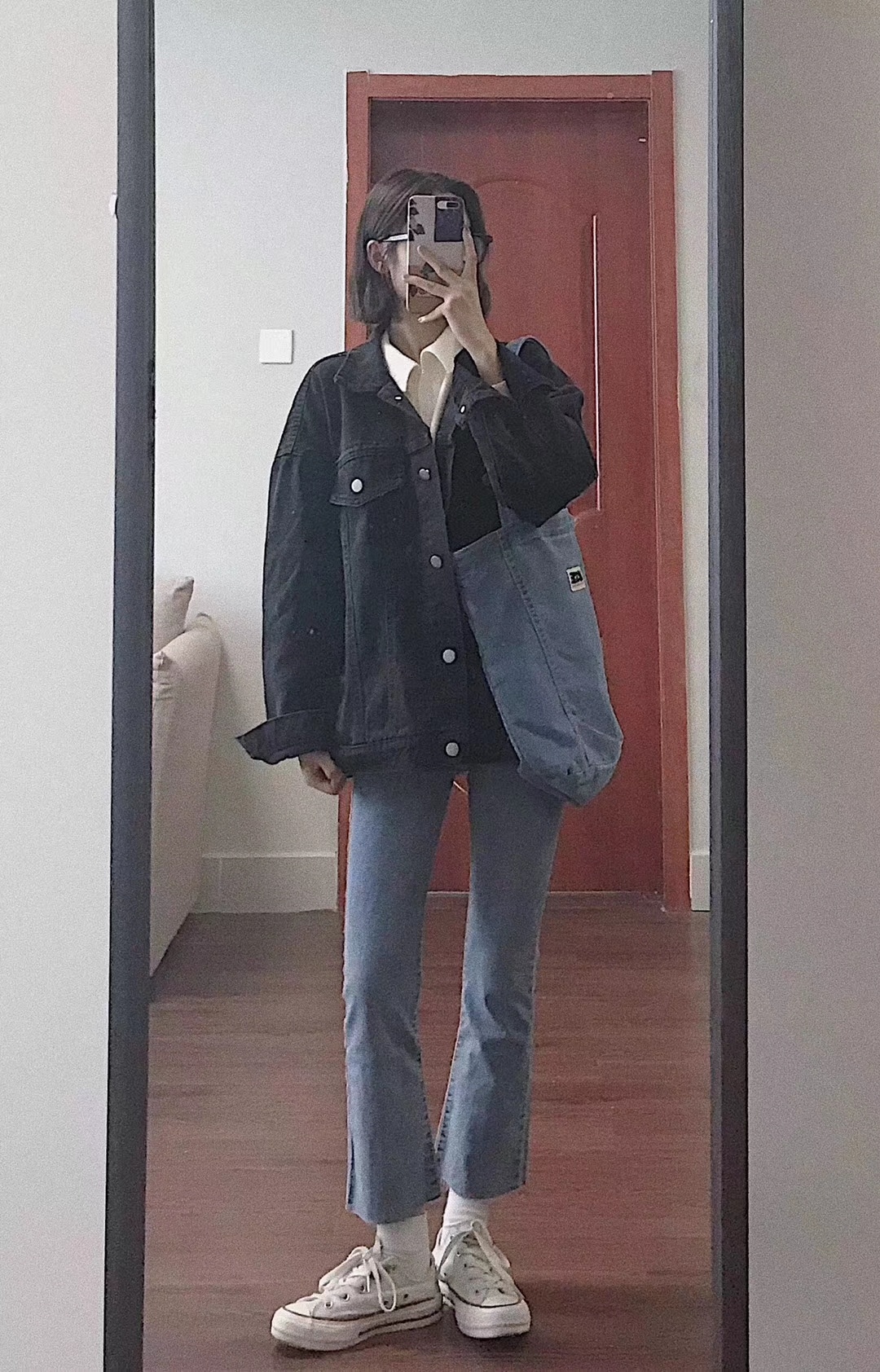 炭黑牛仔系列最最最喜欢的版型设计 整体风格日系不挑人 随便搭配什么单品都很赞 不知道搭配什么的就搭这套的奶油白针织衫 炒鸡奶的!