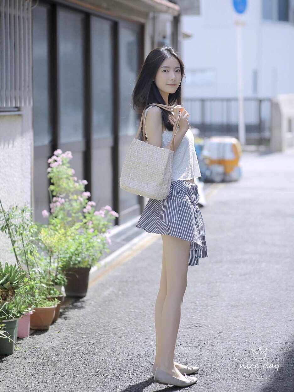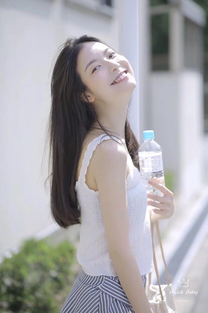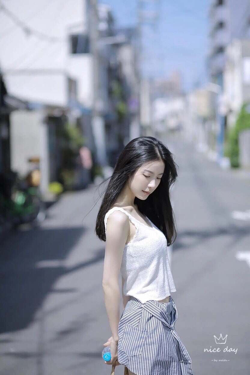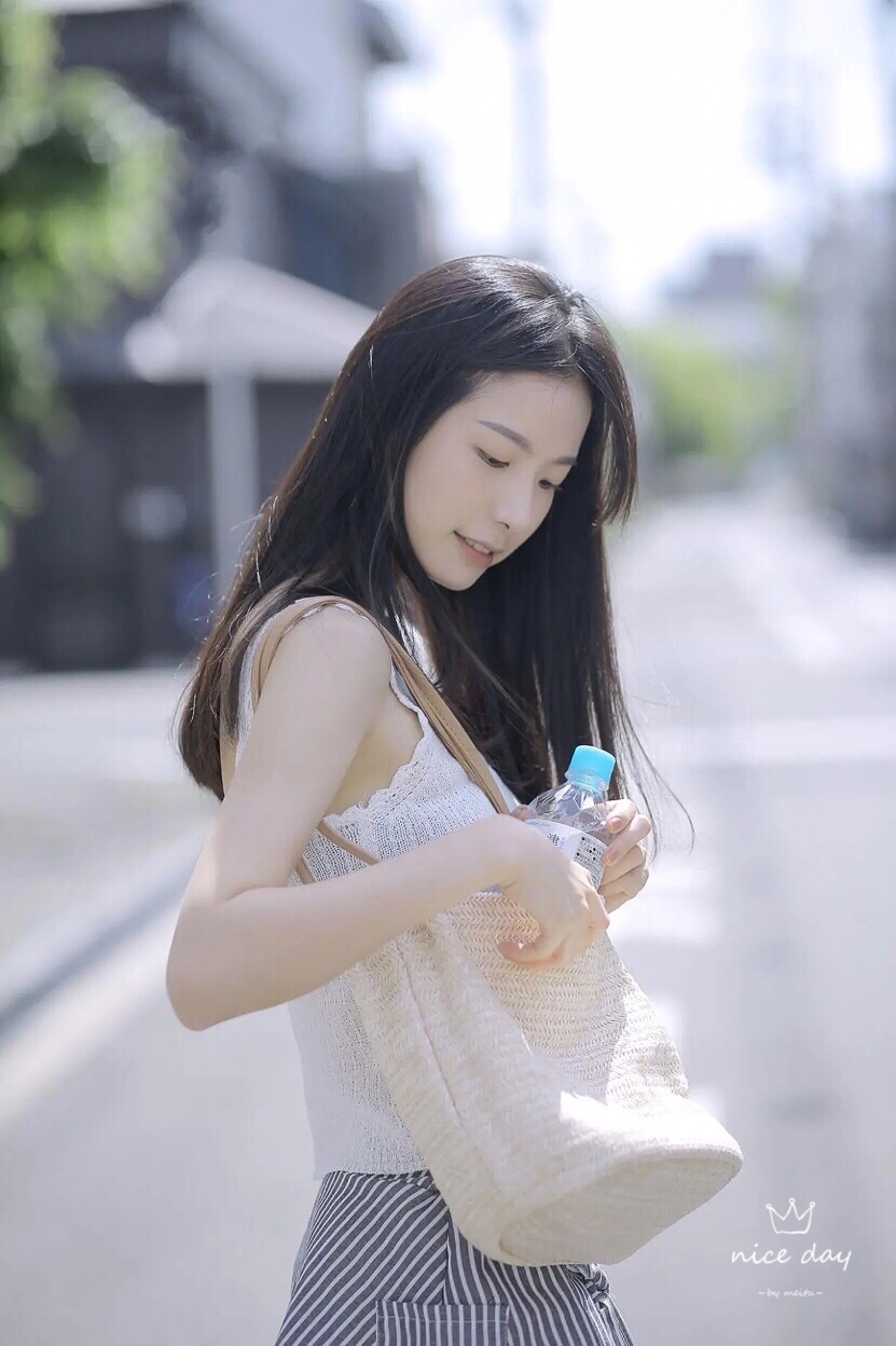 外出拍照,可以让自己侧身对着镜头,头稍微45度仰起来,面向阳光,假装阳光很强烈闭上眼或者用水平挡一下阳光,很有意境也很美。