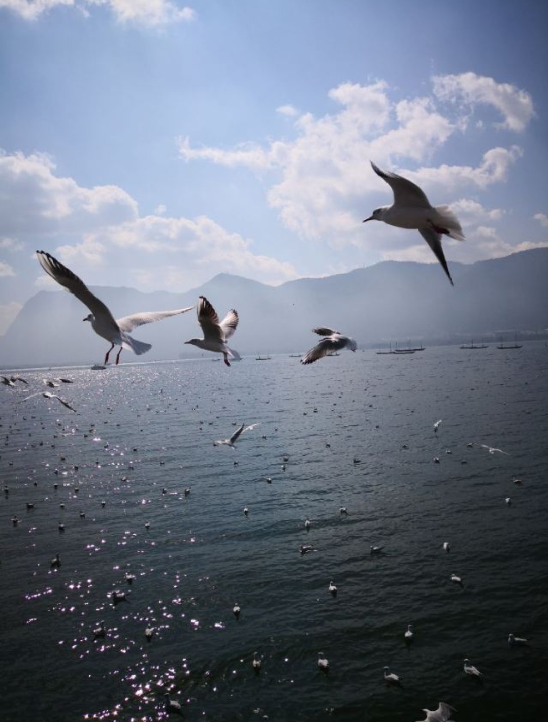昆明湖滇池海鸥飞翔,景色很美。我喜欢看大海安静!。呼吸着海边的空气,享受着宁静的海滩。 我太难受习惯一个人就好快乐开心。#大海呀~#