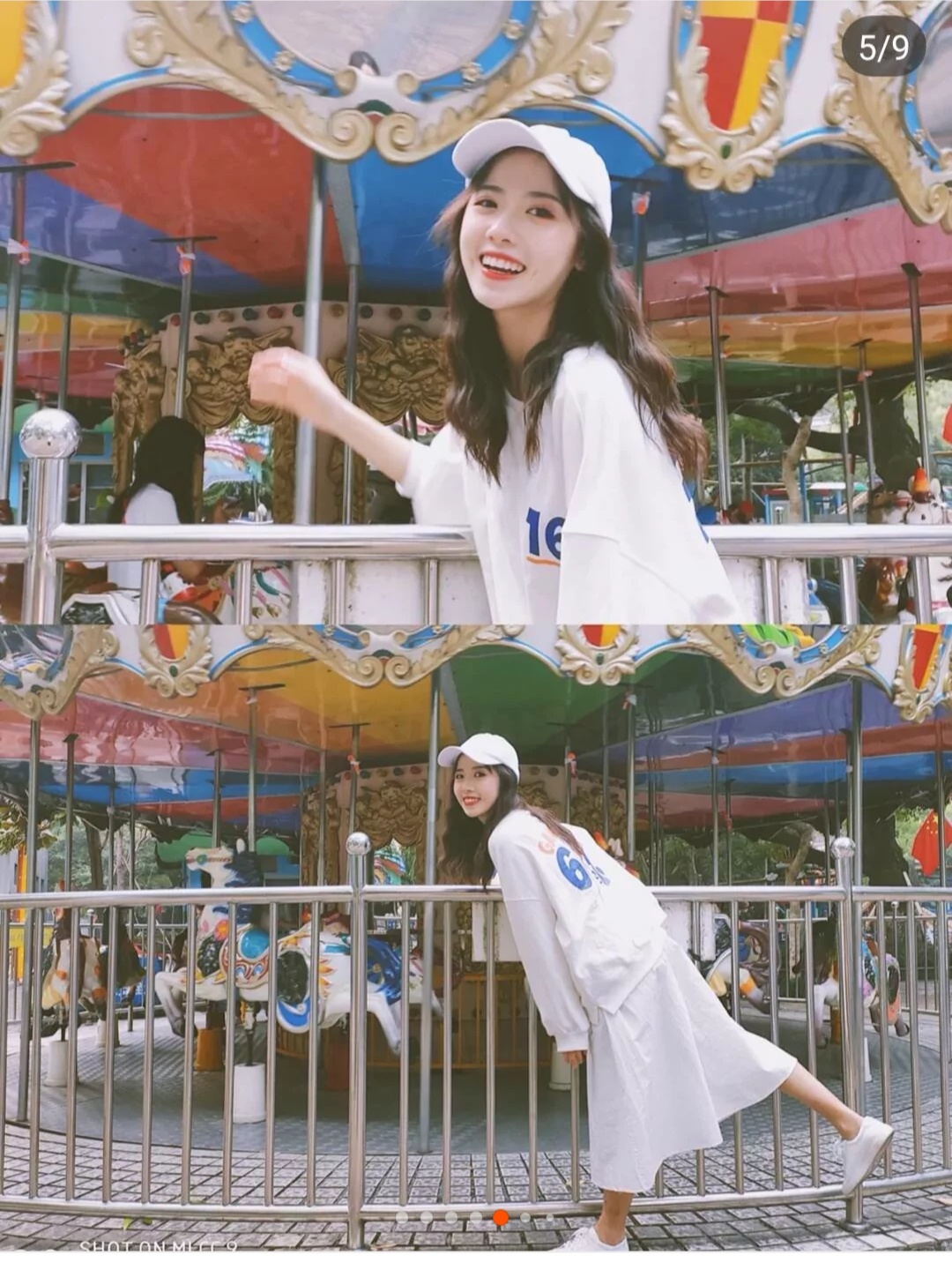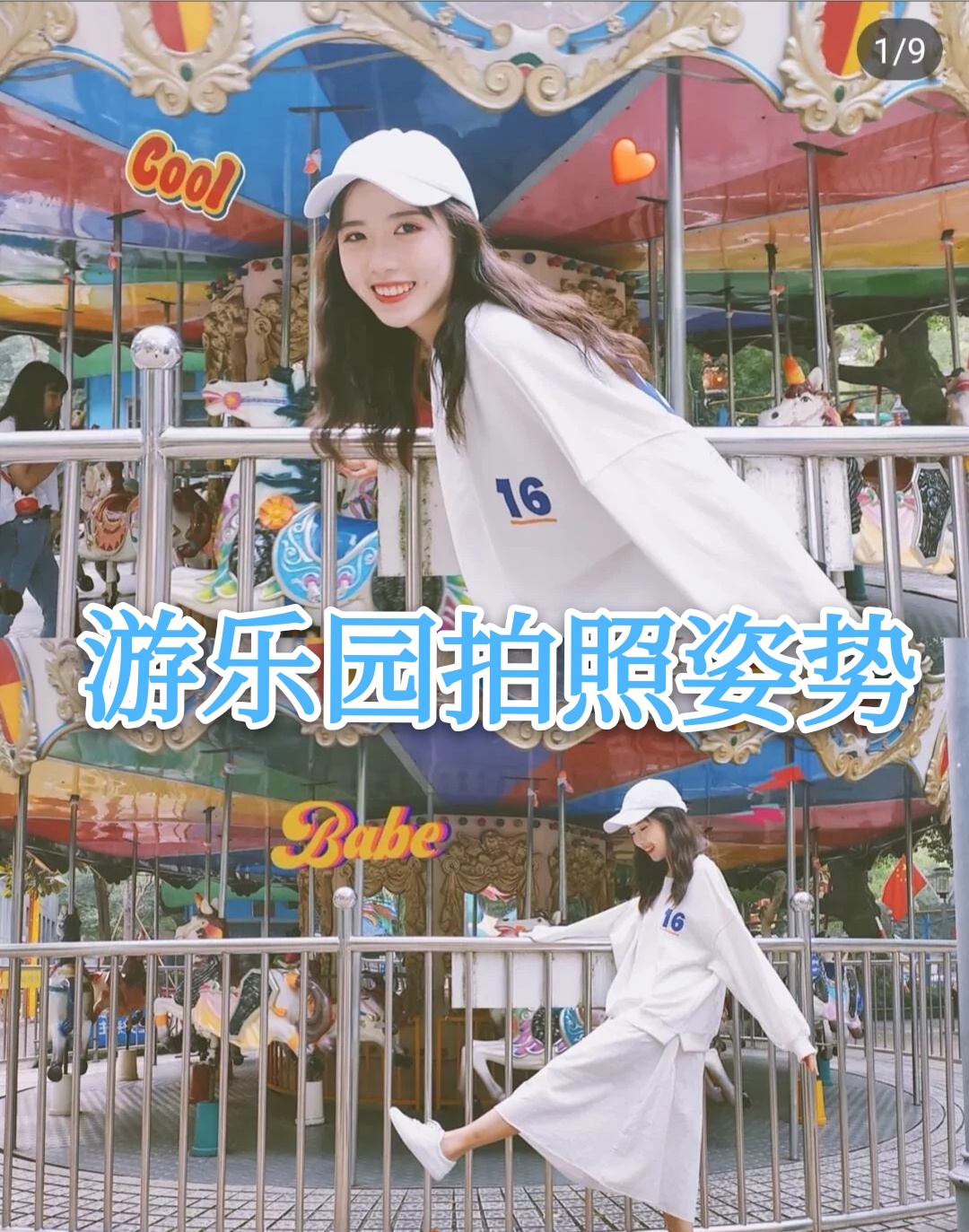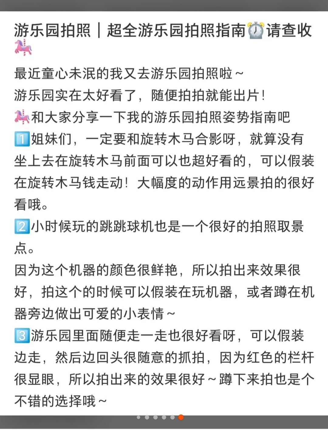 1 姐妹们,一定要和旋转木马合影呀,就算没有坐上去在旋转木马前面可以也超好看的,可以假装在旋转木马钱走动!大幅度的动作用远景拍的很好看哦。