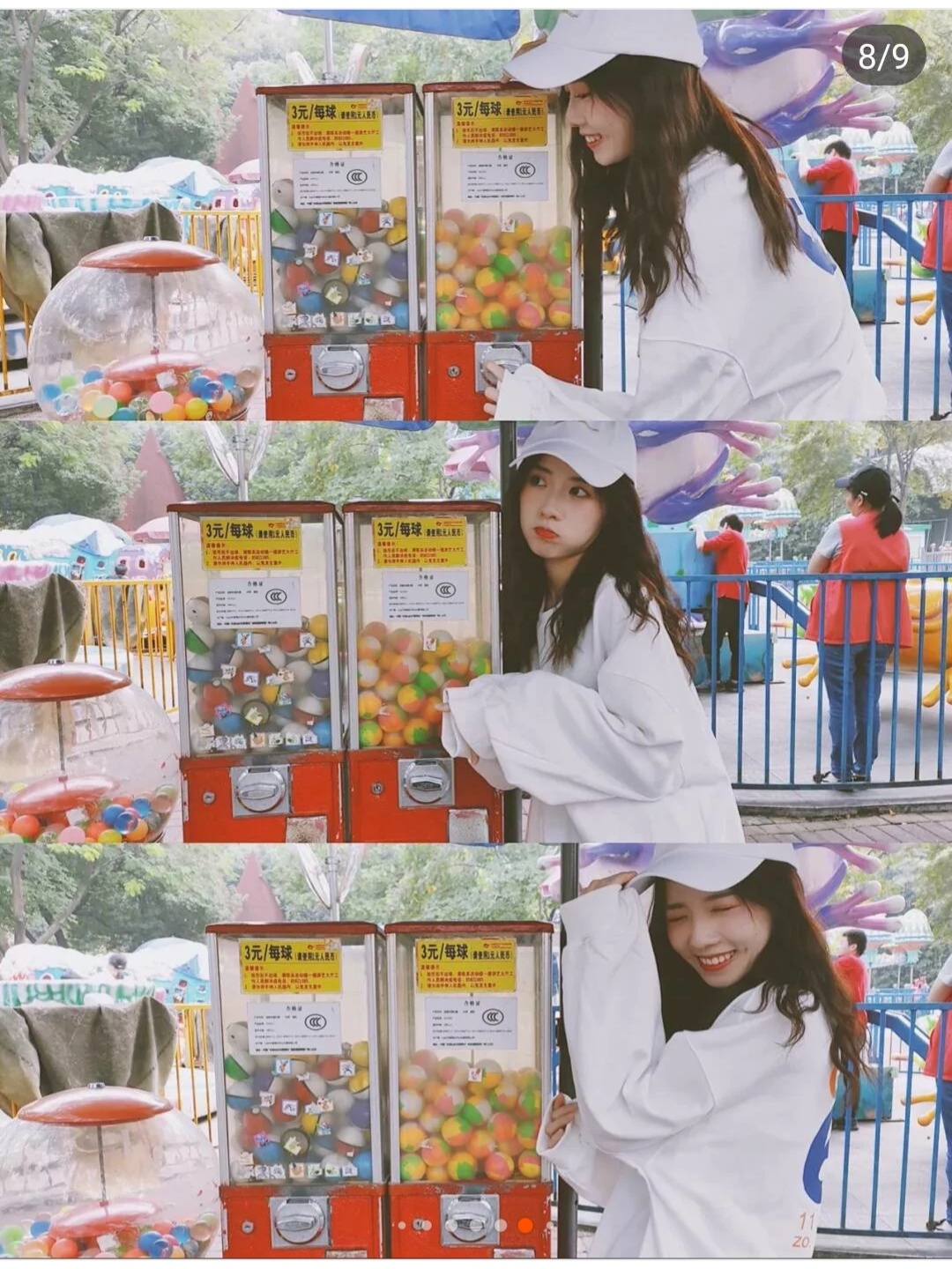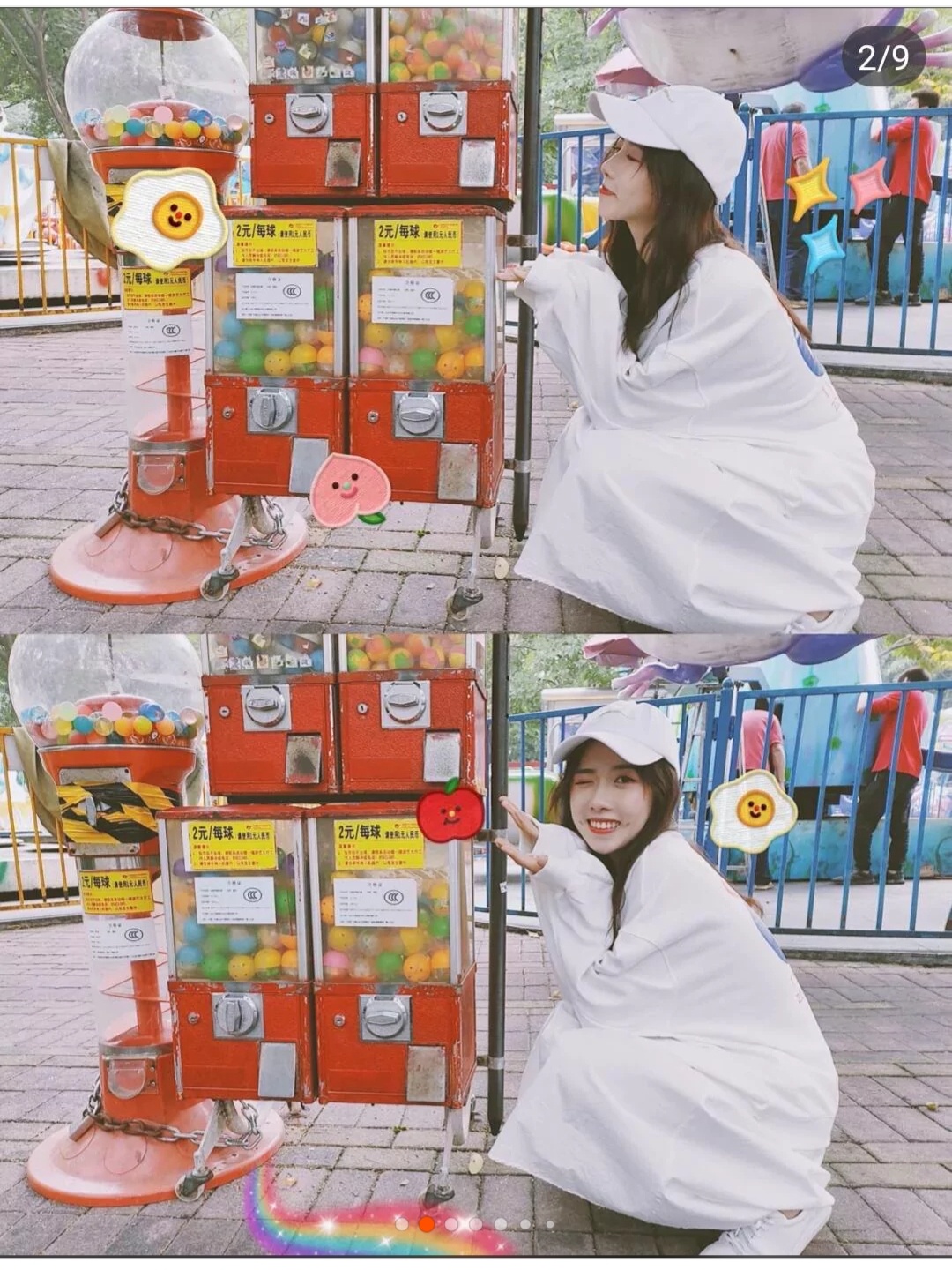 ②小时候玩的跳跳球机也是一个很好的拍照取景点。因为这个机器的颜色很鲜艳,所以拍出来效果很好,拍这个的时候可以假装在玩机器,或者蹲在机器旁边做出可爱的小表情~