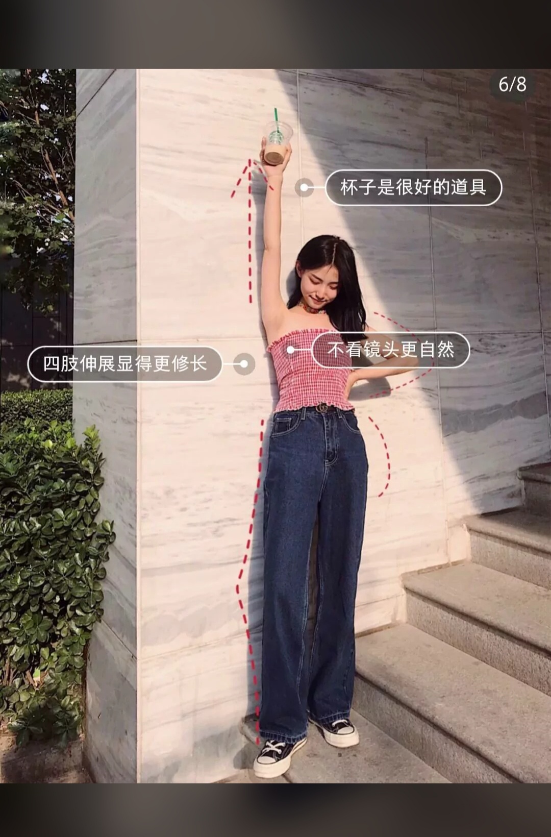 肢体幅度大一点会更好看!伸展手臂或者腿肢体要有线条感才不会僵硬参考图456显得整个人修长很多