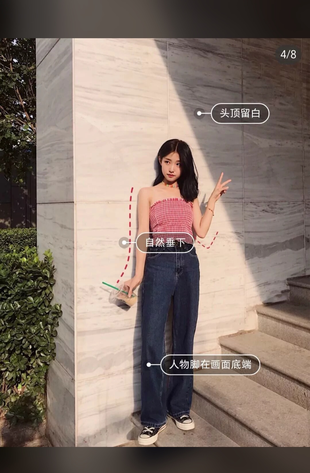 最后! 一点构图技巧V可人物不要再画面正中间!脚要贴近画面低端头顶留白才会显高!