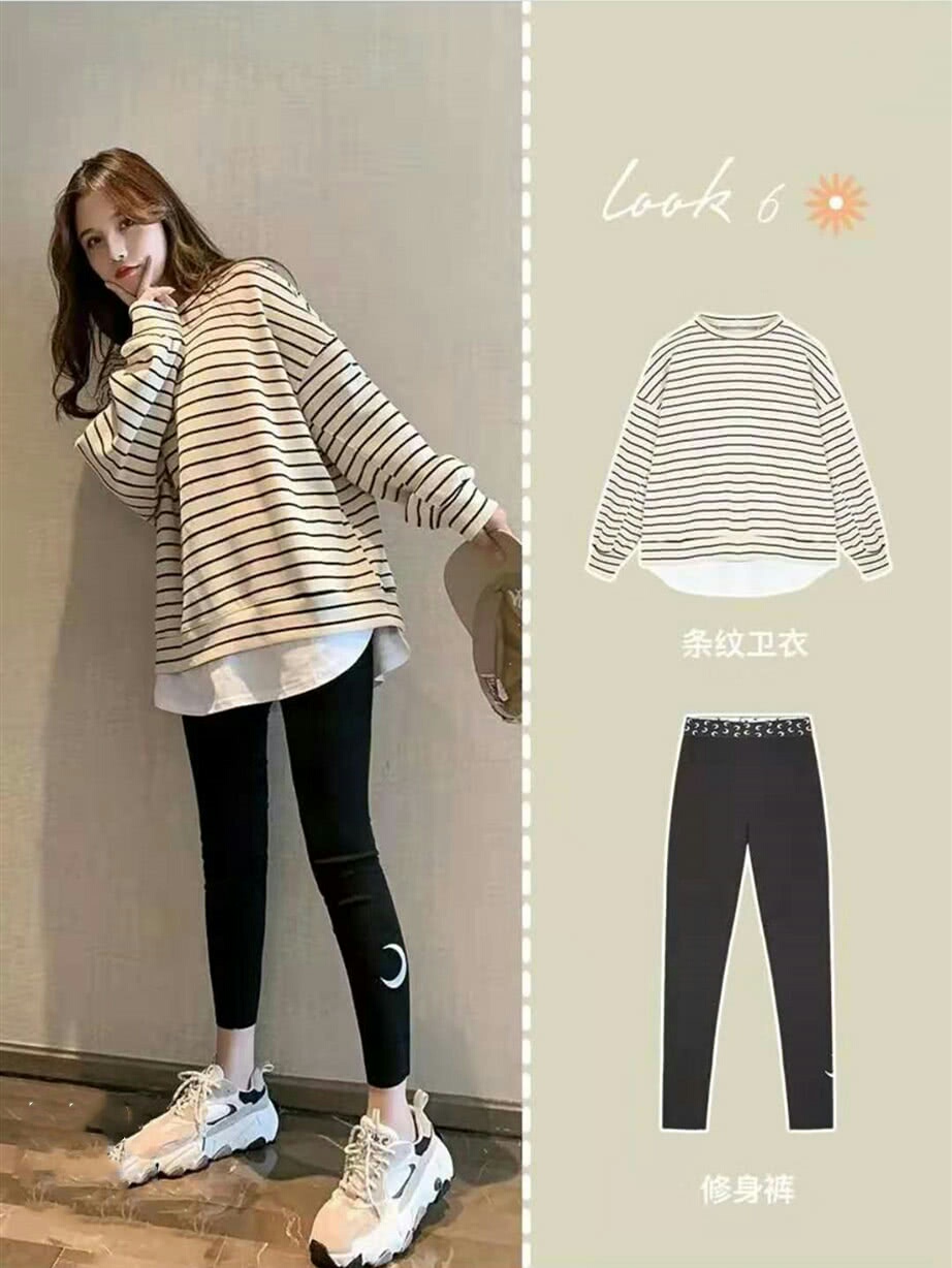 4.卫衣+紧身裤,偏休闲的一套装扮,假两件卫衣,秋季的搭配神器,搭配上超级显腿长满分的紧身裤,既休闲又不失美观和气质哦!好了,今天的分享就到这了,喜欢的赶紧行动起来吧!