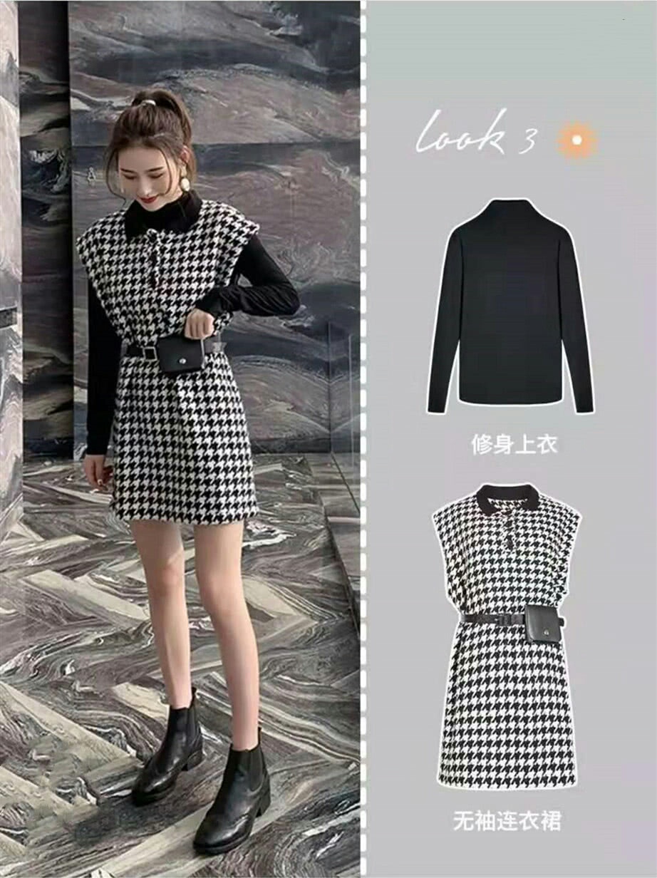 3.上衣+短裙,甜美系的日常穿搭啊,内衬舒适透气,体感爆表,搭配上亮眼的高腰连衣裙,大长腿满屏都是。