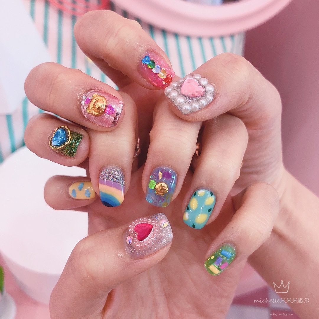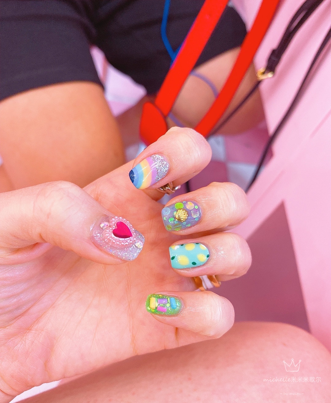 🍑这个美甲10个手指都是我选了好久,自己拼图,一个一个选出来的(选择实在太多了、ins上提前挑选好哪个放哪个手指)