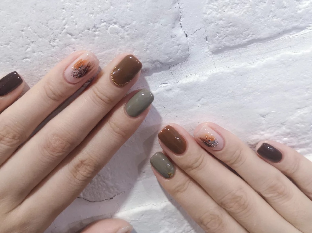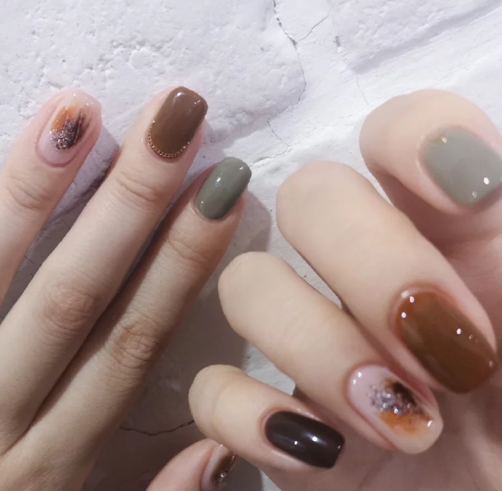 款式:乳白色打底(深咖+浅咖)晕染搭配银箔和金线