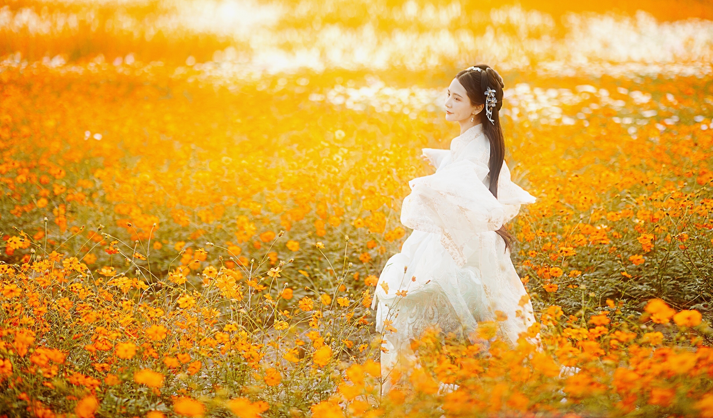 汉服花海拍摄#汉服##逆袭小仙女##治愈系笑容##最美侧颜杀#