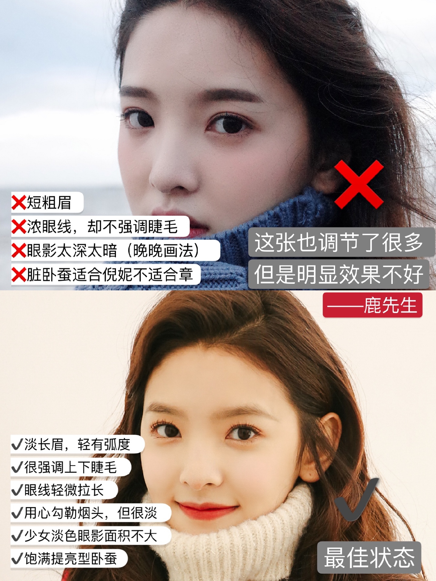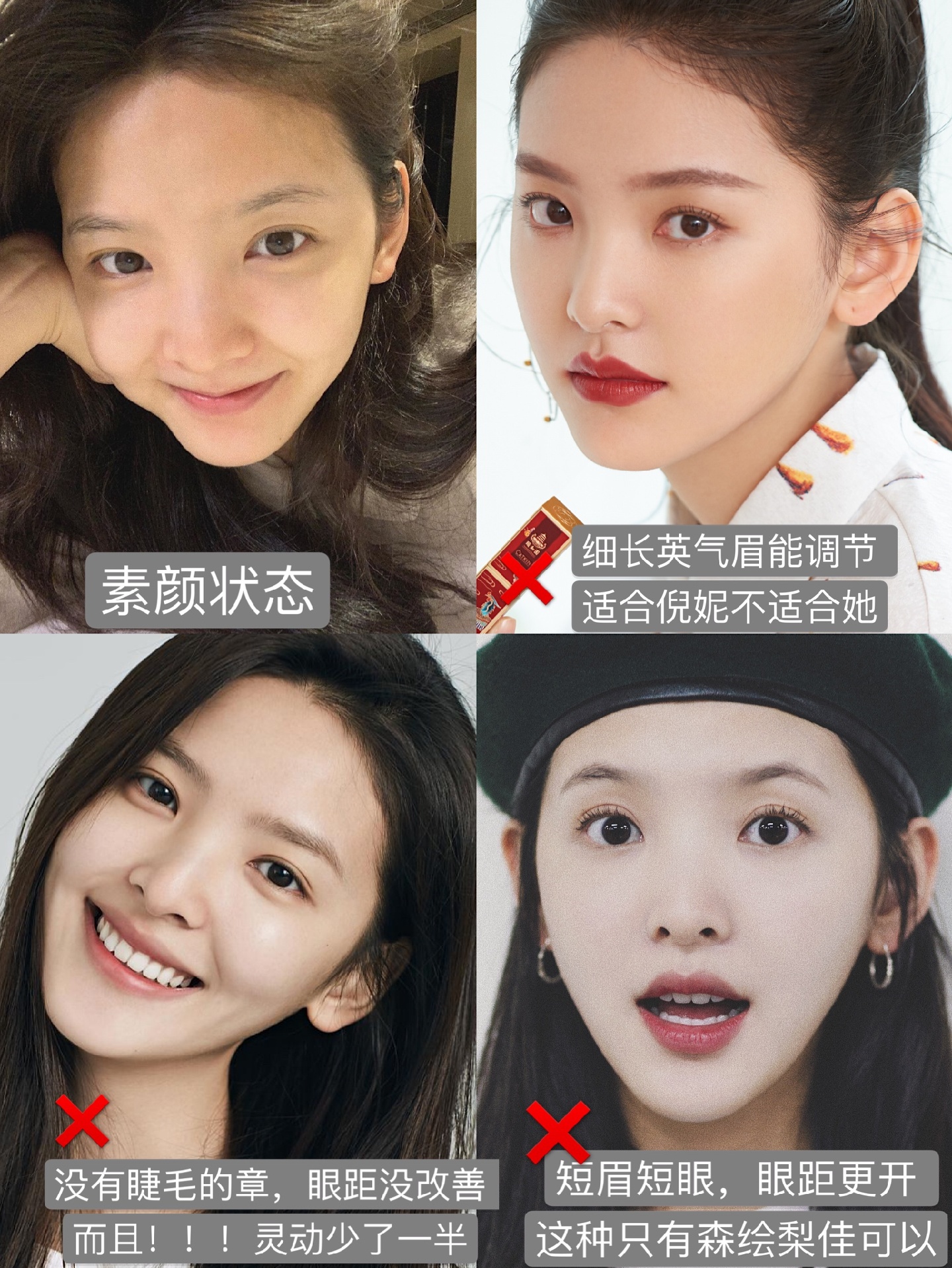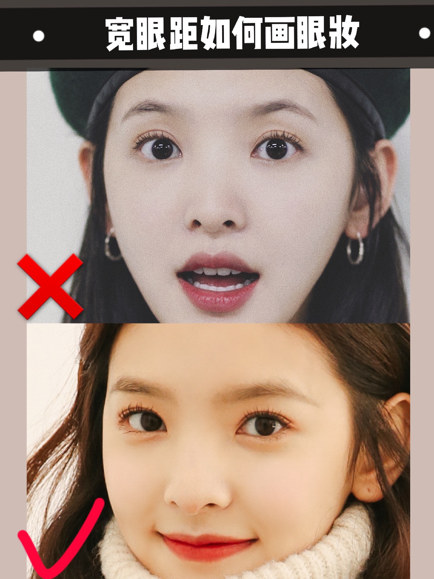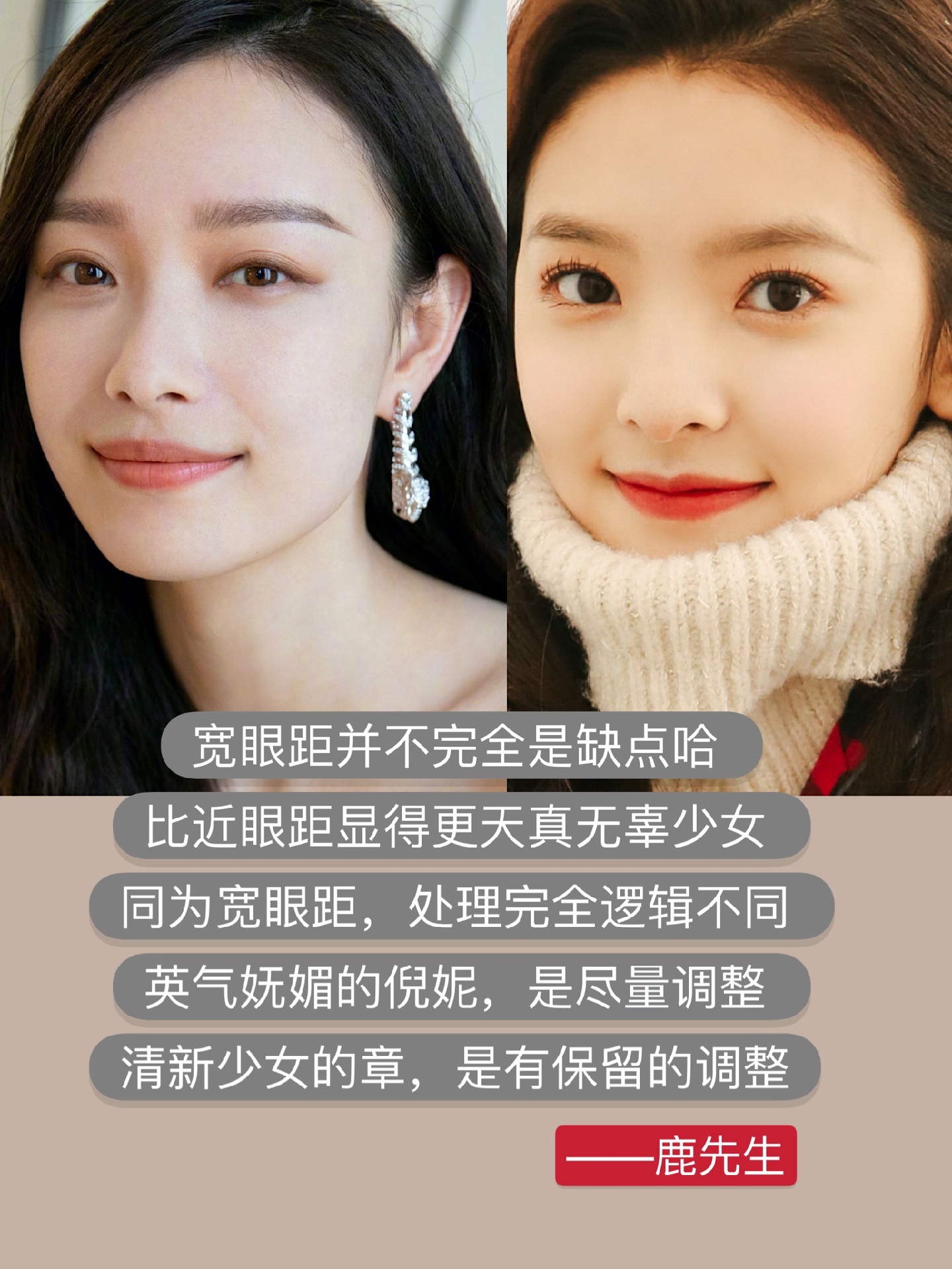 提醒老知识点:宽眼距会显得更无辜清纯柔和,反之,显得更立体精致,也会更气场或凶。