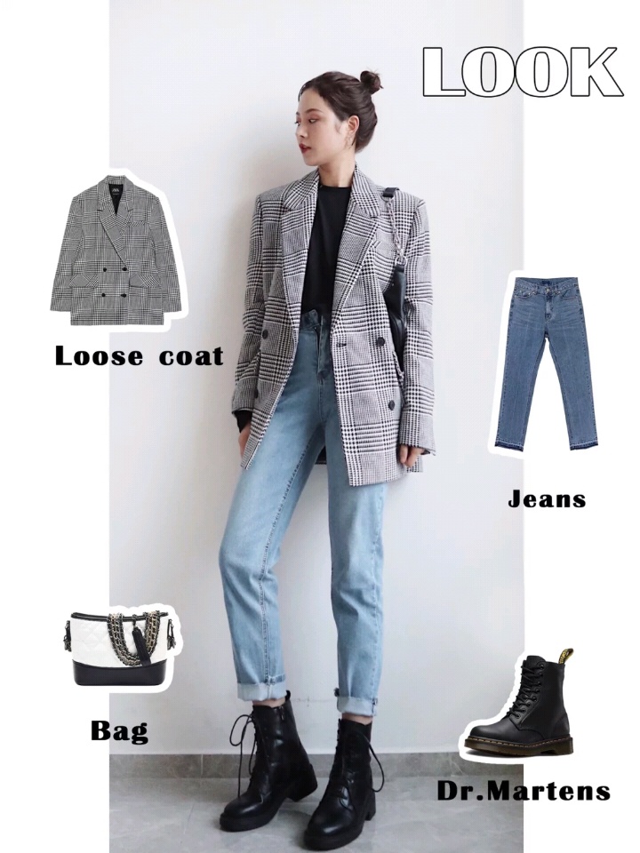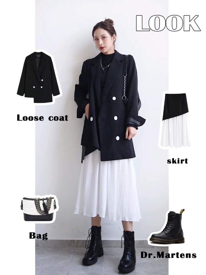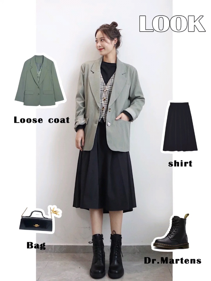 这期搭配了我秋冬特别喜欢的黑白色系列短靴➕半裙的组合简直酷到没朋友搭配牛仔裤也是帅气十足哦还有格子类的深色单品牛油果绿的西装外套都是我近期的心头好~推荐给大家啦!