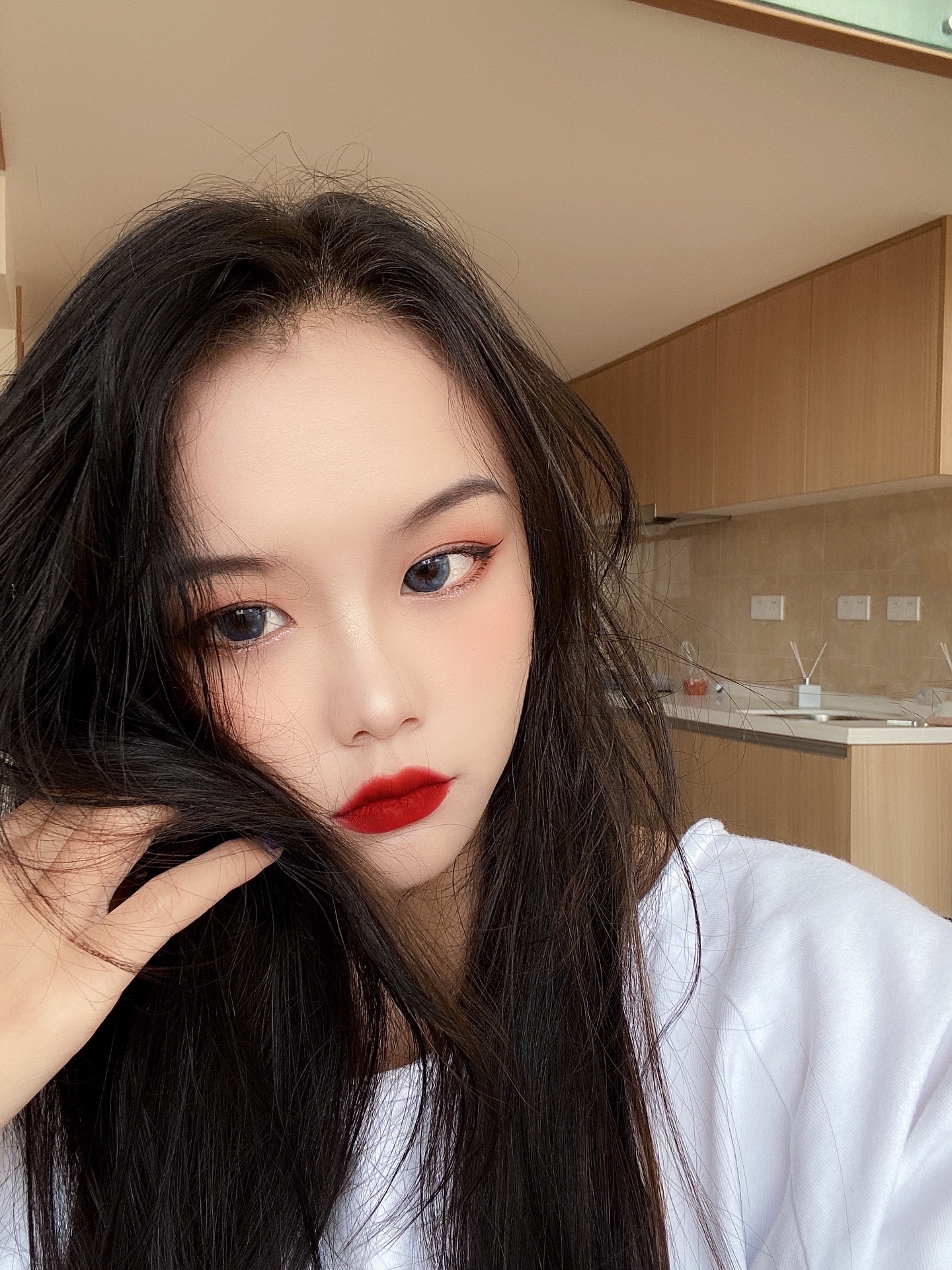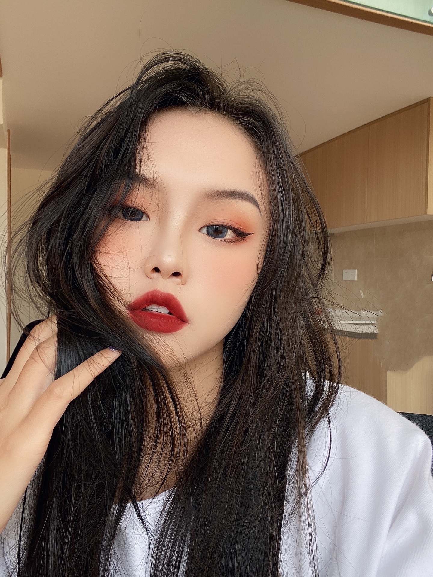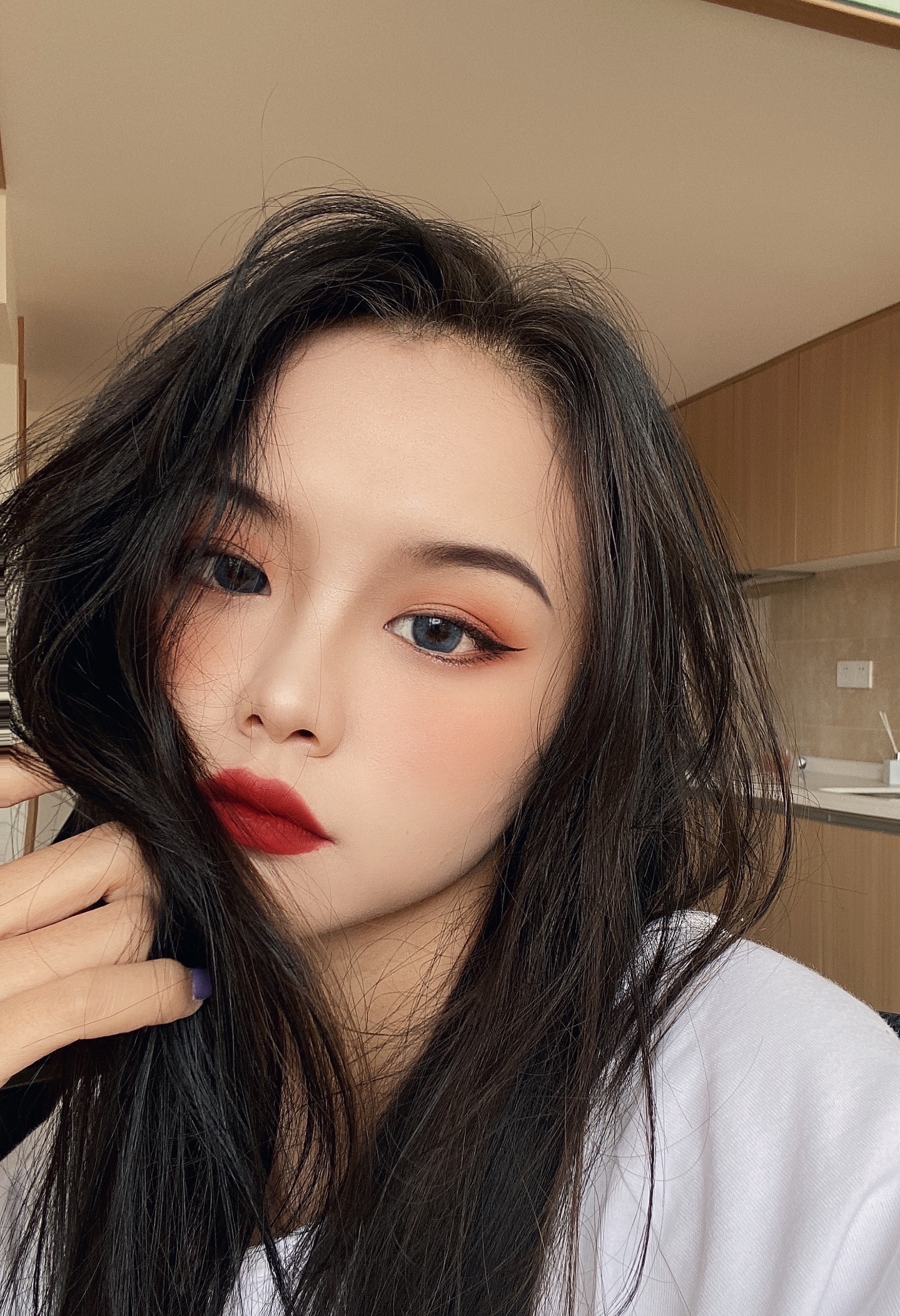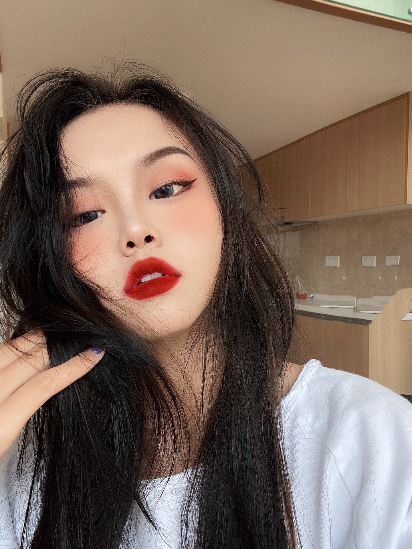 简单的眼妆搭配浓郁的红唇💋,真的是不要太好看