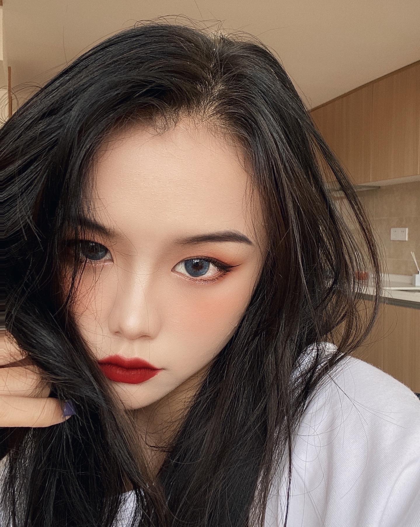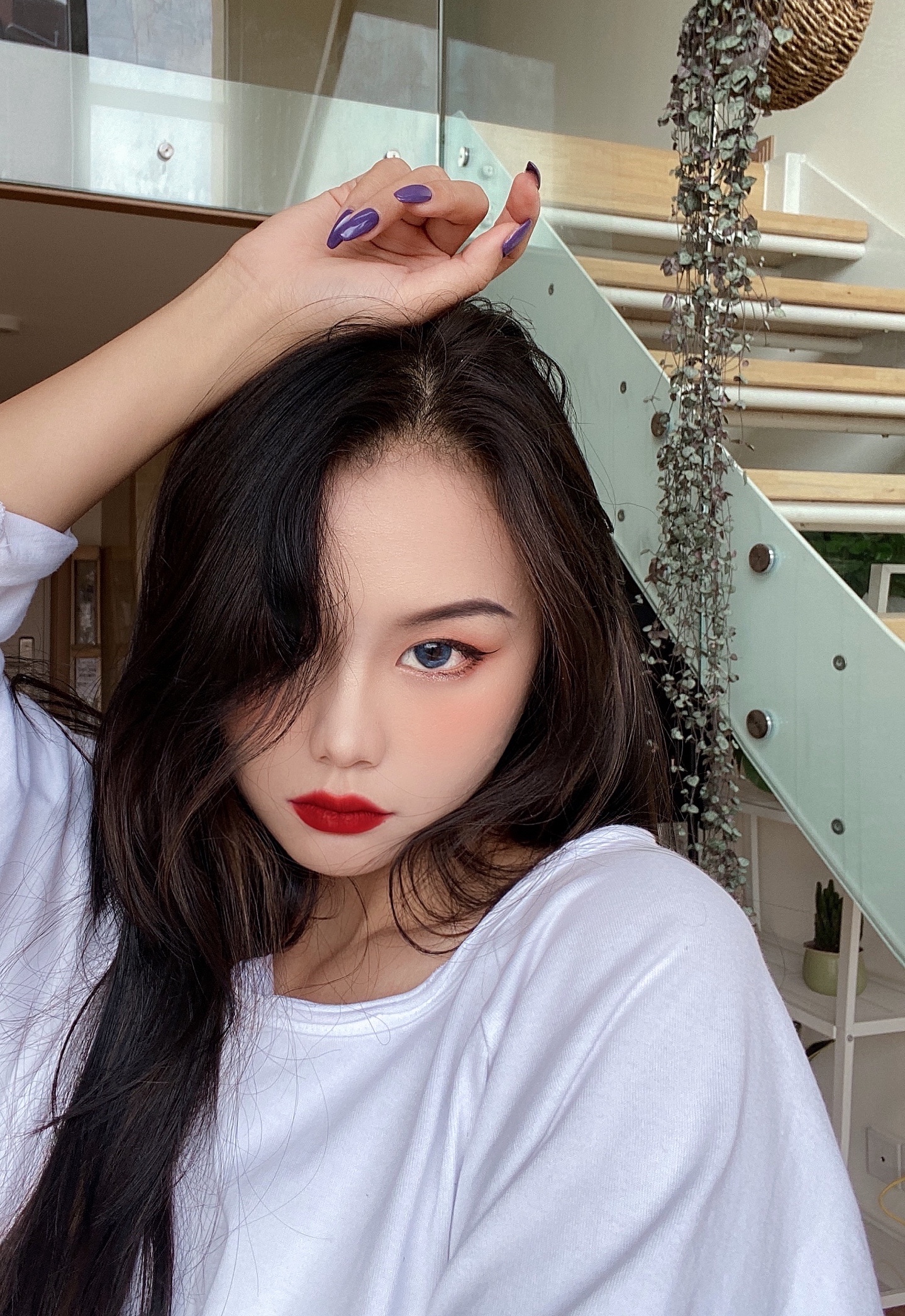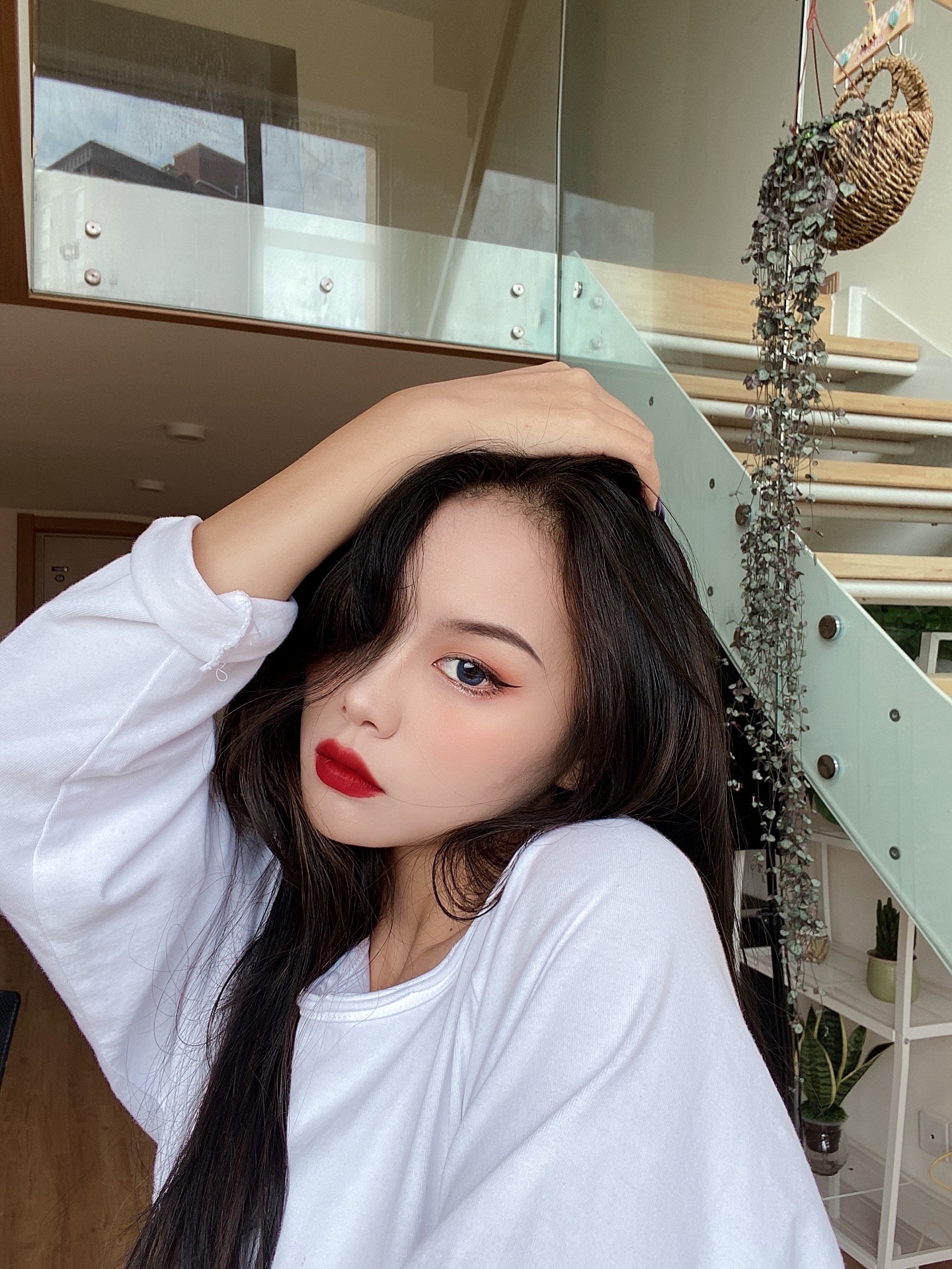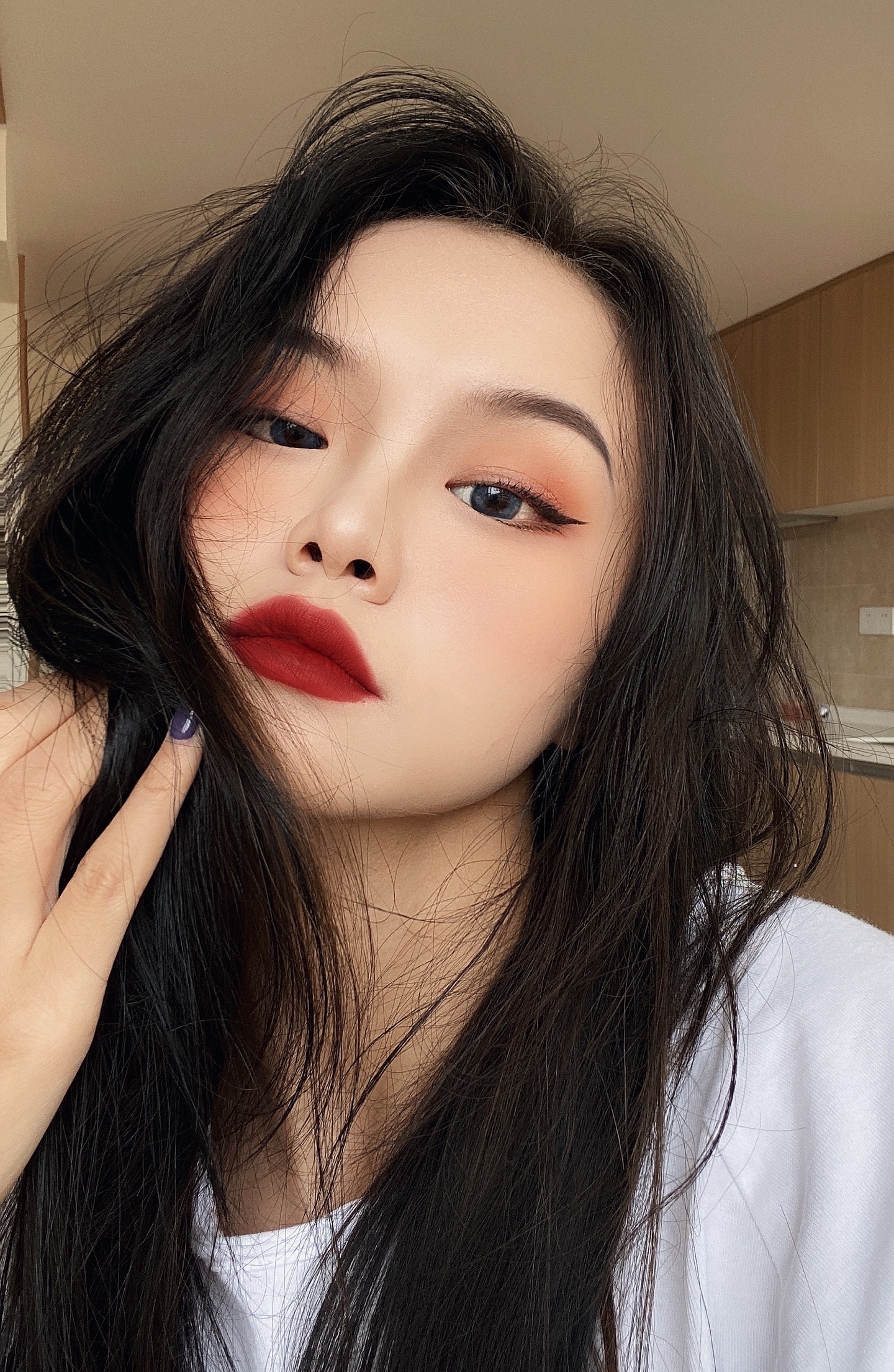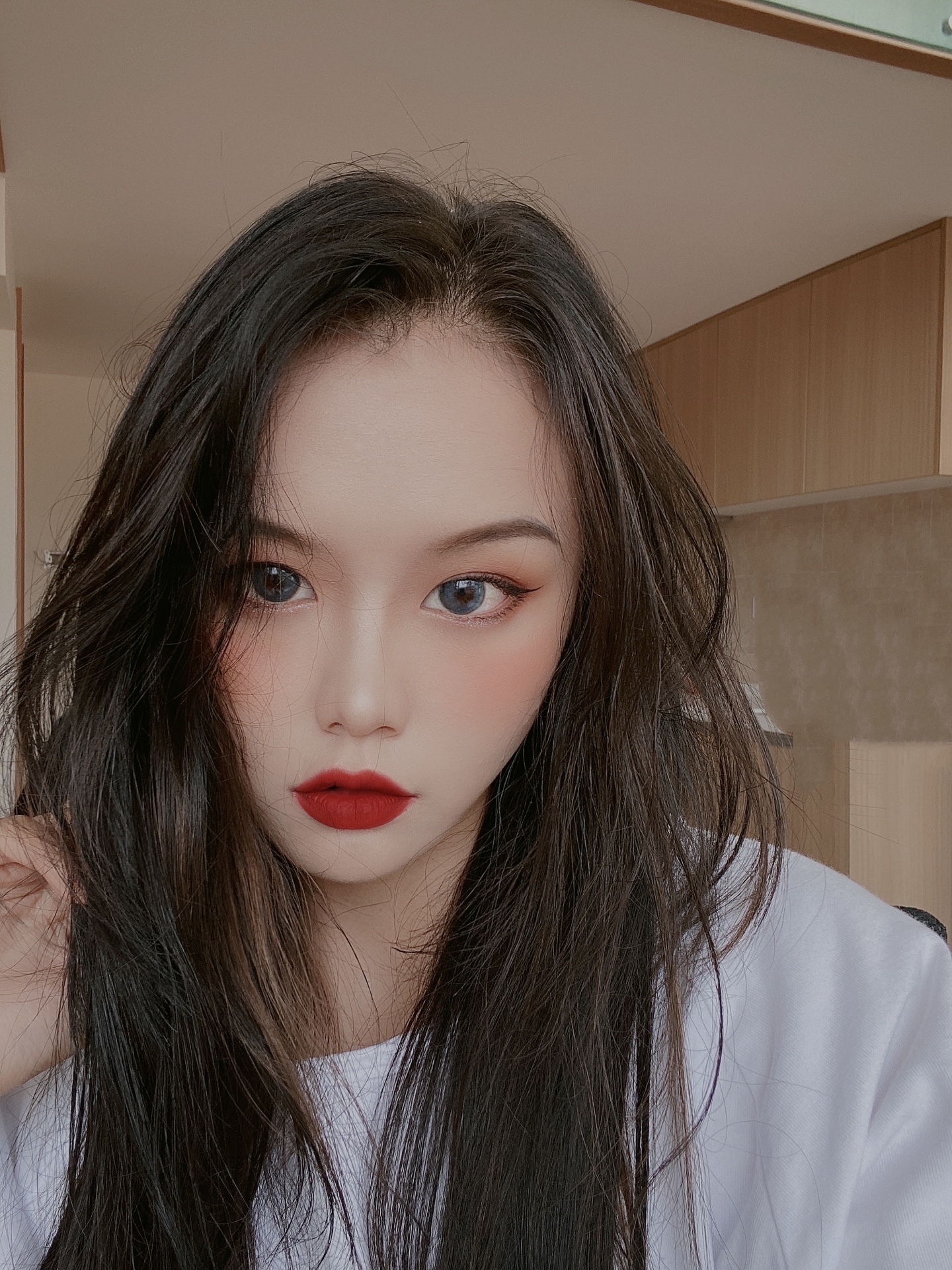 简单的眼妆搭配浓郁的红唇💋,真的是不要太好看