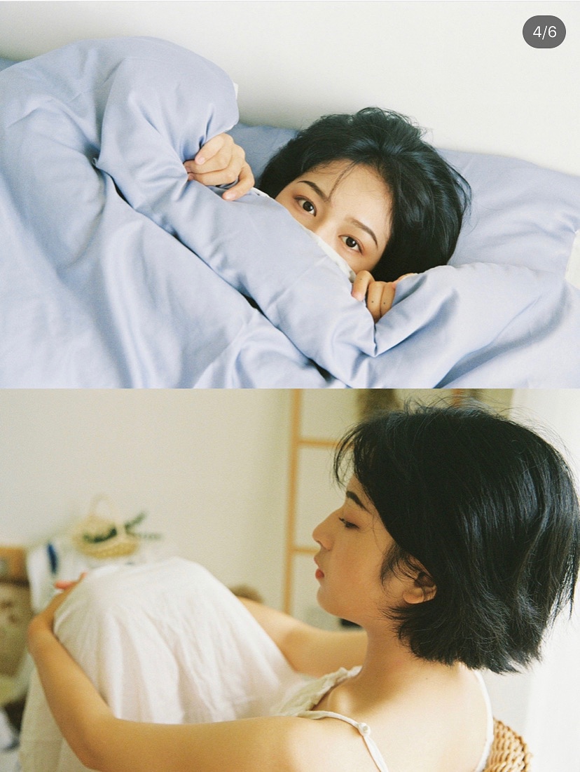 ⚪️用被子遮住嘴巴,只露出眼睛很可爱。
