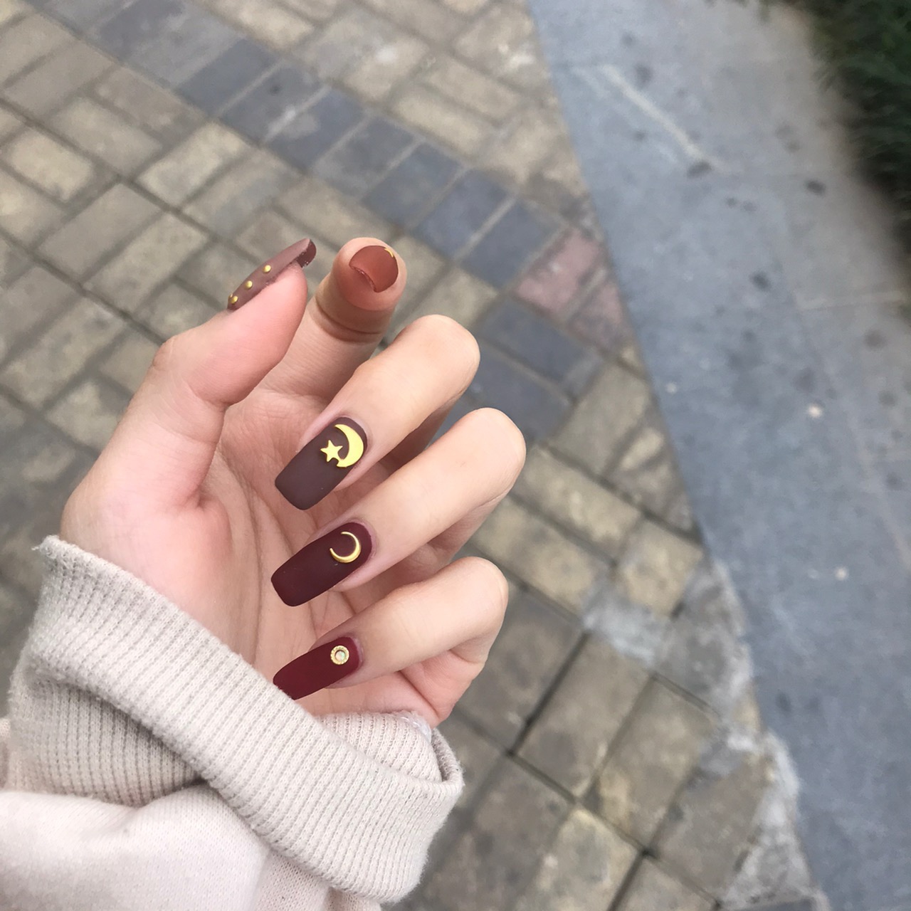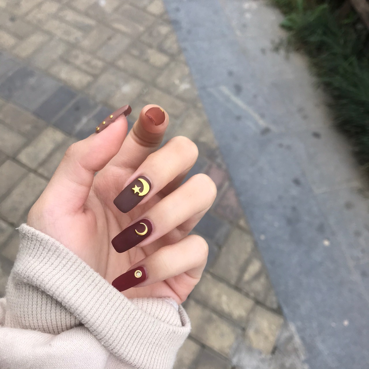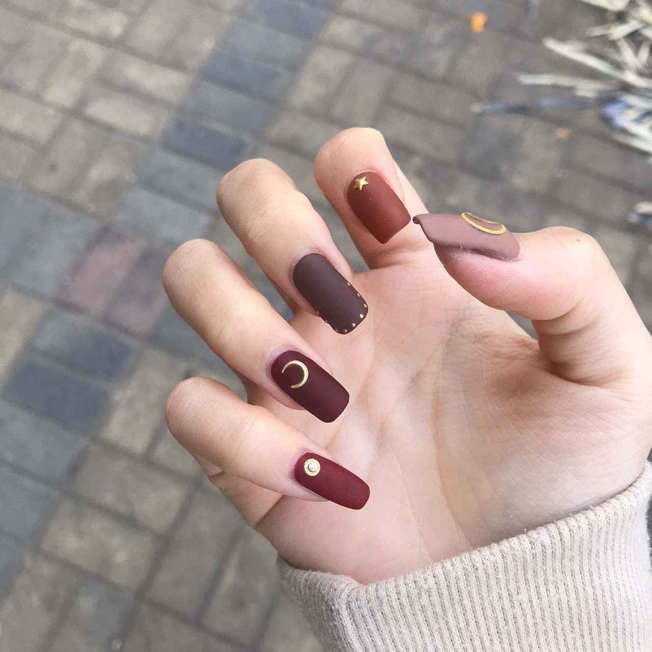 秋冬美甲 自己选的颜色和钻 很喜欢 磨砂太好看啦 咖啡色美甲