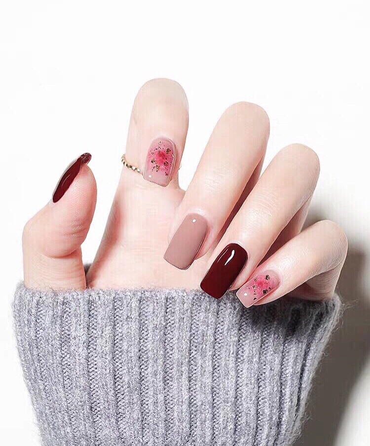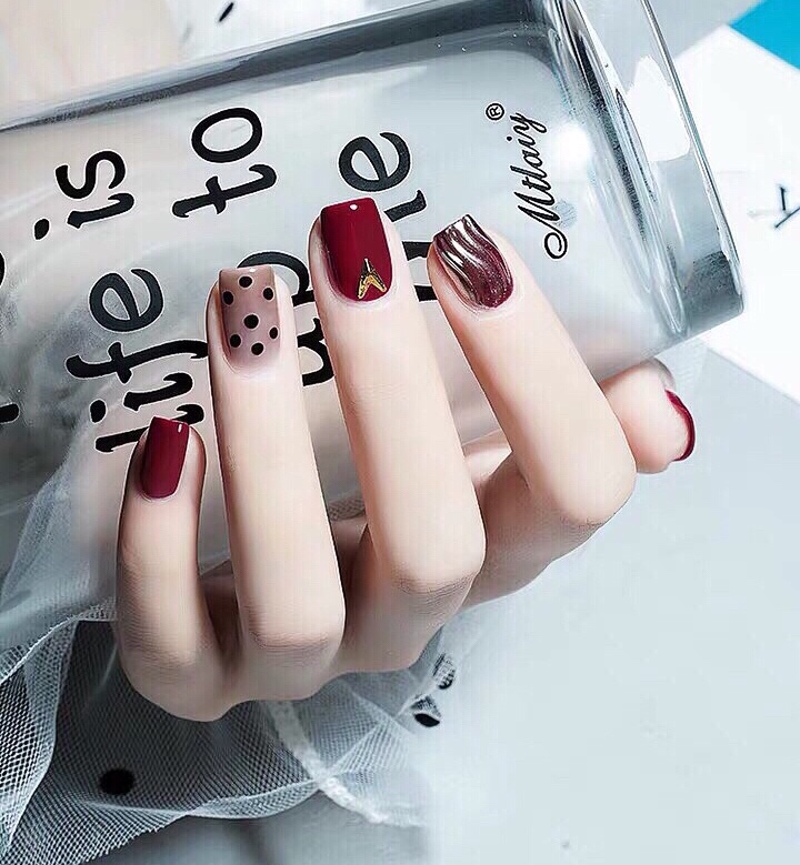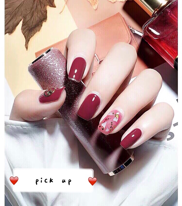 秋冬酒红色显白美甲