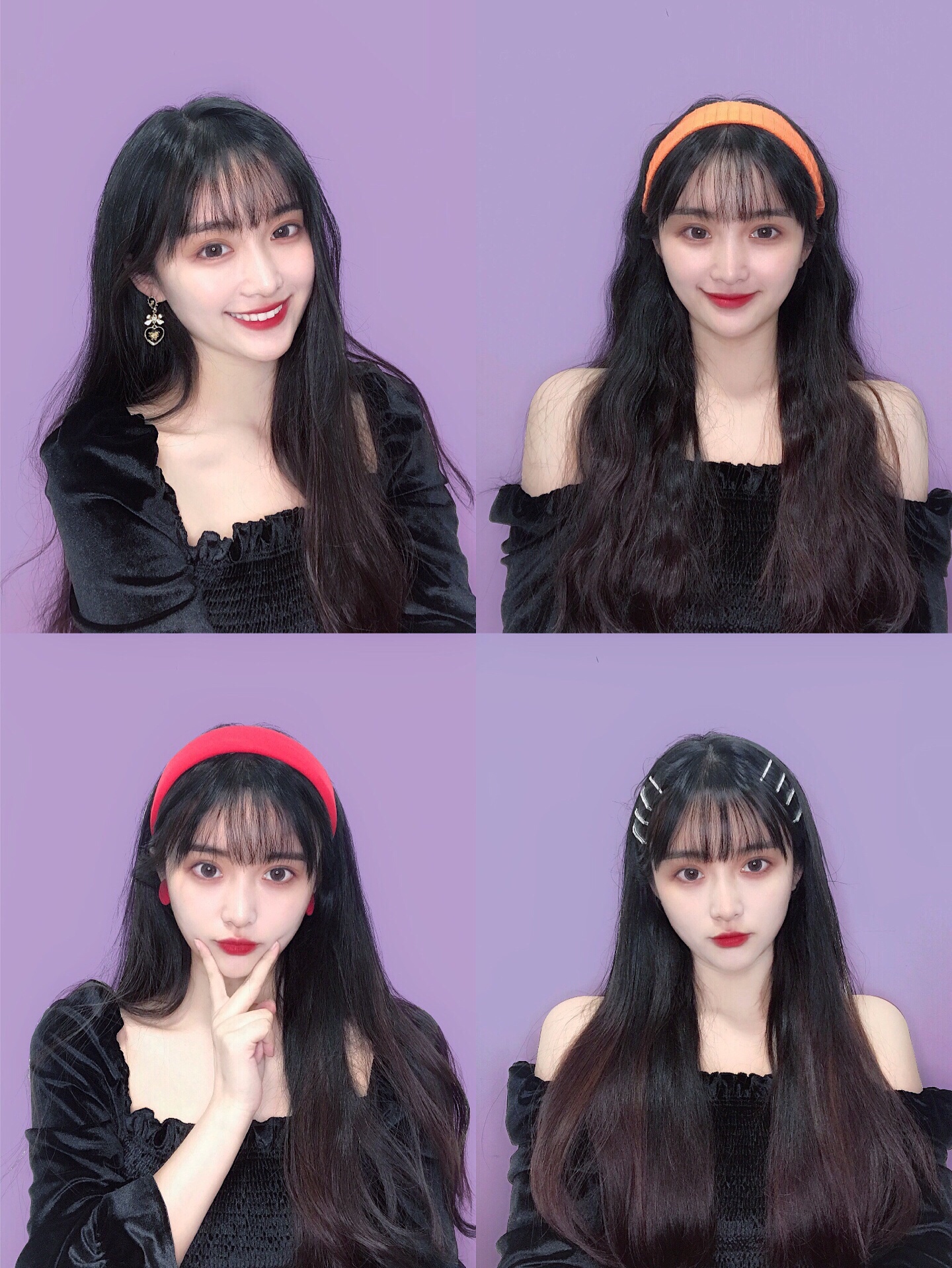 - 橘色发带的羊毛卷(因为羊毛卷会发量翻倍所以用发带控制一下好显得头小一点)