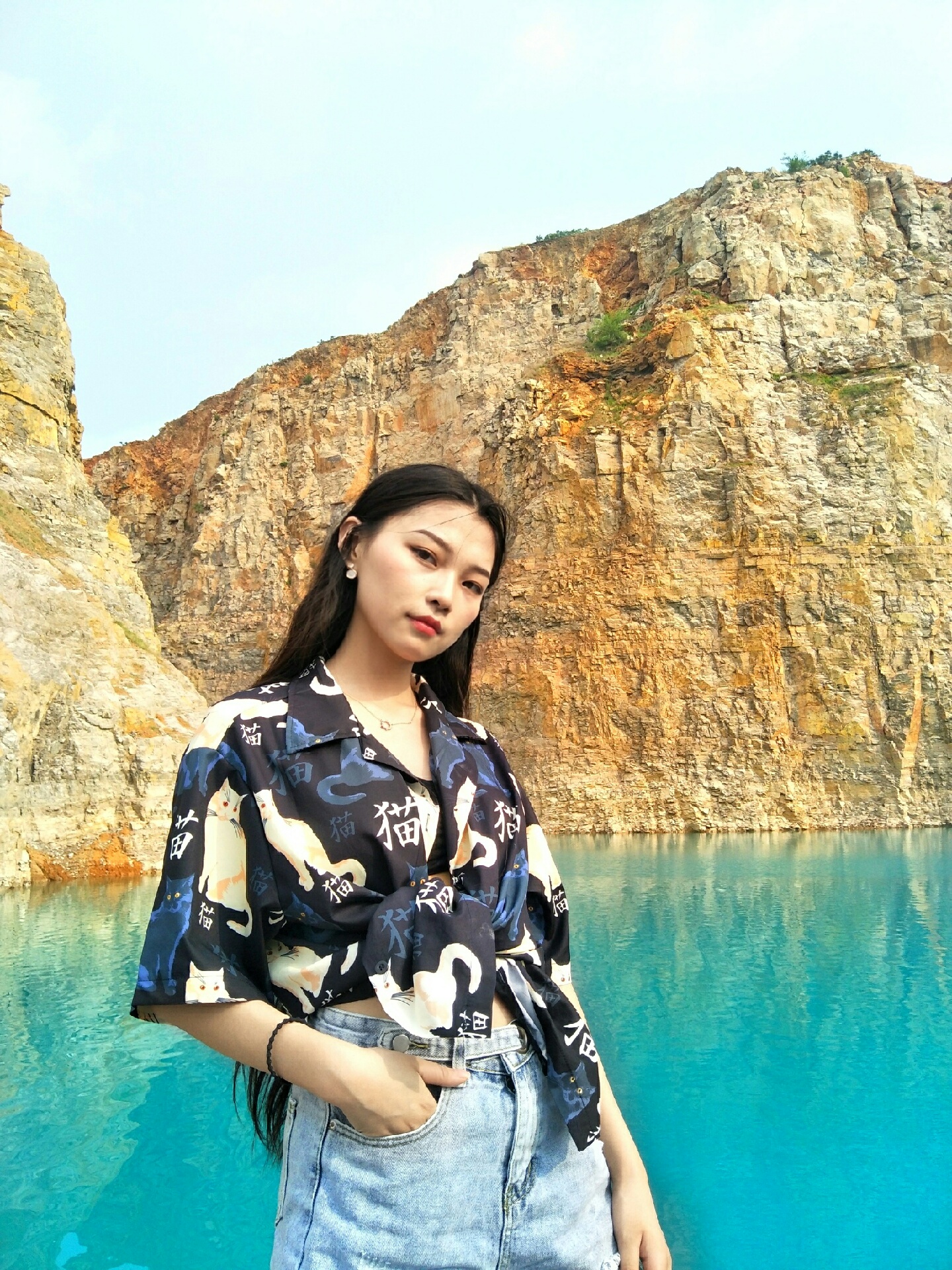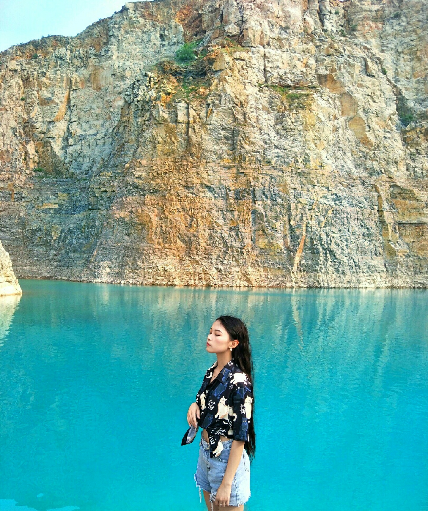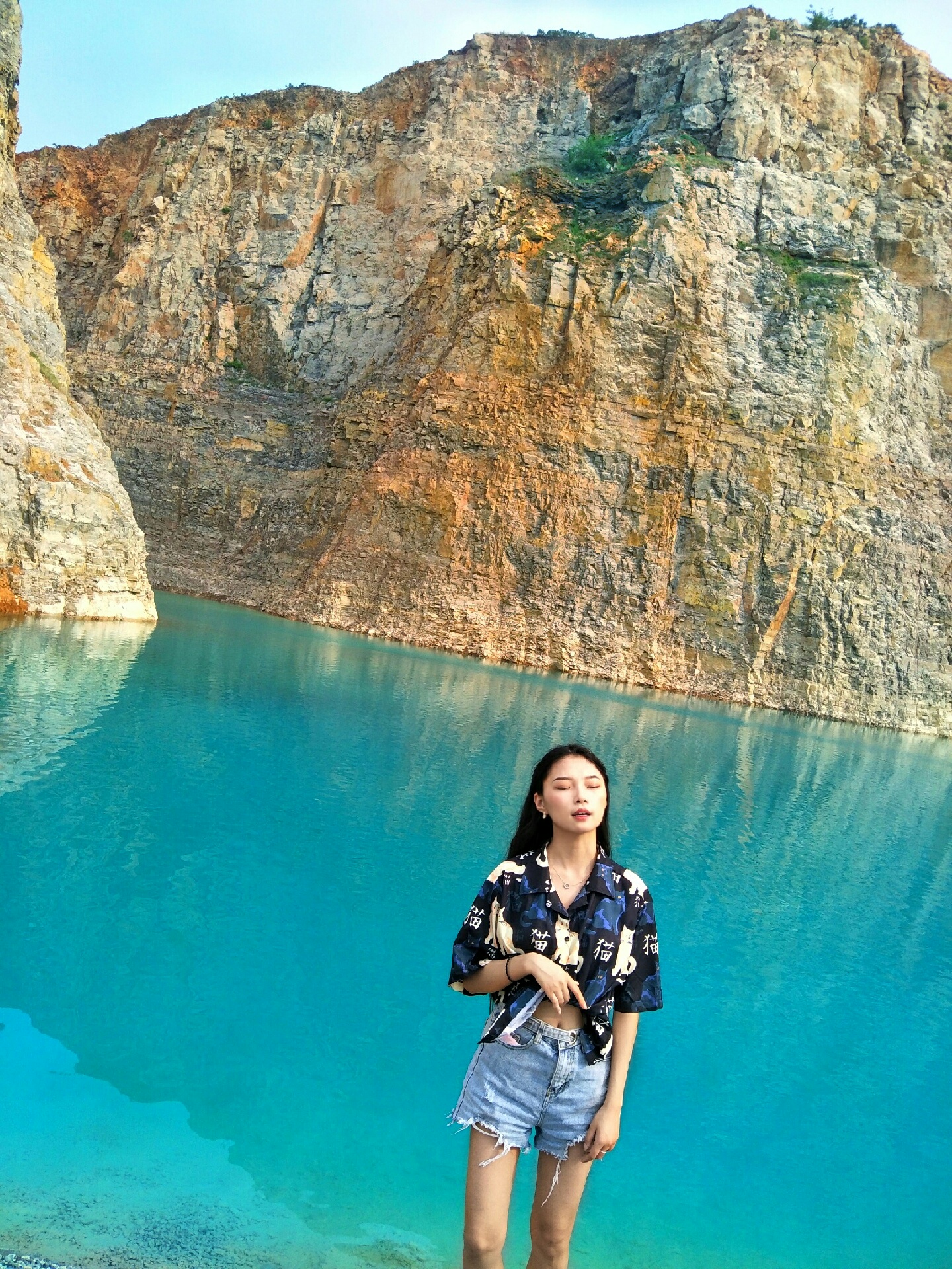 这是在山上的一个石子厂里面,周围就是山,有人说是矿石产生的天然的,也有说是因为工业废水,不过很漂亮,建议不要下去游泳,不要门票,高德地图搜索 潍坊簸箕山就可以#拍照拍照拍照# #拍照圣地# #拍照姿势# #手机拍照# #拍照姿势不重样#