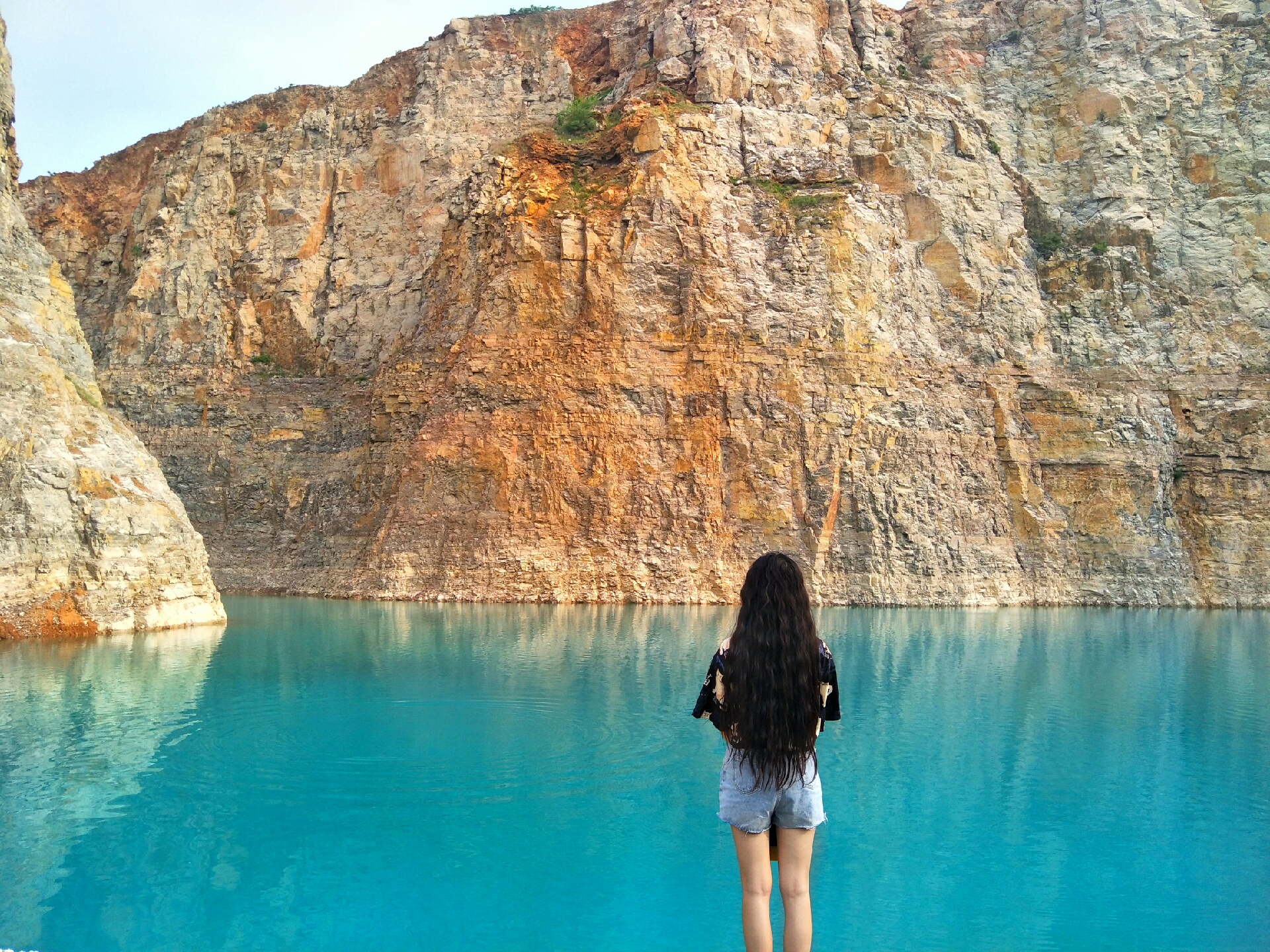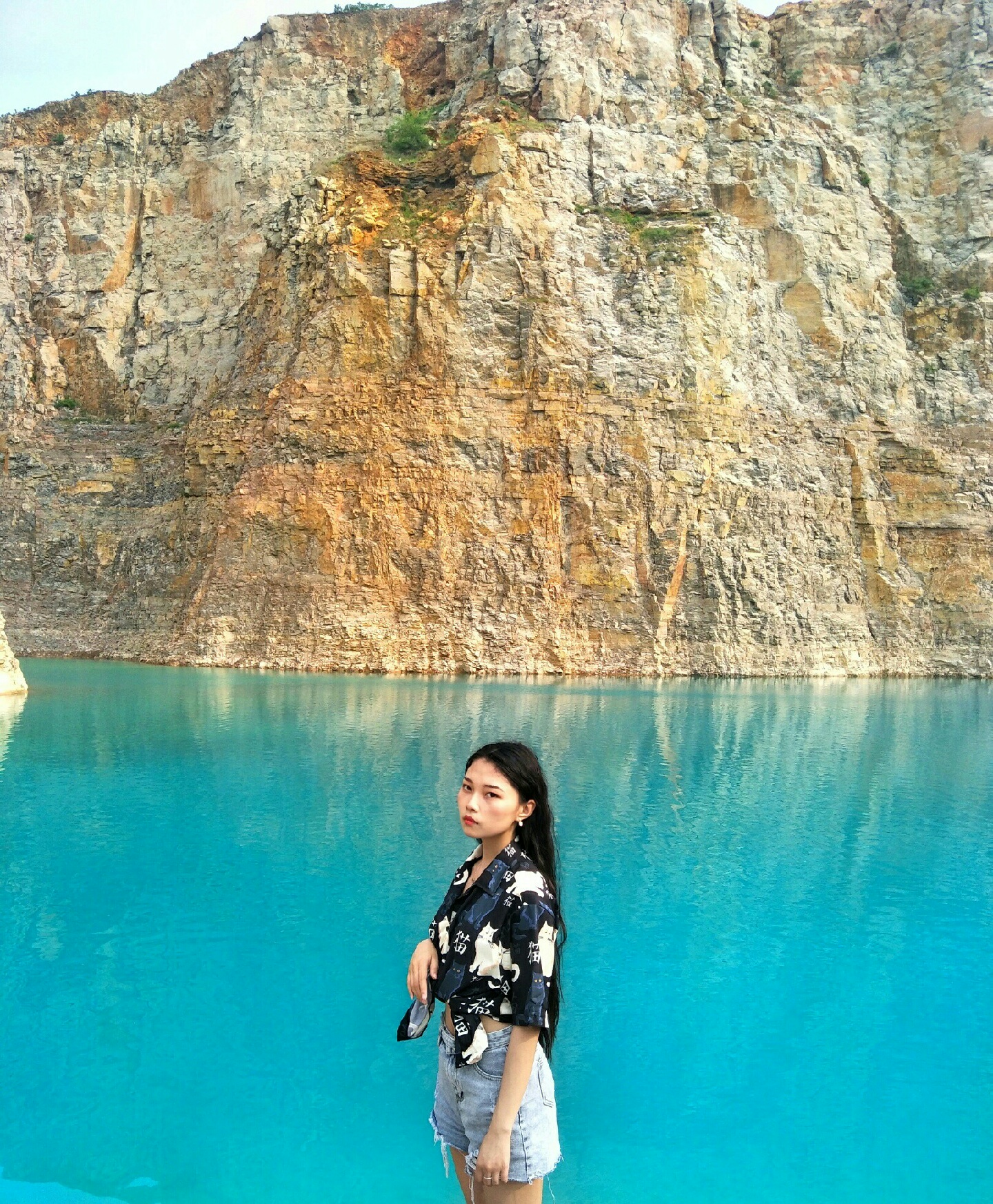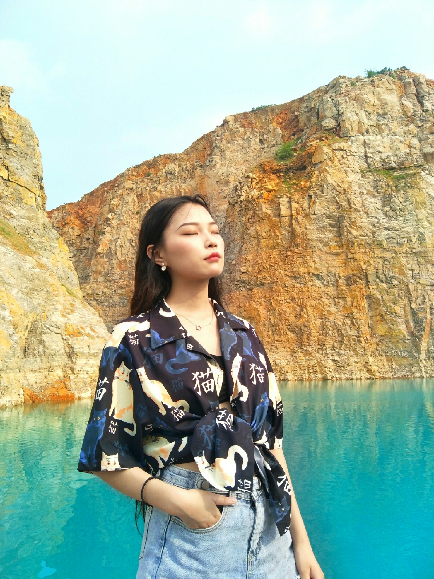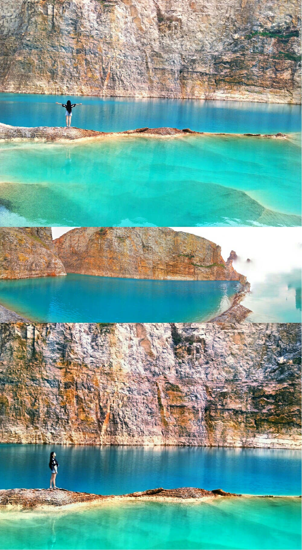 这是在山上的一个石子厂里面,周围就是山,有人说是矿石产生的天然的,也有说是因为工业废水,不过很漂亮,建议不要下去游泳,不要门票,高德地图搜索 潍坊簸箕山就可以#拍照拍照拍照# #拍照圣地# #拍照姿势# #手机拍照# #拍照姿势不重样#