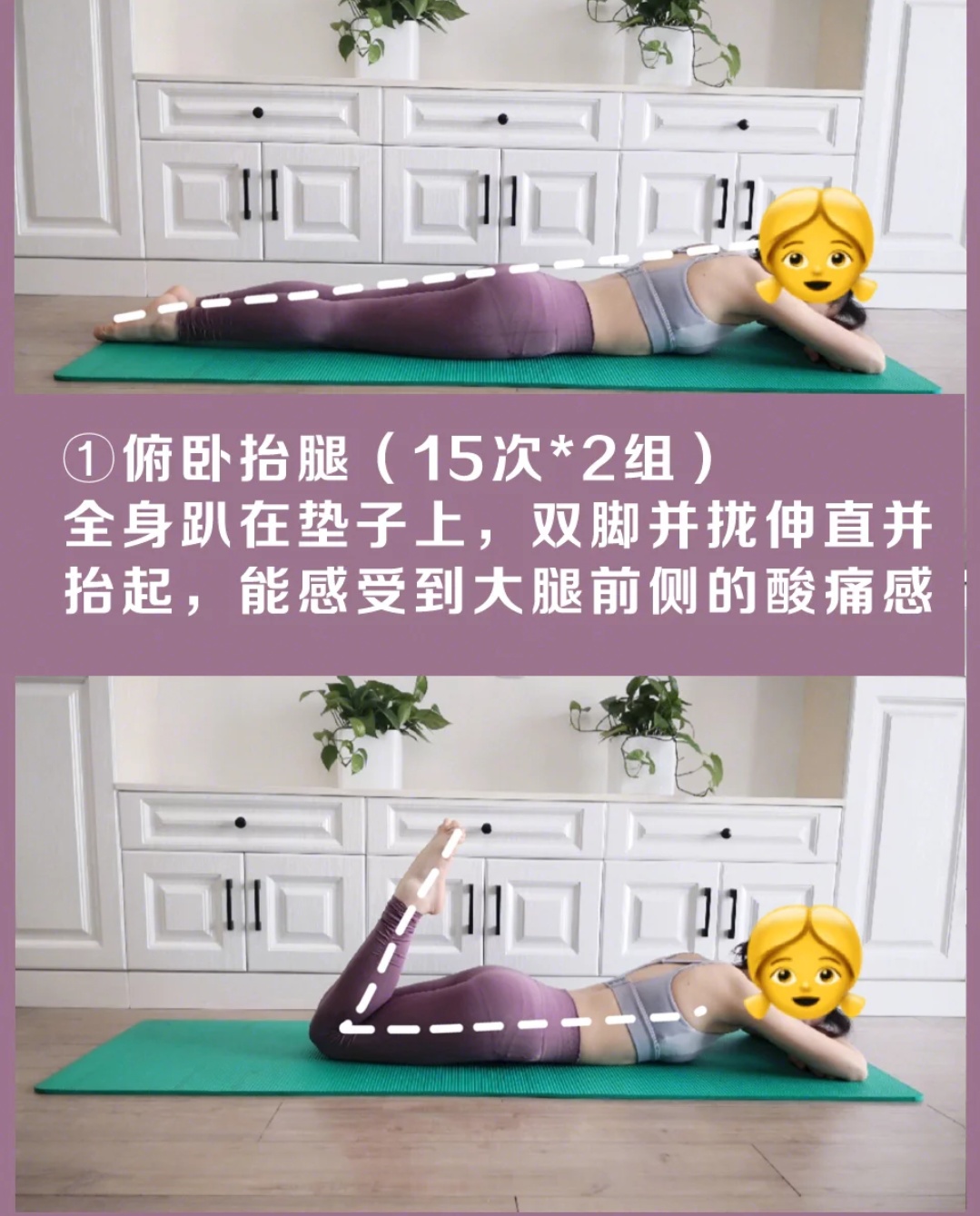 1⃣俯卧抬腿(15次*2组)