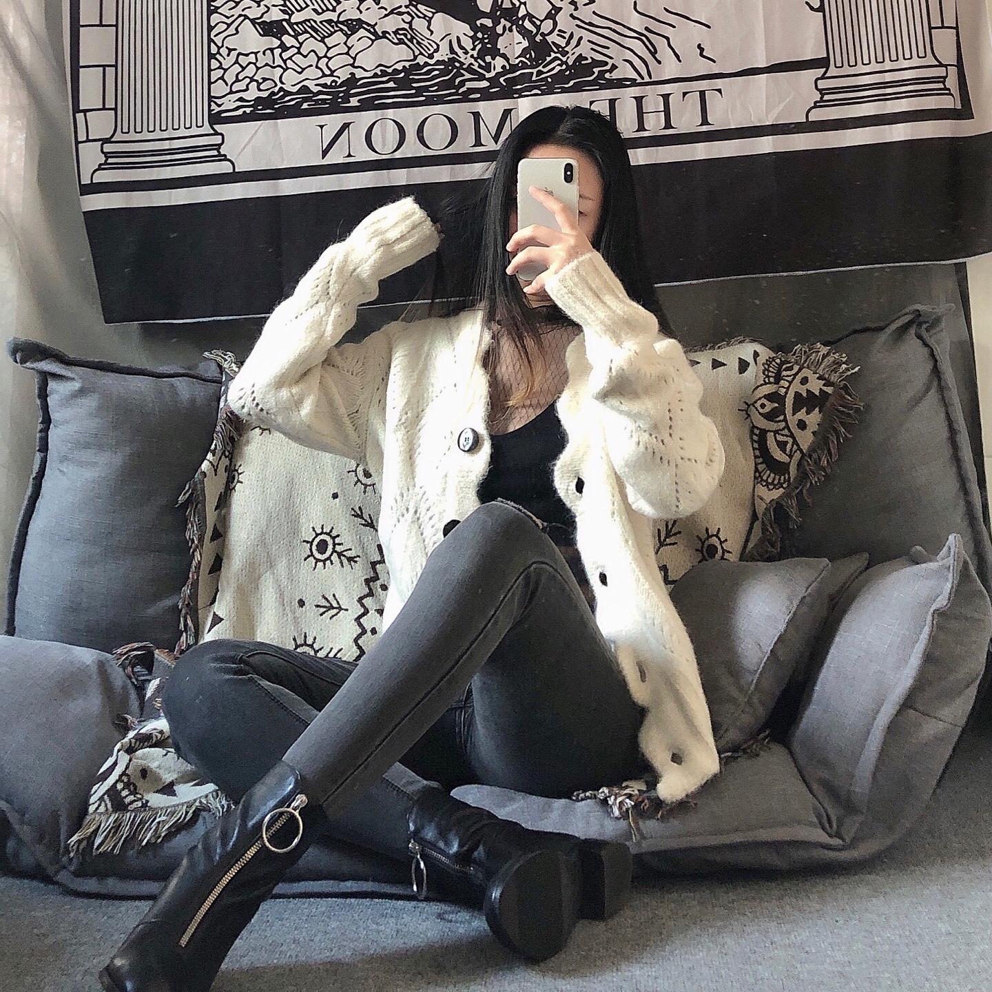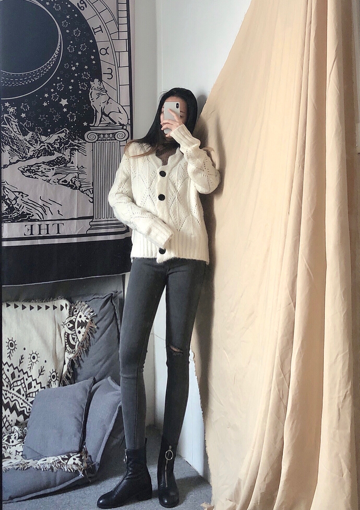 #今日穿搭#白色毛衣这么搭,搭配灰色紧身裤妥妥的~毛衣➕长裤➕短靴