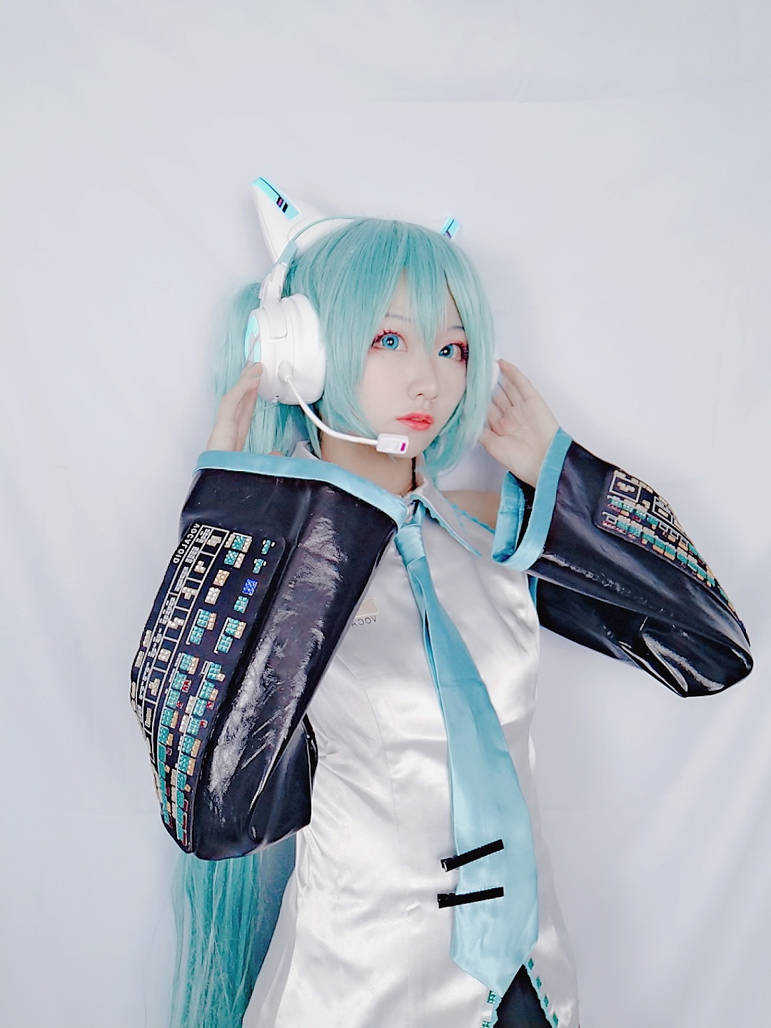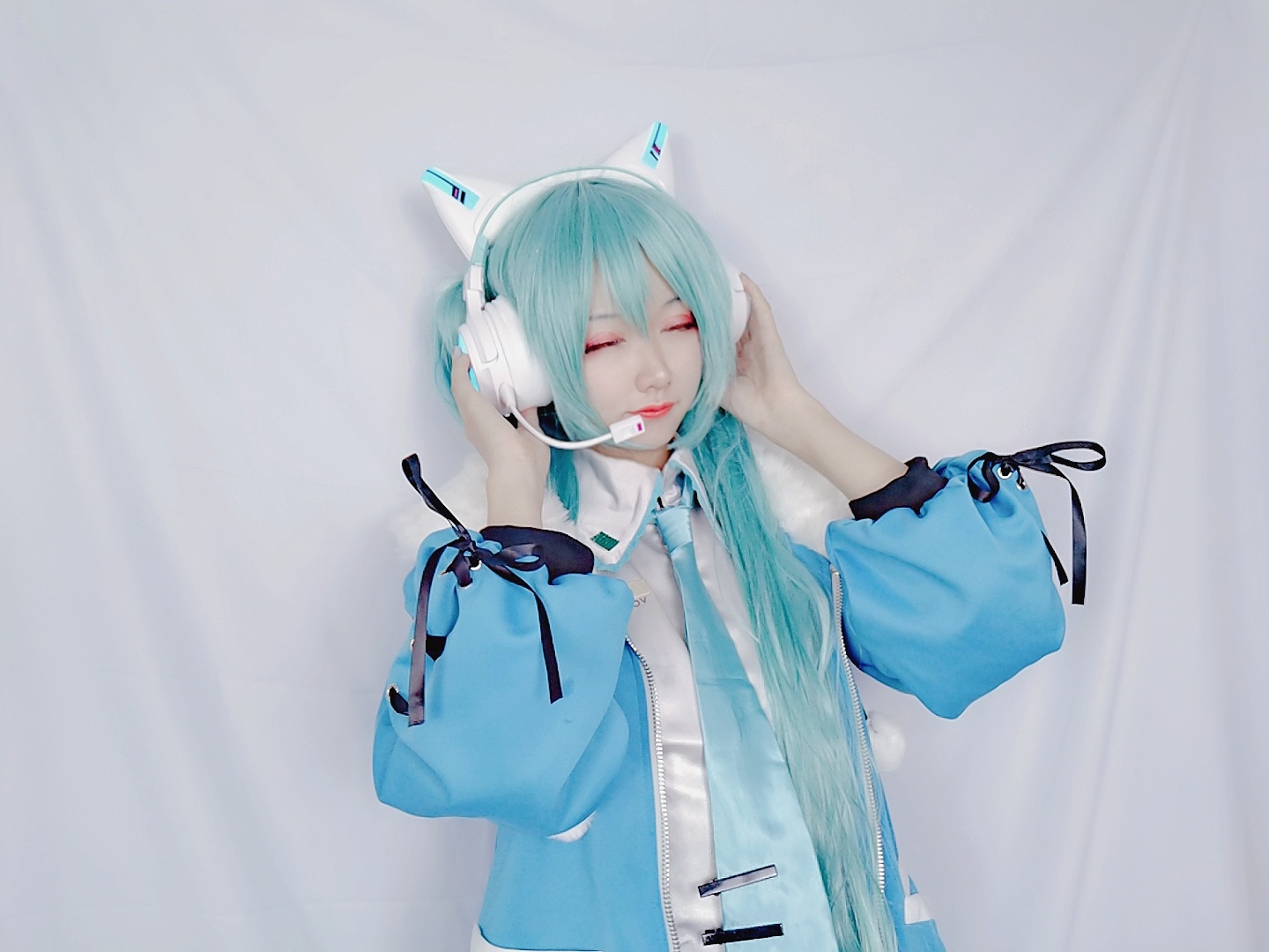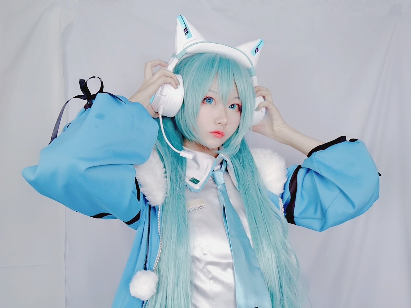 既然是初音联名耳机那当然要出一次初音了穿上初音最经典的一套公式服 画上妆容,带上假发、整理刘海,戴上耳机