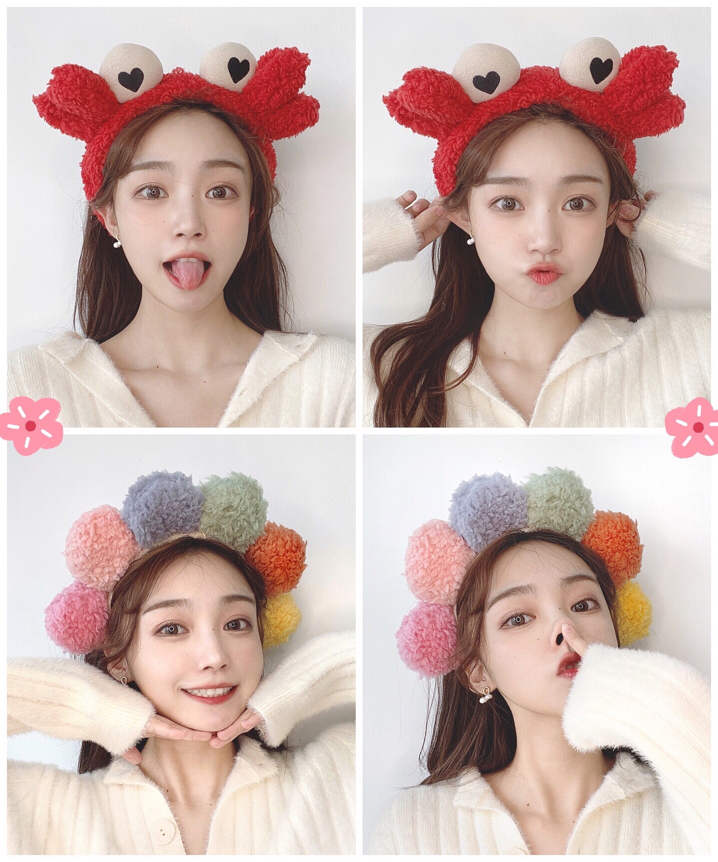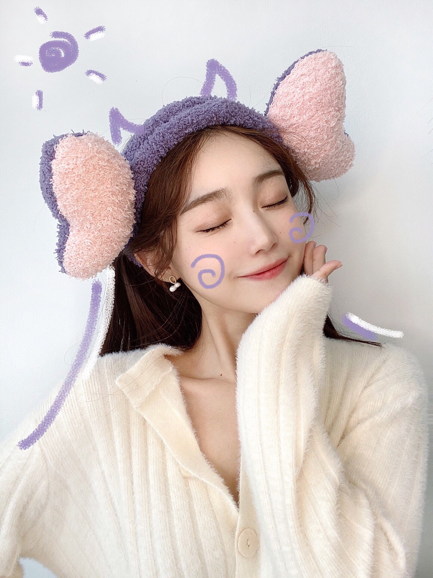 少女自拍姿势大法🙈超可爱洗脸发带合集 👀