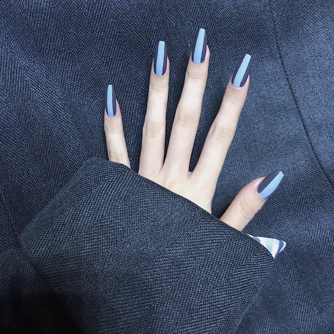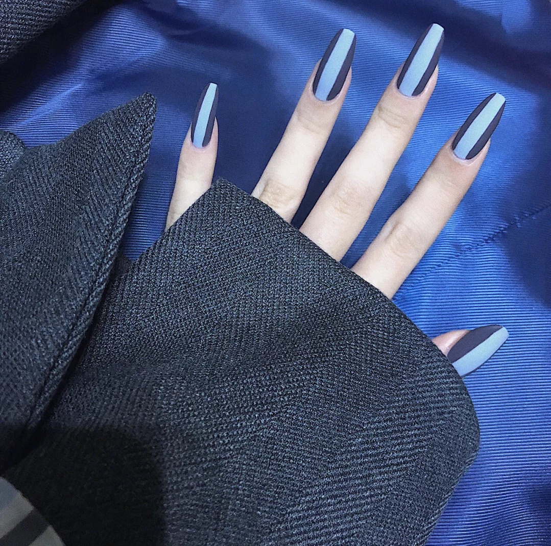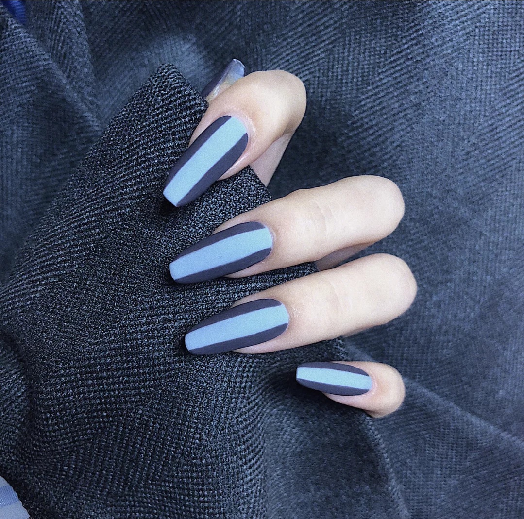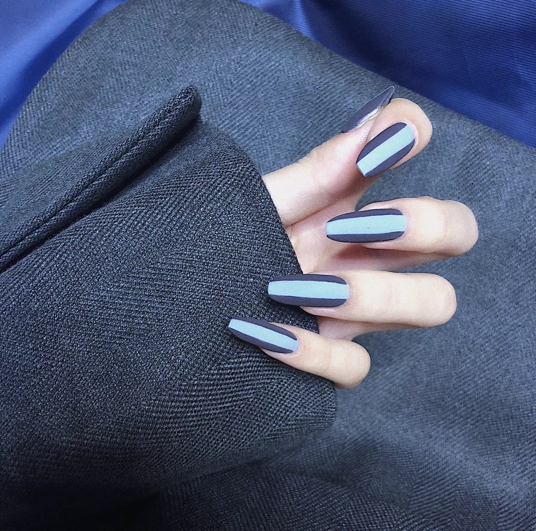 这次做的美甲是偏冷色系的蓝灰色
