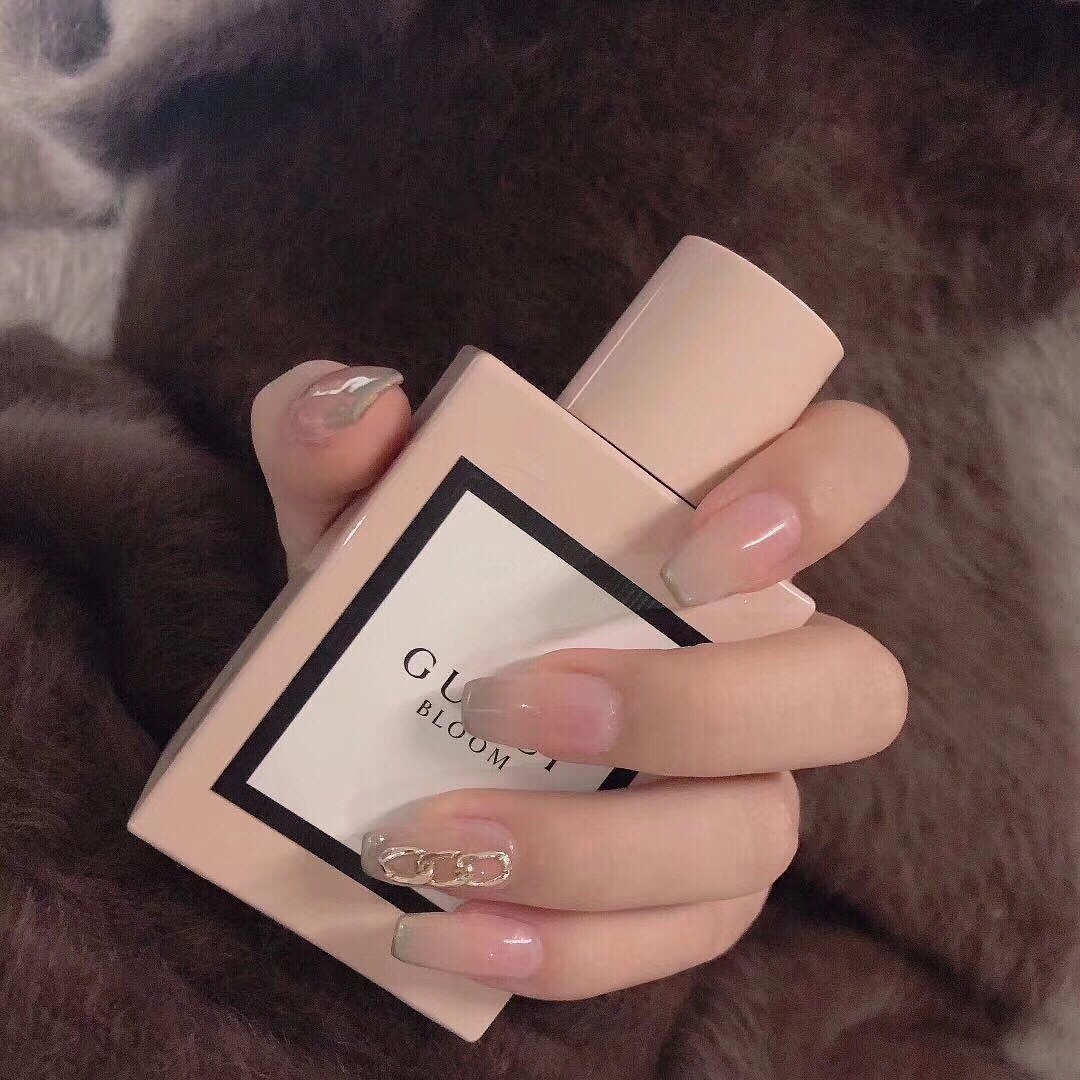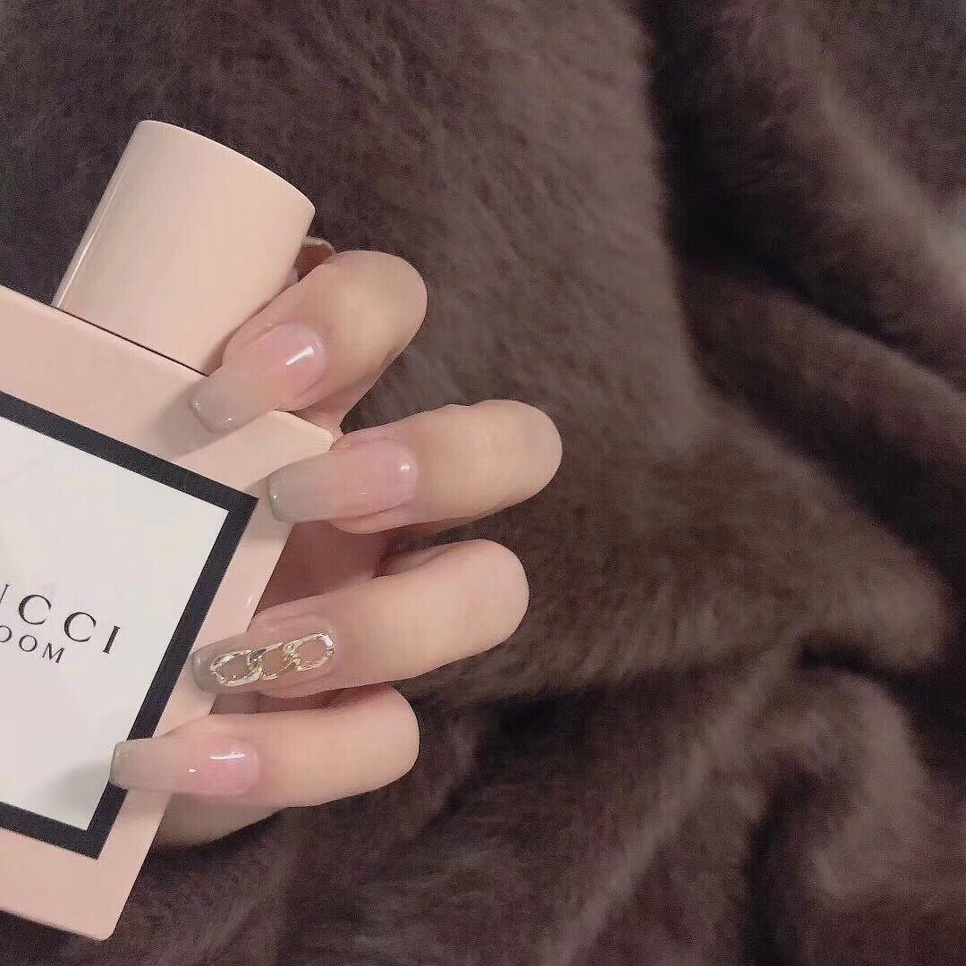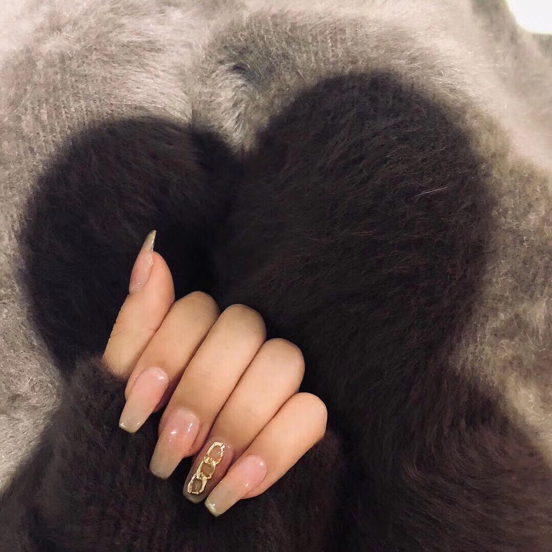 #美甲##时尚美甲#裸色渐变,搭配金边和一个小链条,简约、大方、时尚。