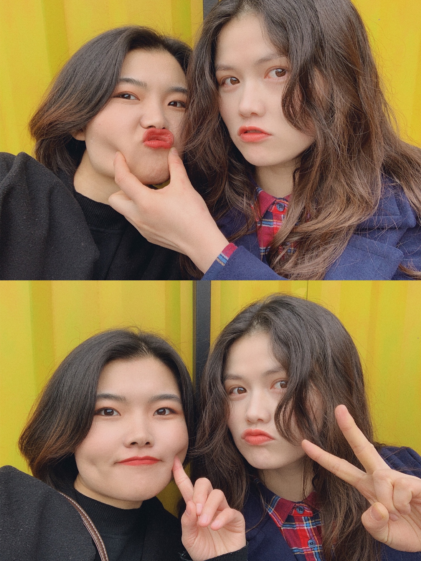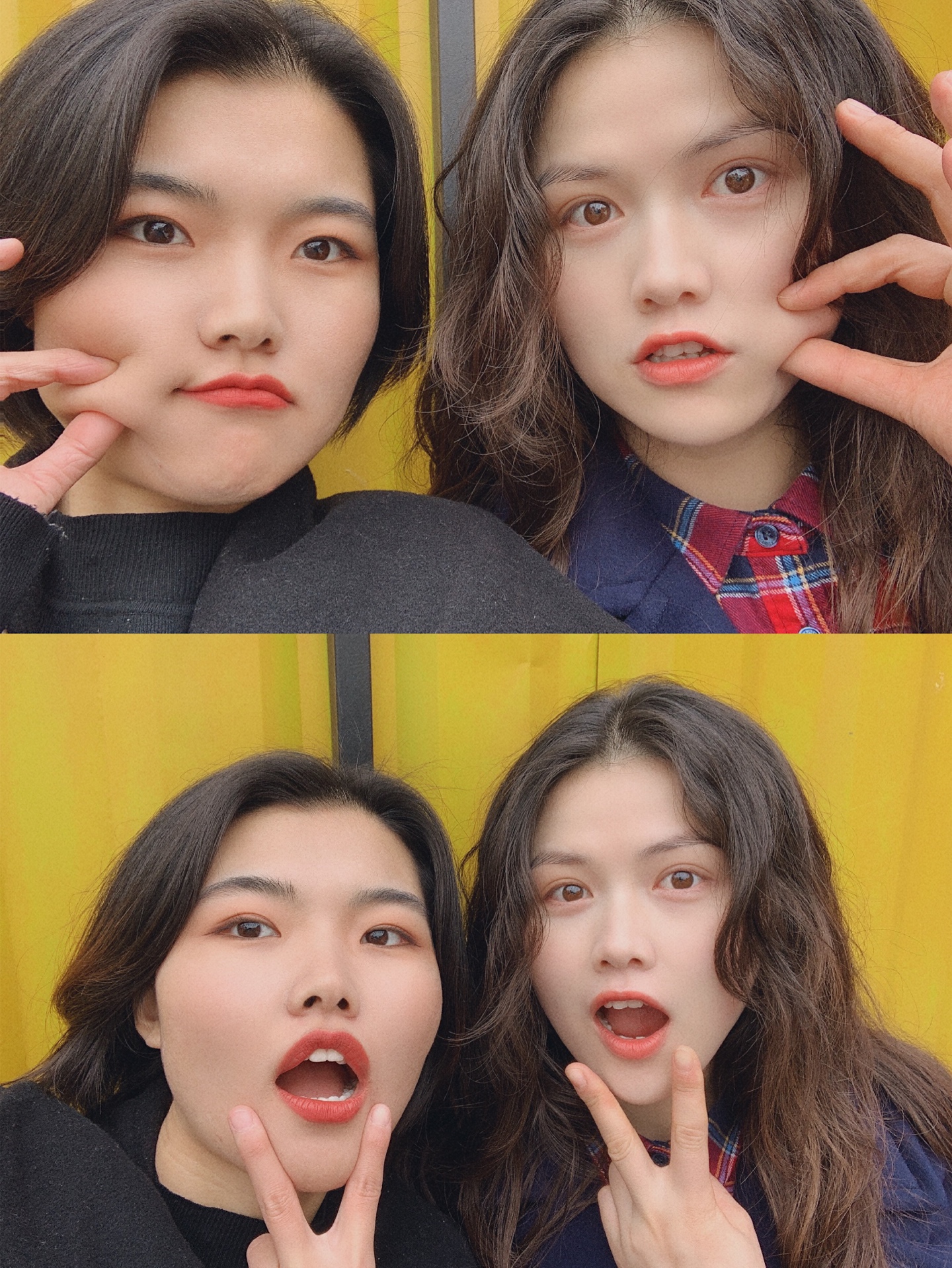 然后就是自由发挥尽情创作啦 一样的动作和表情会很可爱 捏对方的脸会很俏皮 就连土味比心也很有爱☺