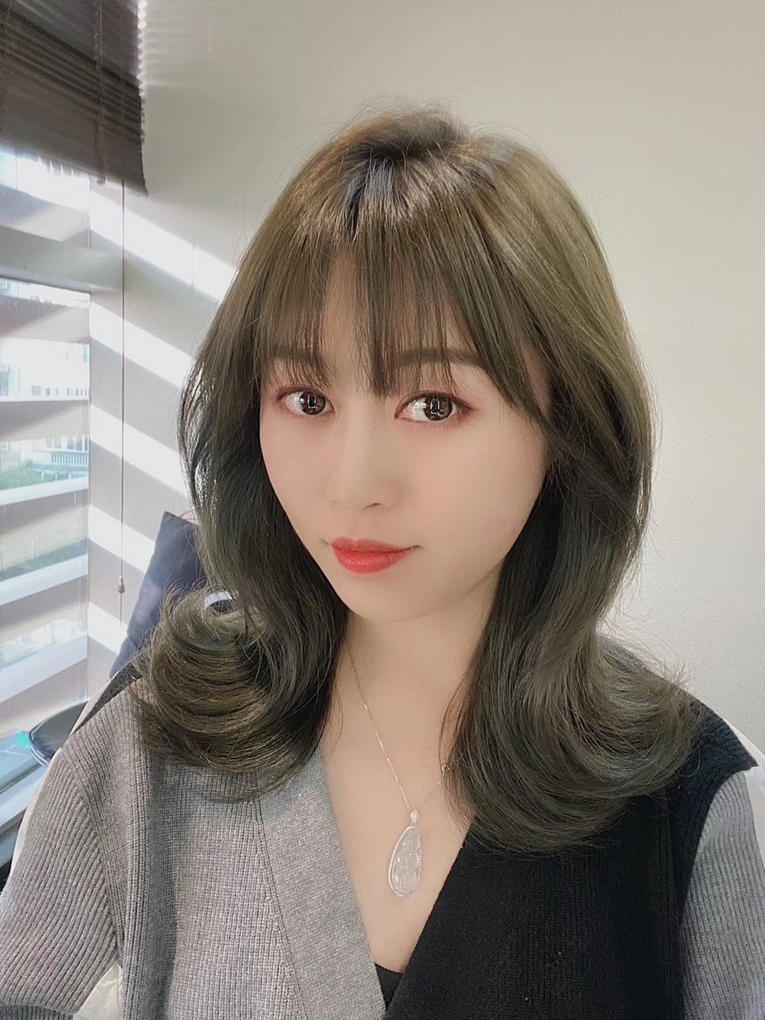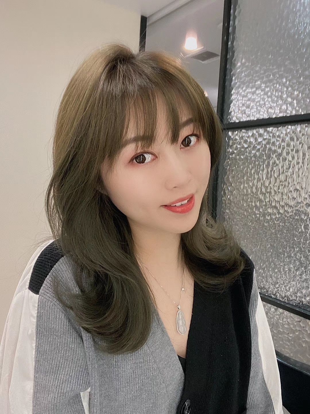 青木亚麻灰锁骨发,冬日亮色系发色,又带着刘海来爬墙啦!鱼尾外-美图社区-美图秀秀