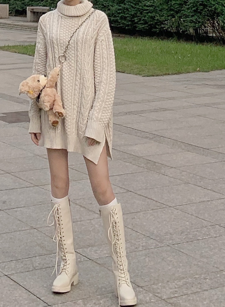 还有超级温柔的米白色宽松中长款毛衣 超级百搭又显气质😋