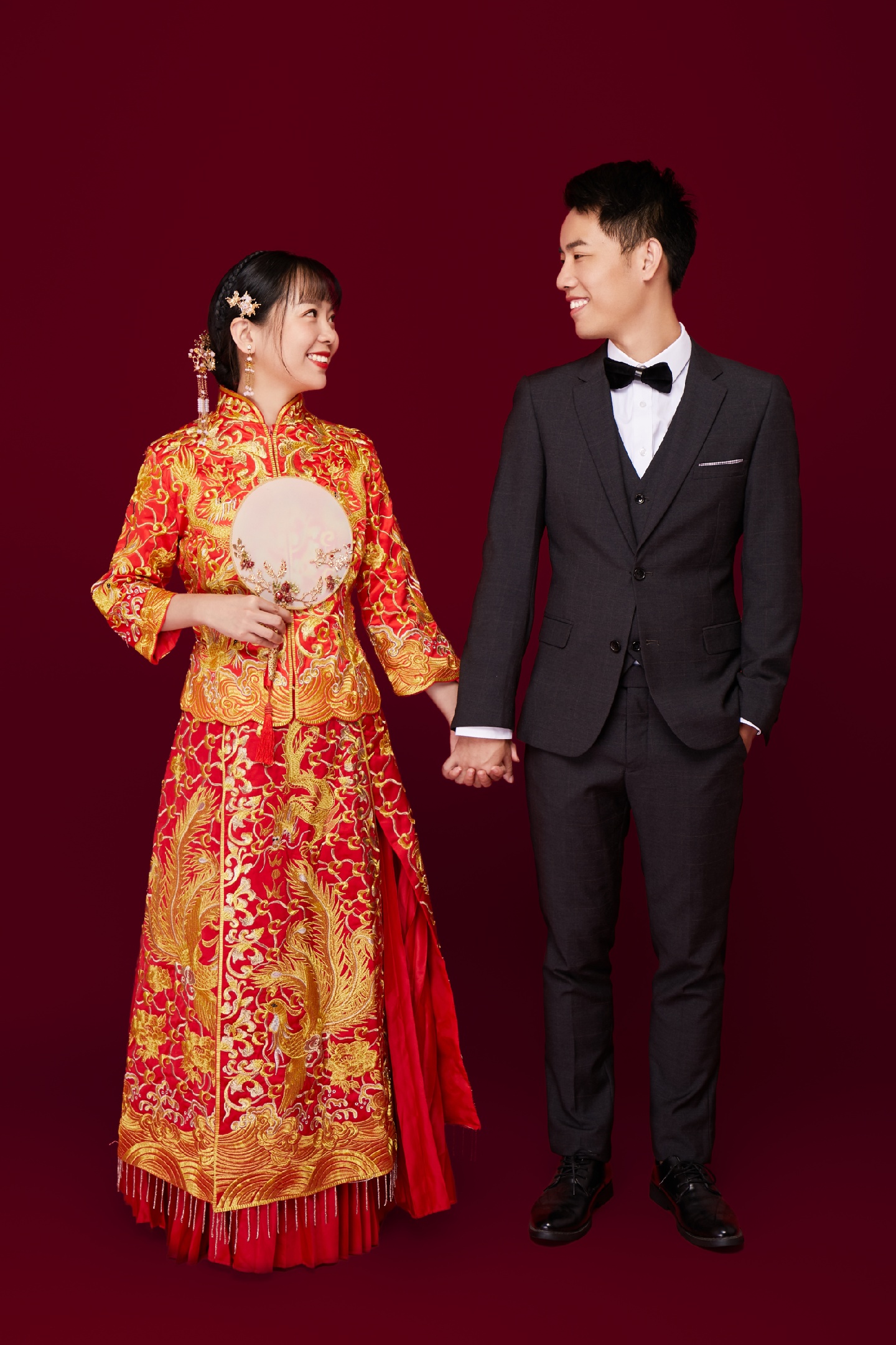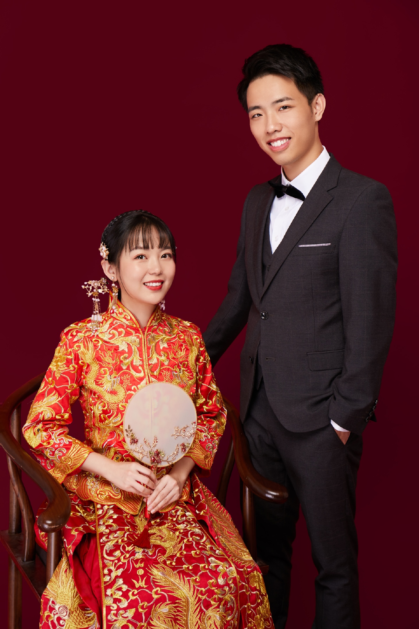 太多人结婚都会选择西式婚纱照。其实中式结婚照也是很好看,拍完能够感受到满屏的喜气!在海马体拍了这一套中式合照,店里没有男士的中式服装,本来以为秀禾搭配西装会不伦不类的,结果还好耶,并没有很奇怪。