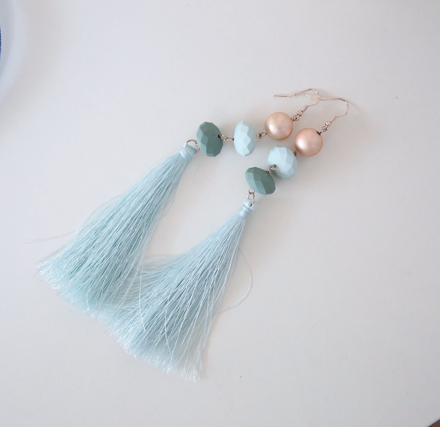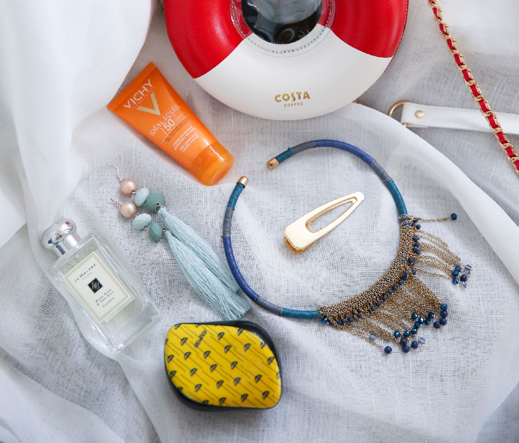 这次来三亚我带了蓝色系的首饰,加上流苏的元素就是满满的民族风,一对流苏耳坠,一个流苏choker,觉得搭配波西米亚长裙有点太花哨了,我就搭了一条白色的吊带连衣裙!#看我七十二变晒穿搭# #女生包里有什么#