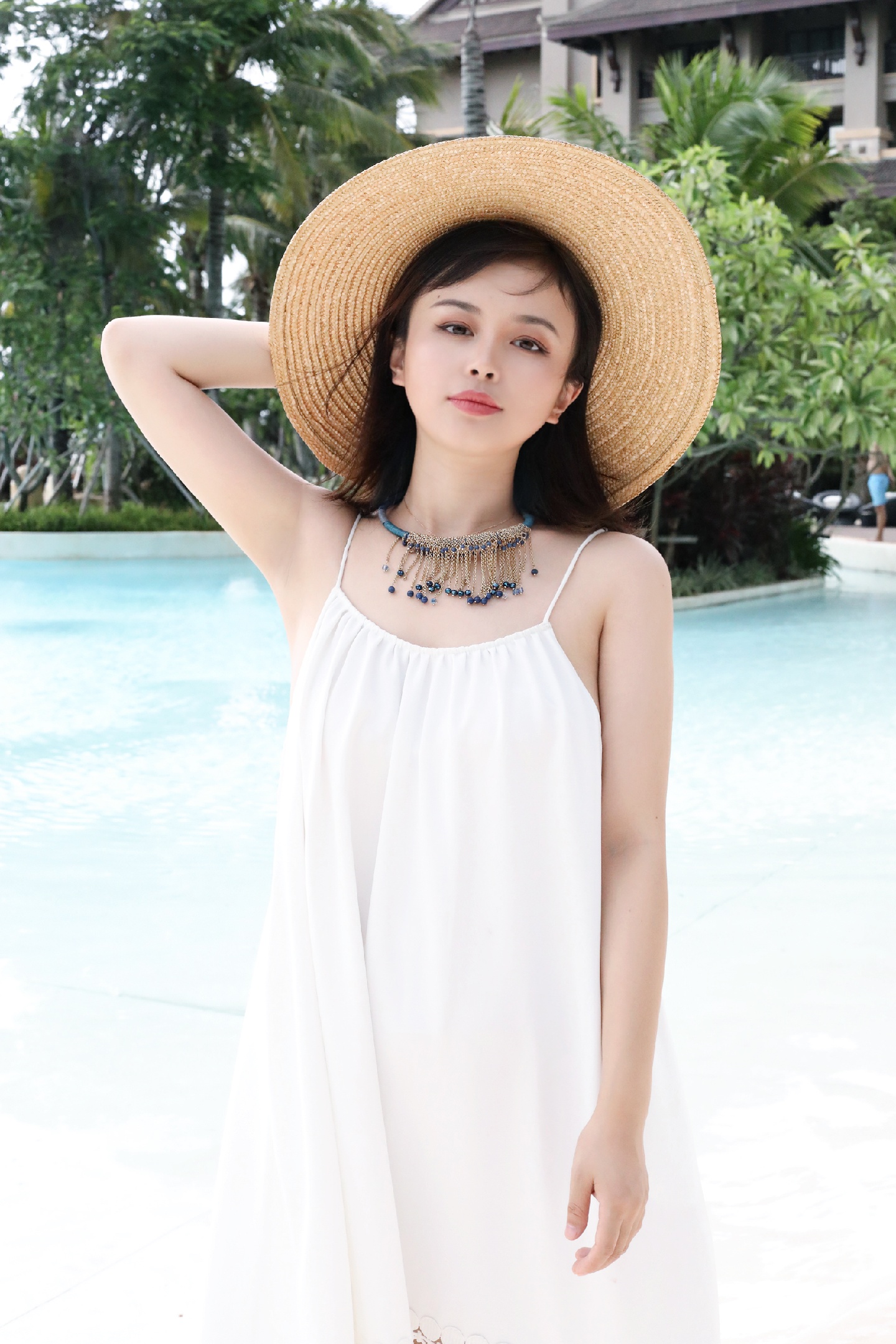 去海边旅行当然要选民族风的首饰,穿着波西米亚长裙搭配民族风首饰和遮阳帽是海边穿搭的标配,或者穿白色连衣裙也很好看~