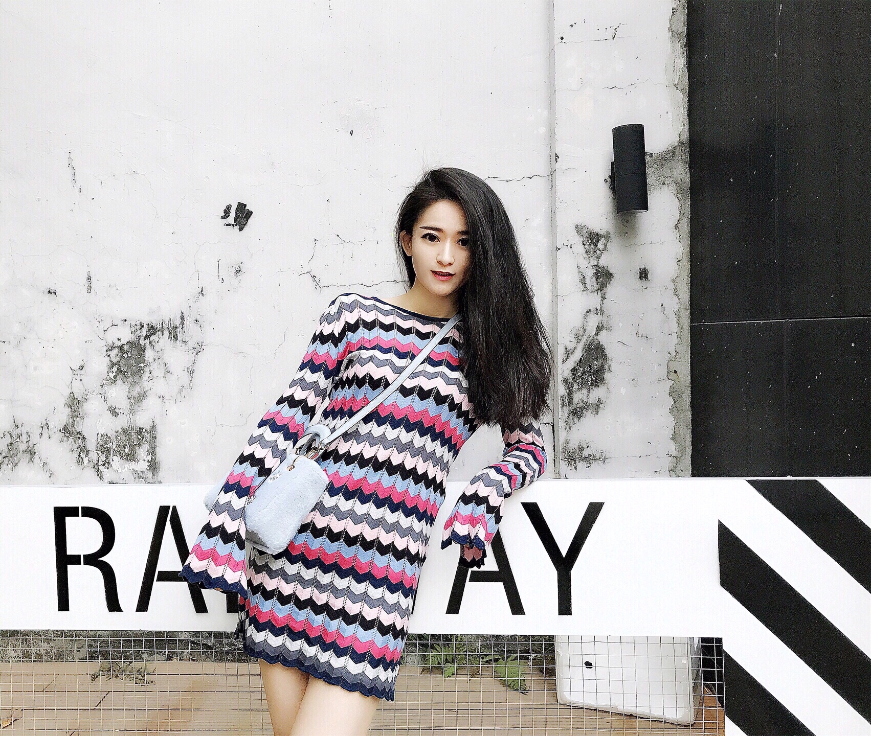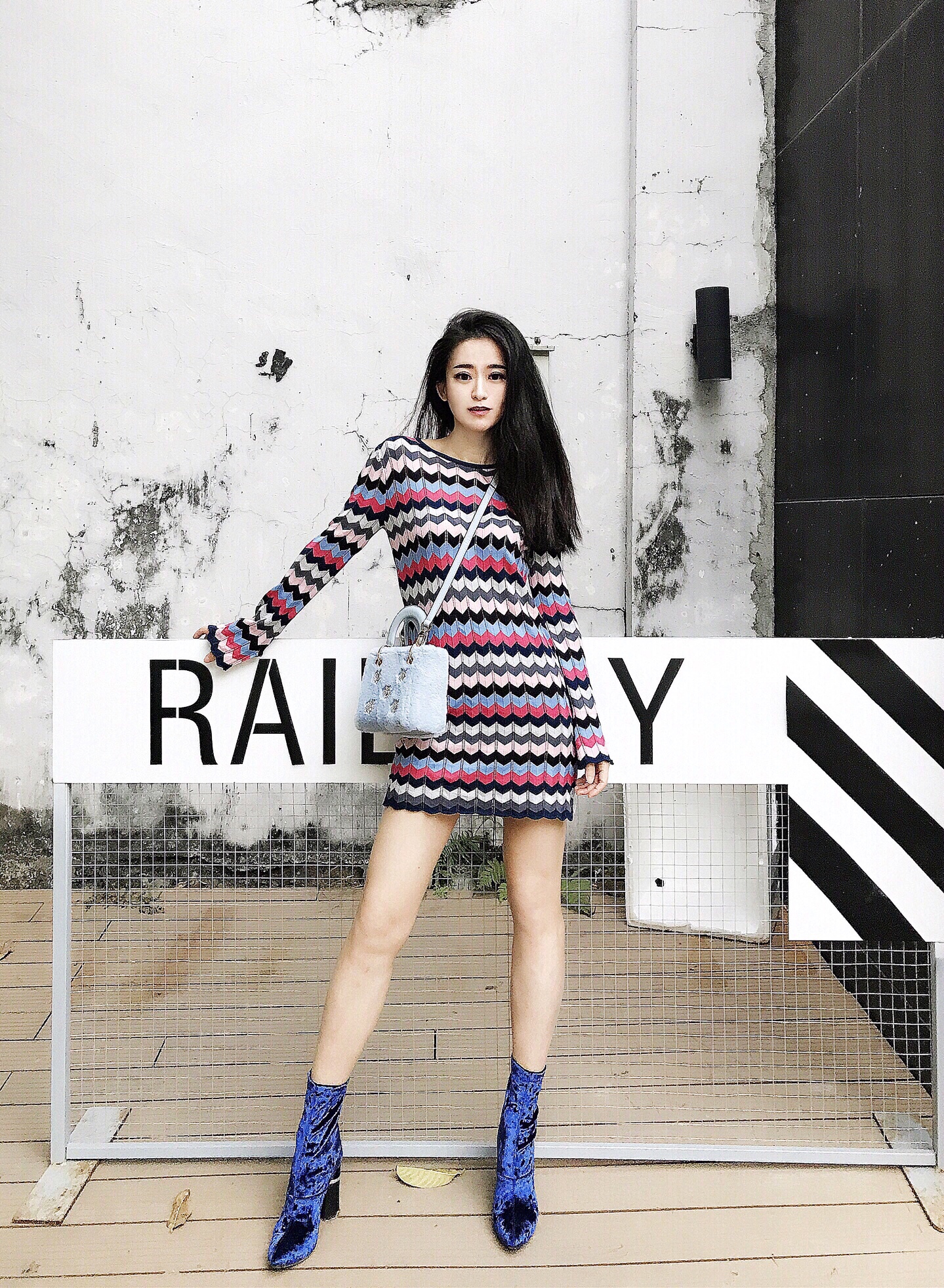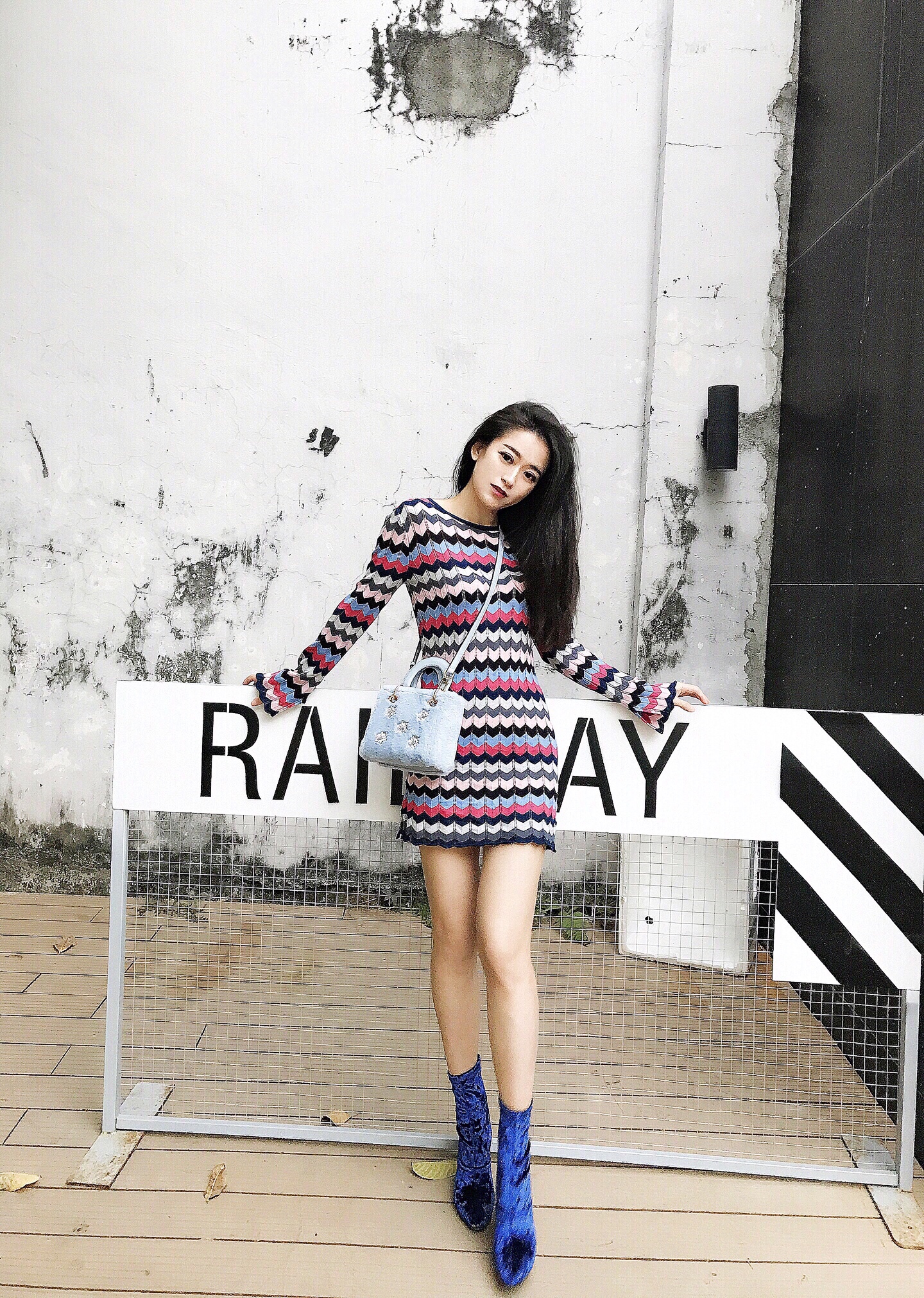 #蓝色丝绒靴# #条纹针织连衣裙穿搭#