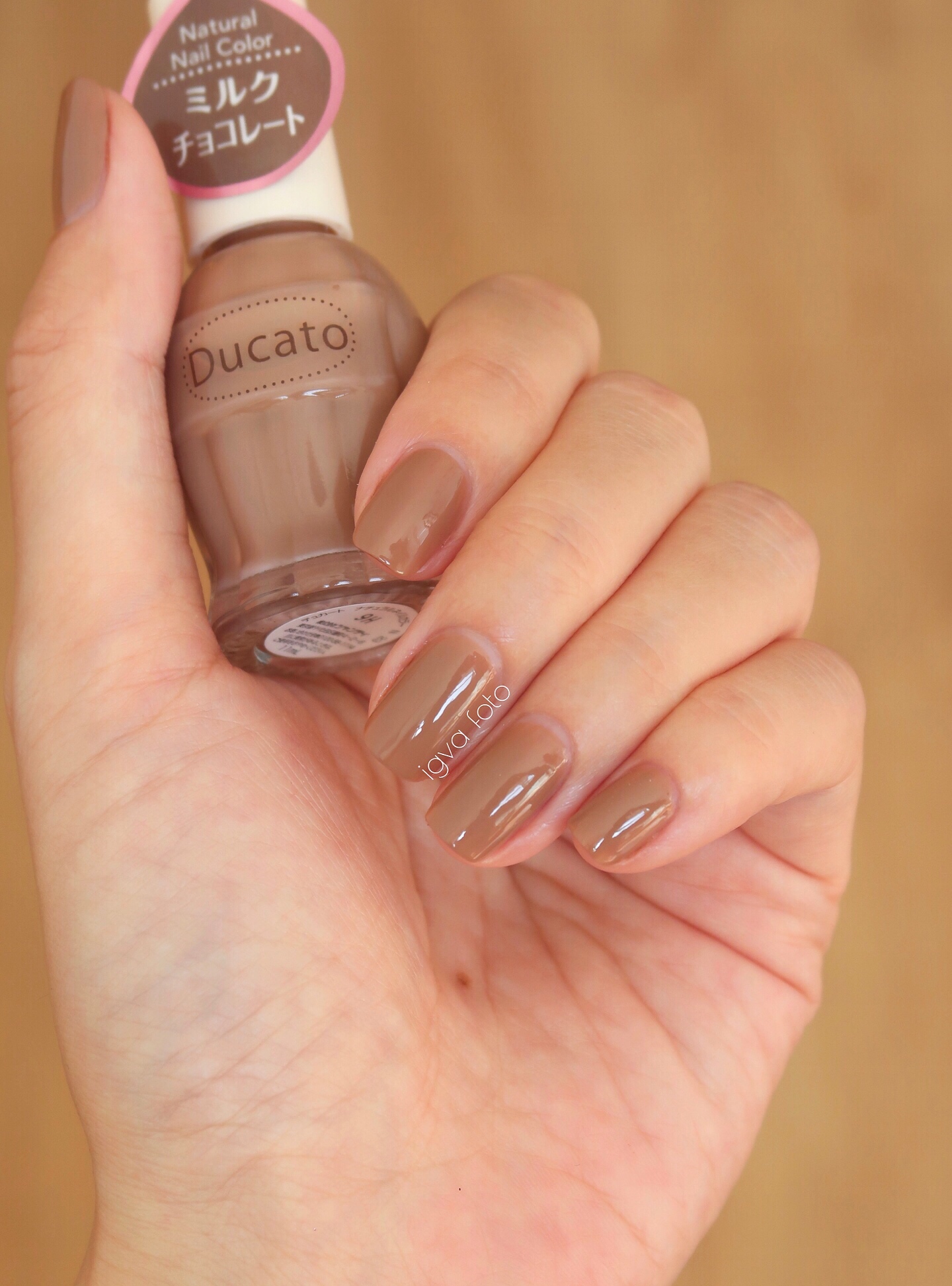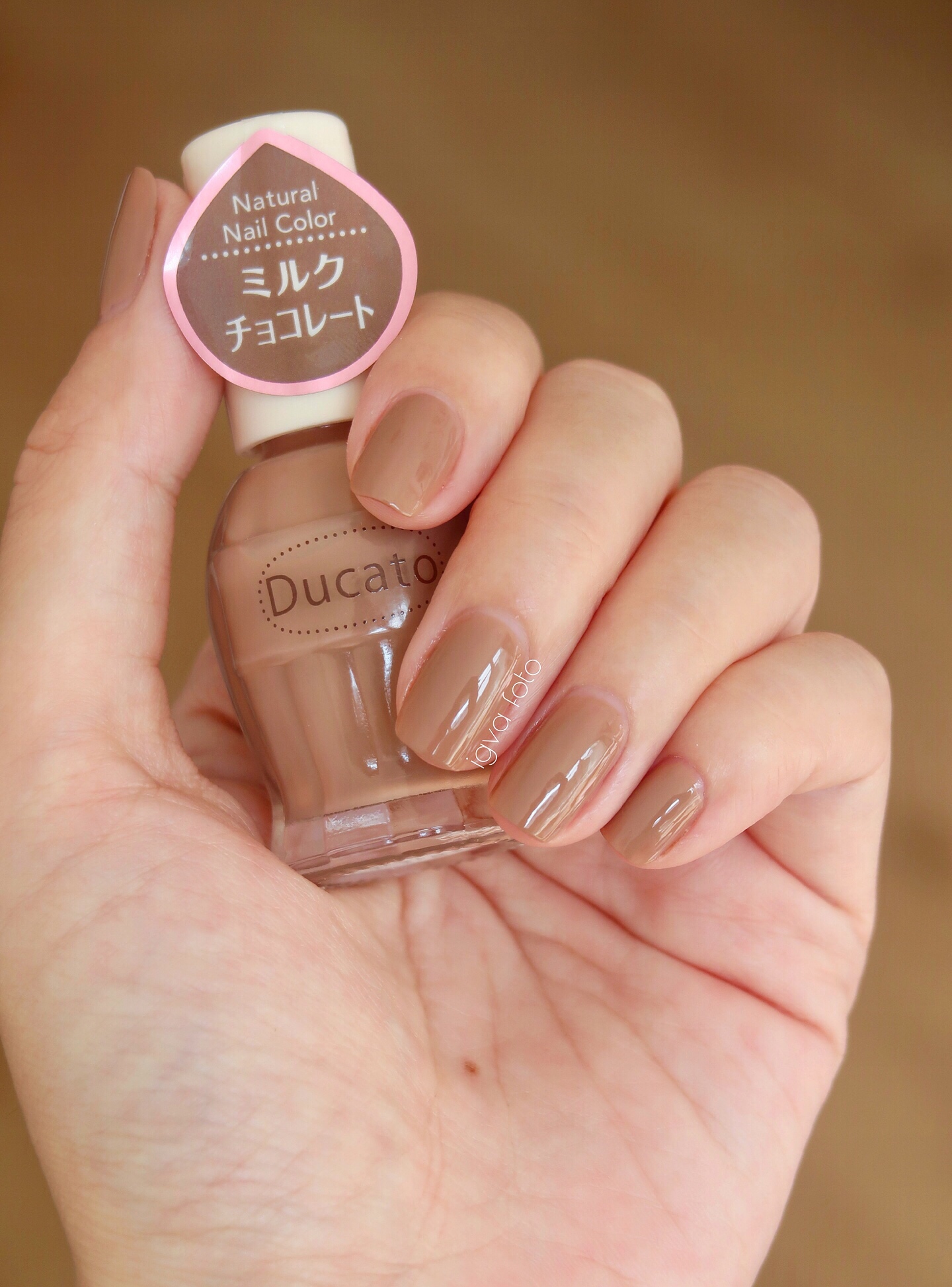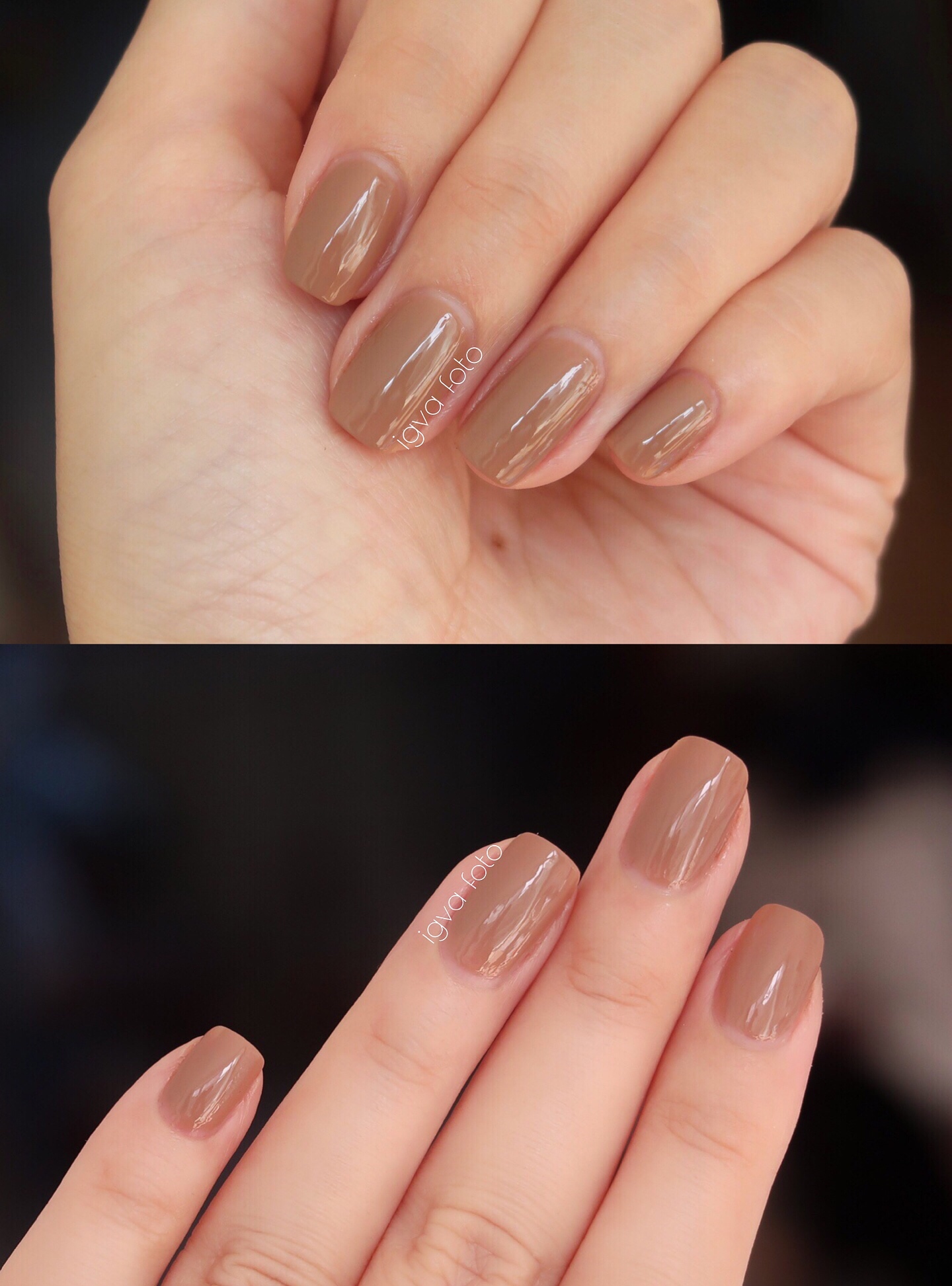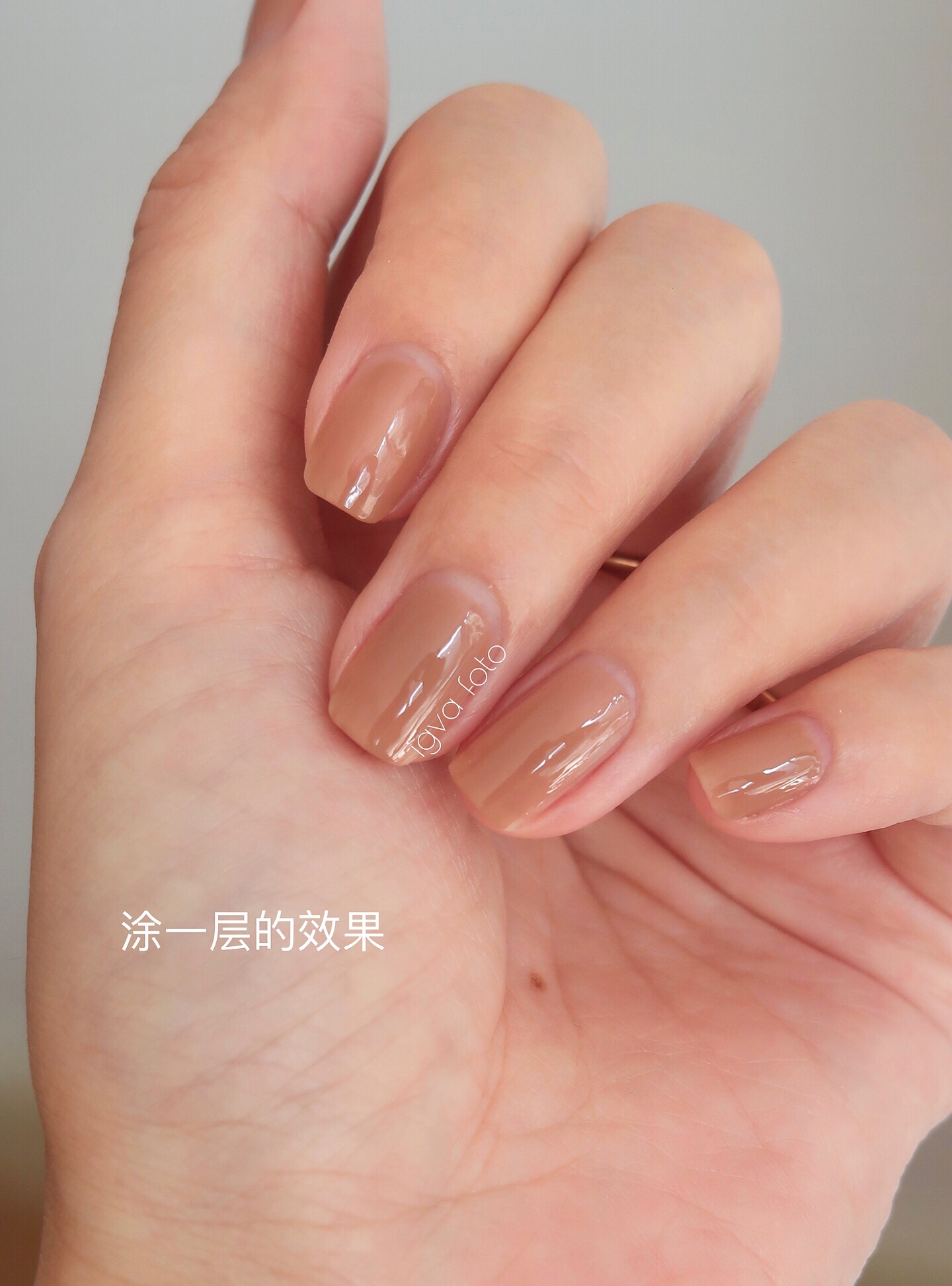 这瓶是我很喜欢的一款秋冬指甲油的颜色色,柔和、雅致、还很好搭配。就像它的名字一样,奶茶可可。涂一遍透亮但不容易涂均匀,涂两遍就均匀了,颜色会相对厚一点,我平时都是涂两遍。