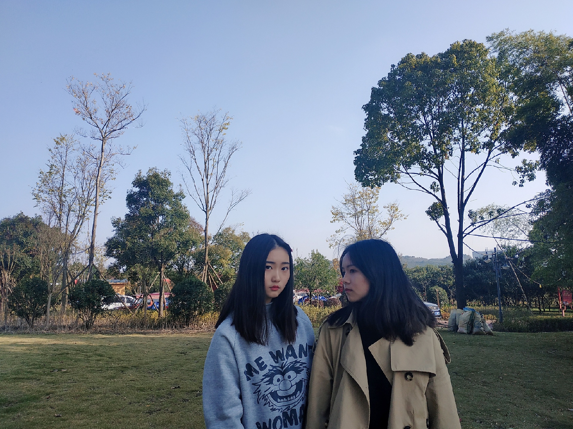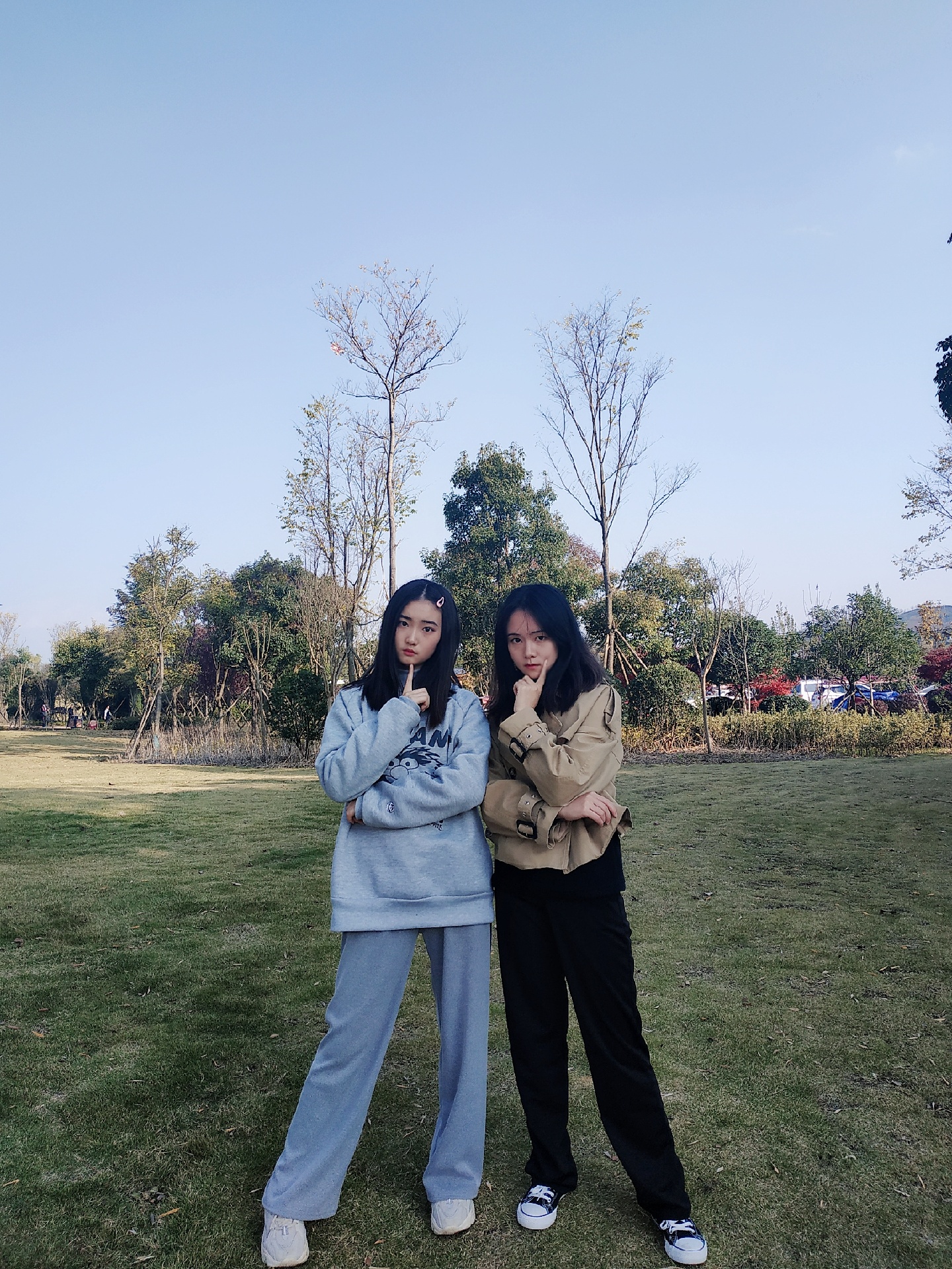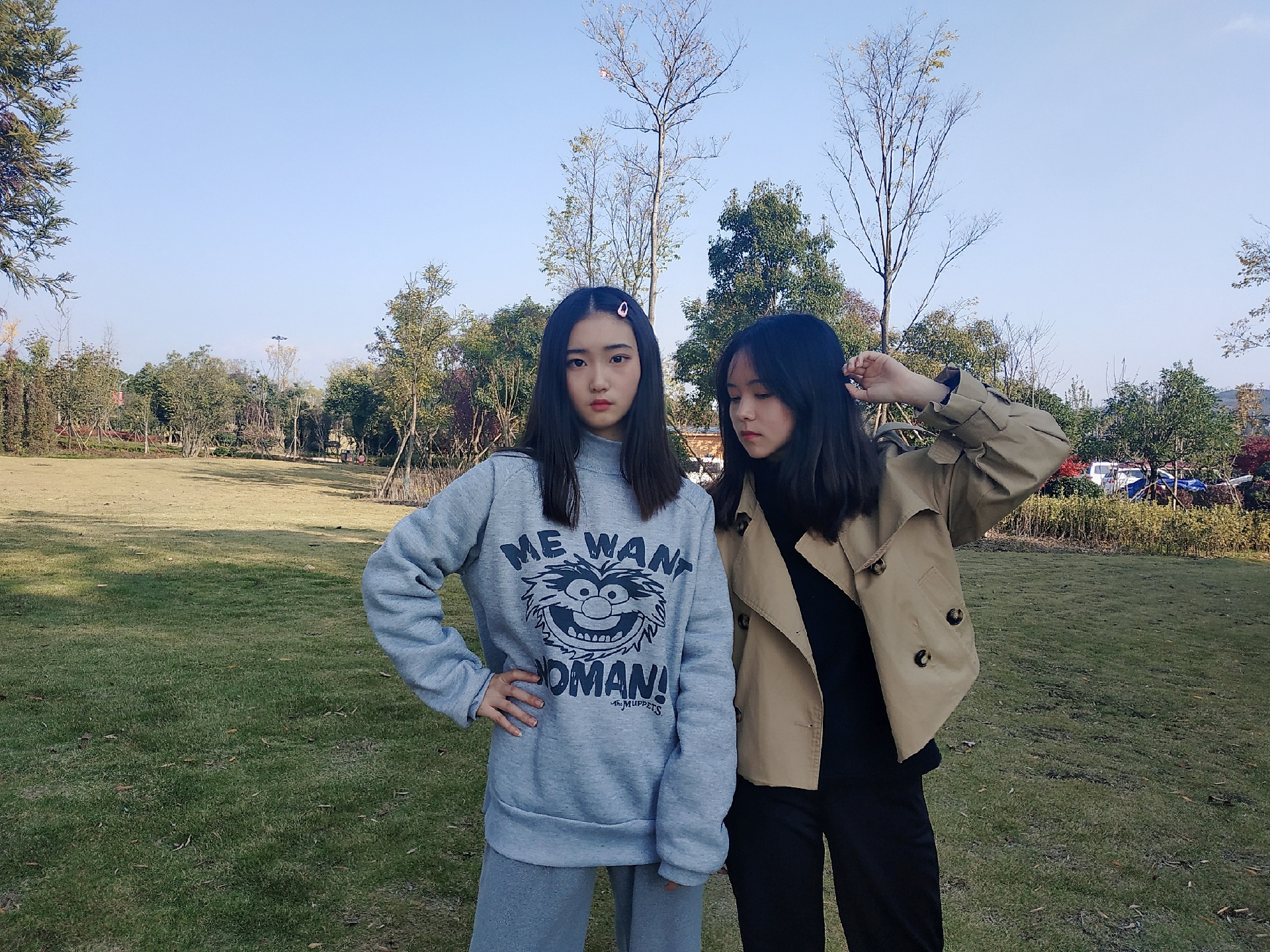 4⃣第四张动作:一人叉腰看向镜头,另一人摸头看向别处