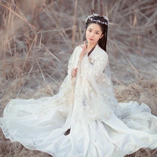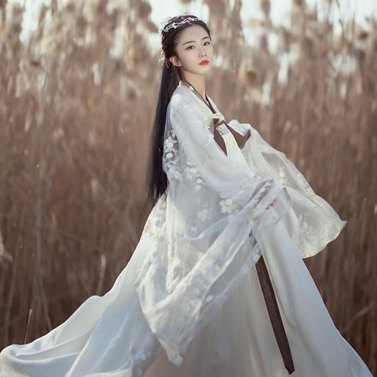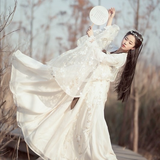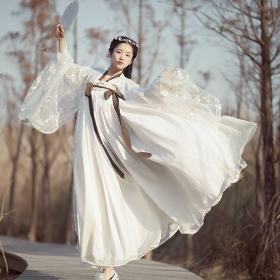 雪纺齐胸襦裙绣花大袖衫2019新款夏装改良白色汉服女学生古装-美图社区-美图秀秀