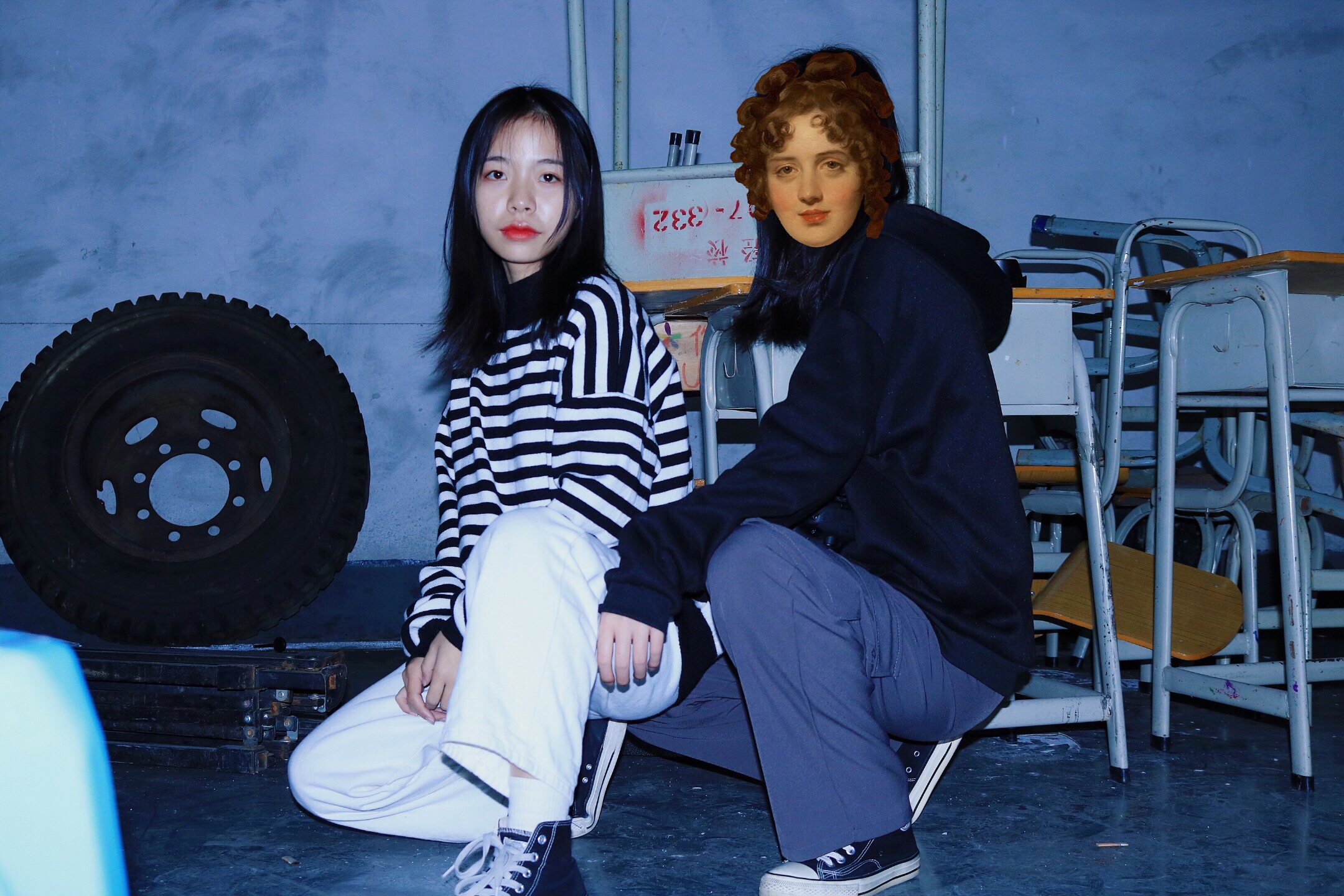 #停车场拍照##美图秀秀面瘫挑战#💫学校废弃桌子 停车场摆拍 加上美图秀秀的滤镜💫⭐️