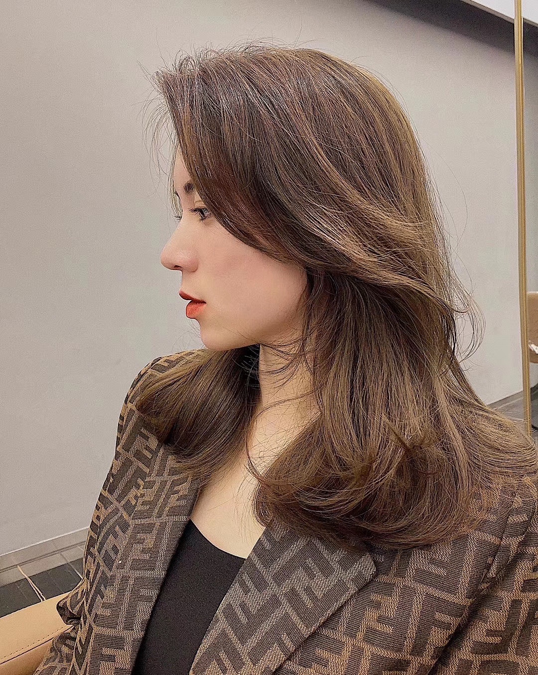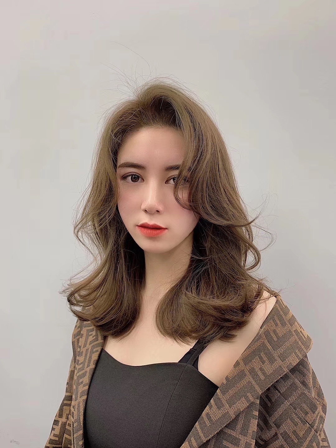 八字飞尾刘海与大c卷组合搭配茶棕色高级感十足,气质流#发型##发型#