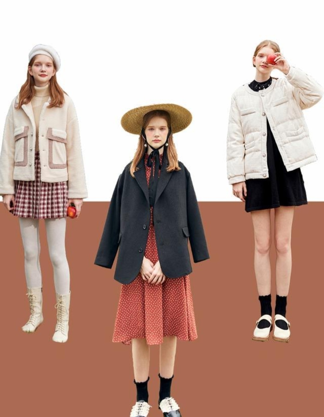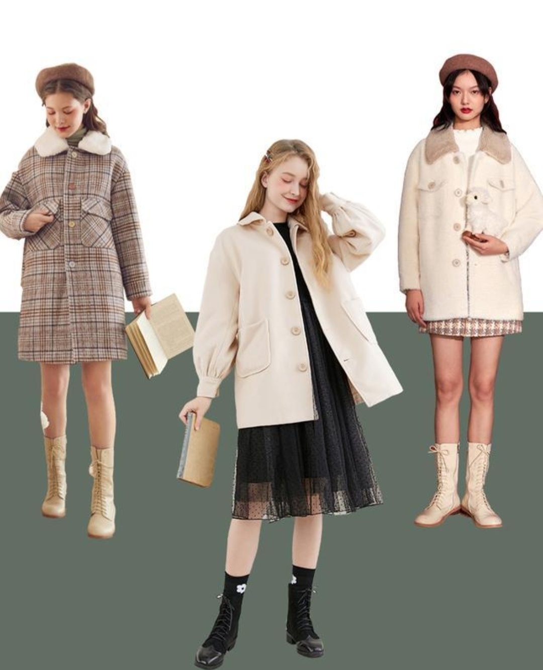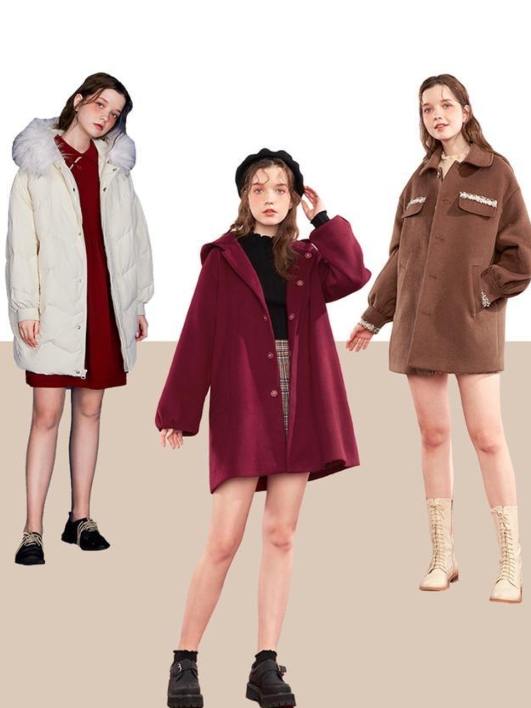 👉红色的连衣裙自带文艺气息,加件羽绒服保暖效果超好🎈黑色花边毛衣和A字裙搭。棕色呢大衣搭配白色的长靴。