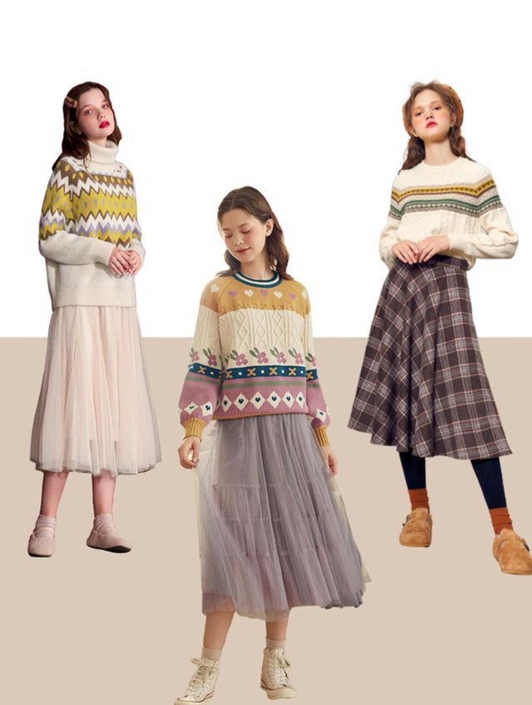 👉毛衣的出镜率在冬季相当高,需要各种印花毛衣来衬托。可以搭格纹裙或者是纱裙,复古又时尚🎏