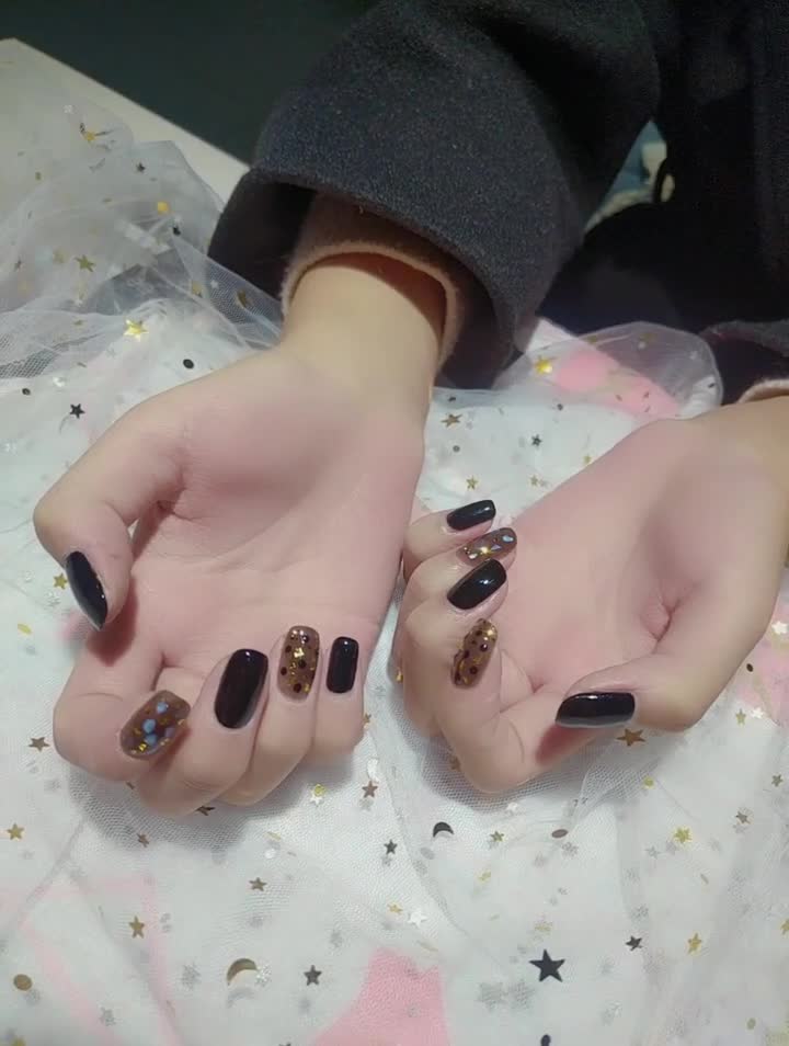 波点美甲适合秋冬的一款美甲黑色系美甲秋季美甲-美图社区-美图秀秀