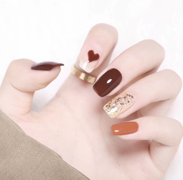 🔥红棕色的囗红,焦糖色的美甲,冬天的绝配。