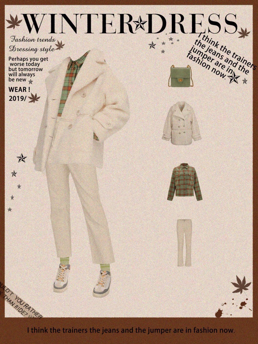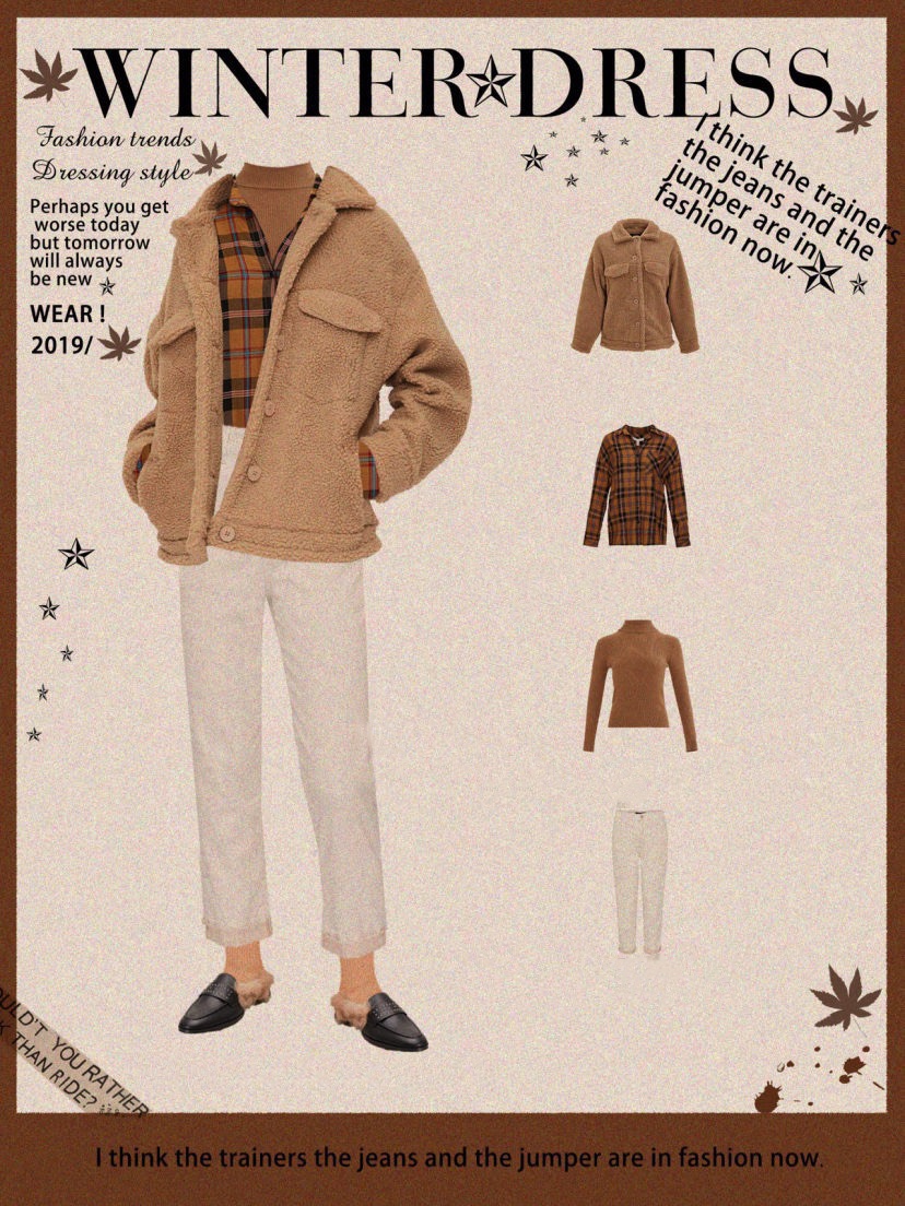 ✨同色系穿搭,内搭同色系格子衫,裤子再穿条简单的白色,温柔舒适!