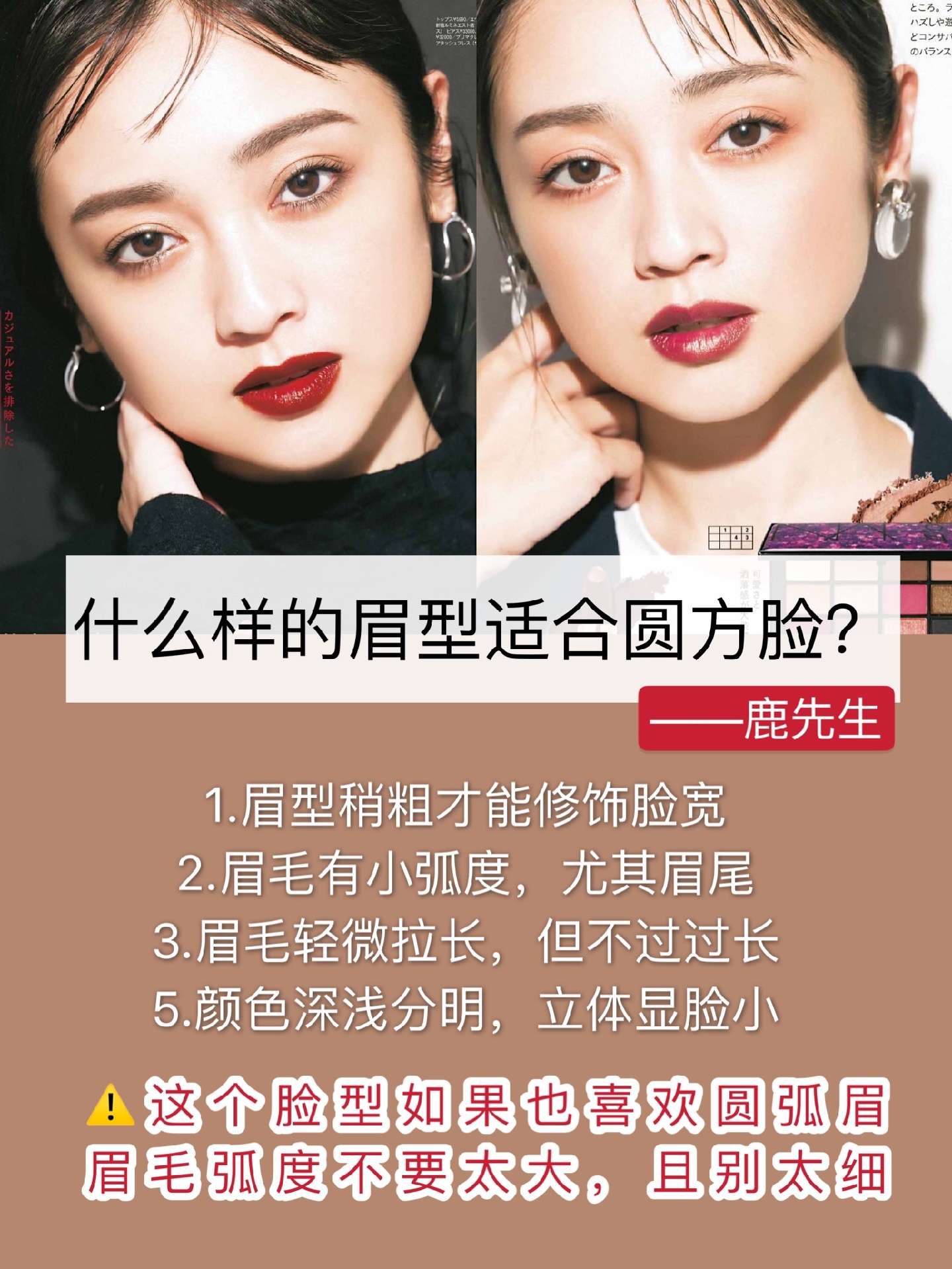 🔹生活中很多人的脸型是:——圆中带方,或方中带圆~ 都能参考这期的圆方脸标准眉型!