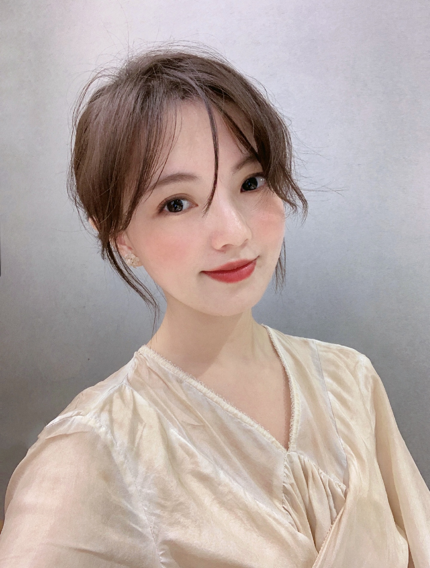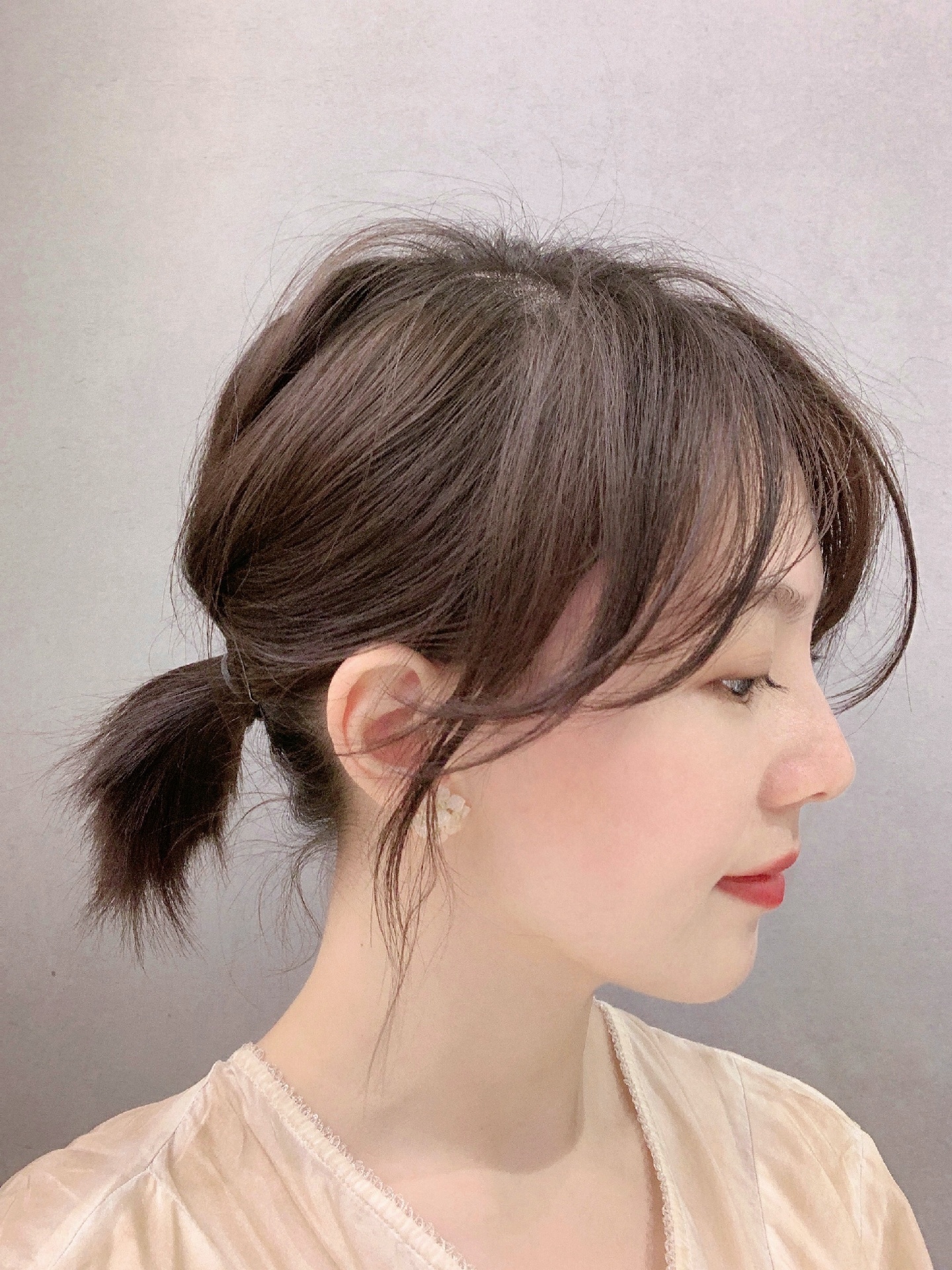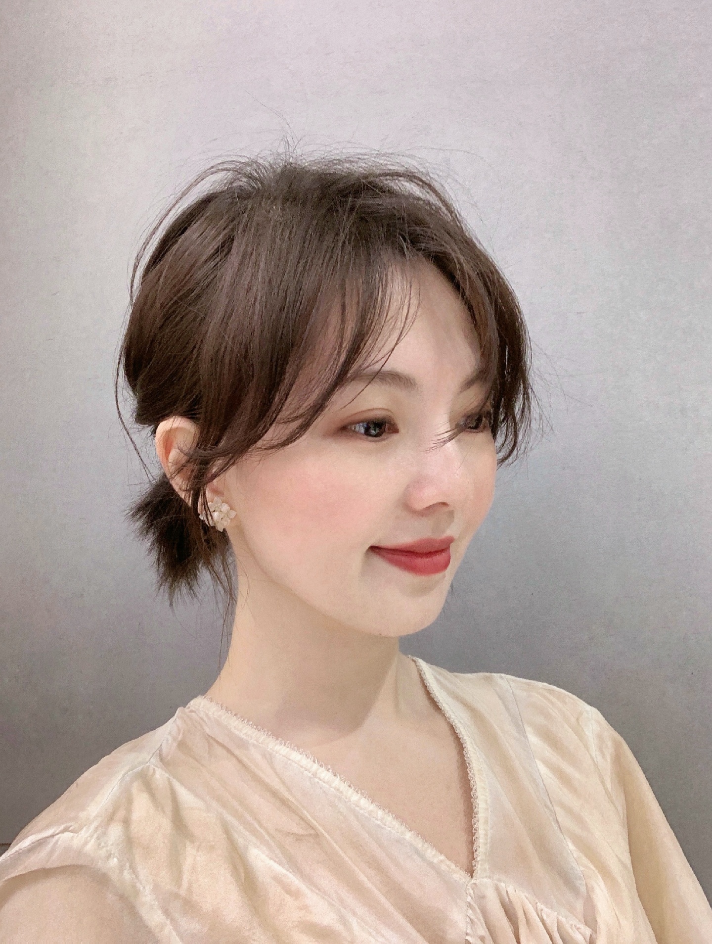 🔹另外,如果你是八字刘海配扎发,头发像我这样挑得乱蓬蓬一点更好看。