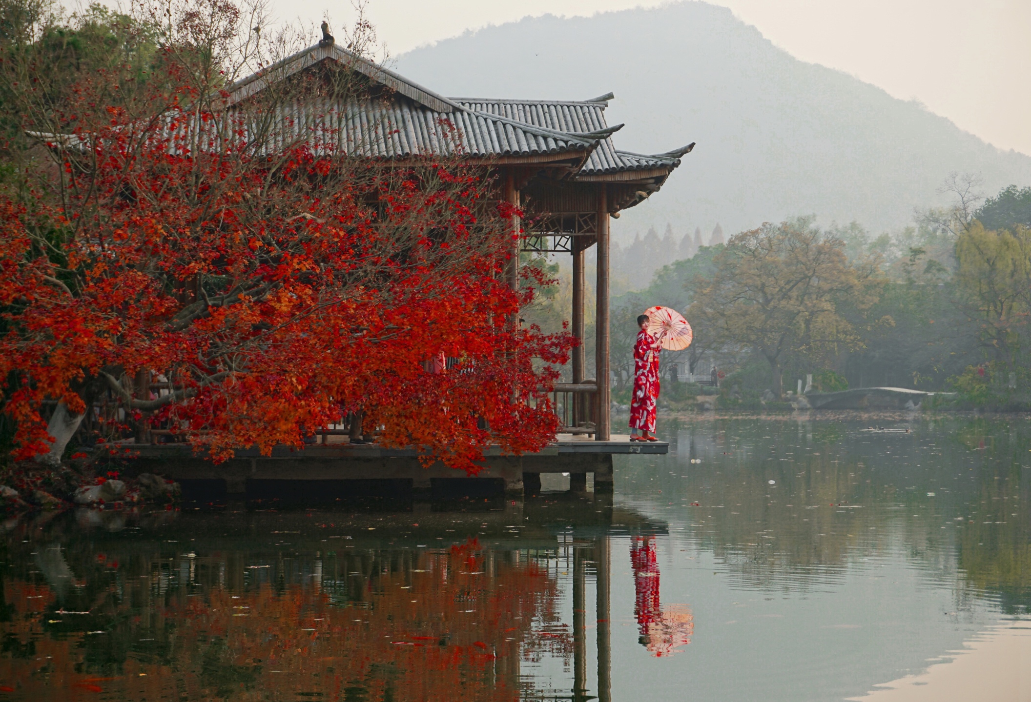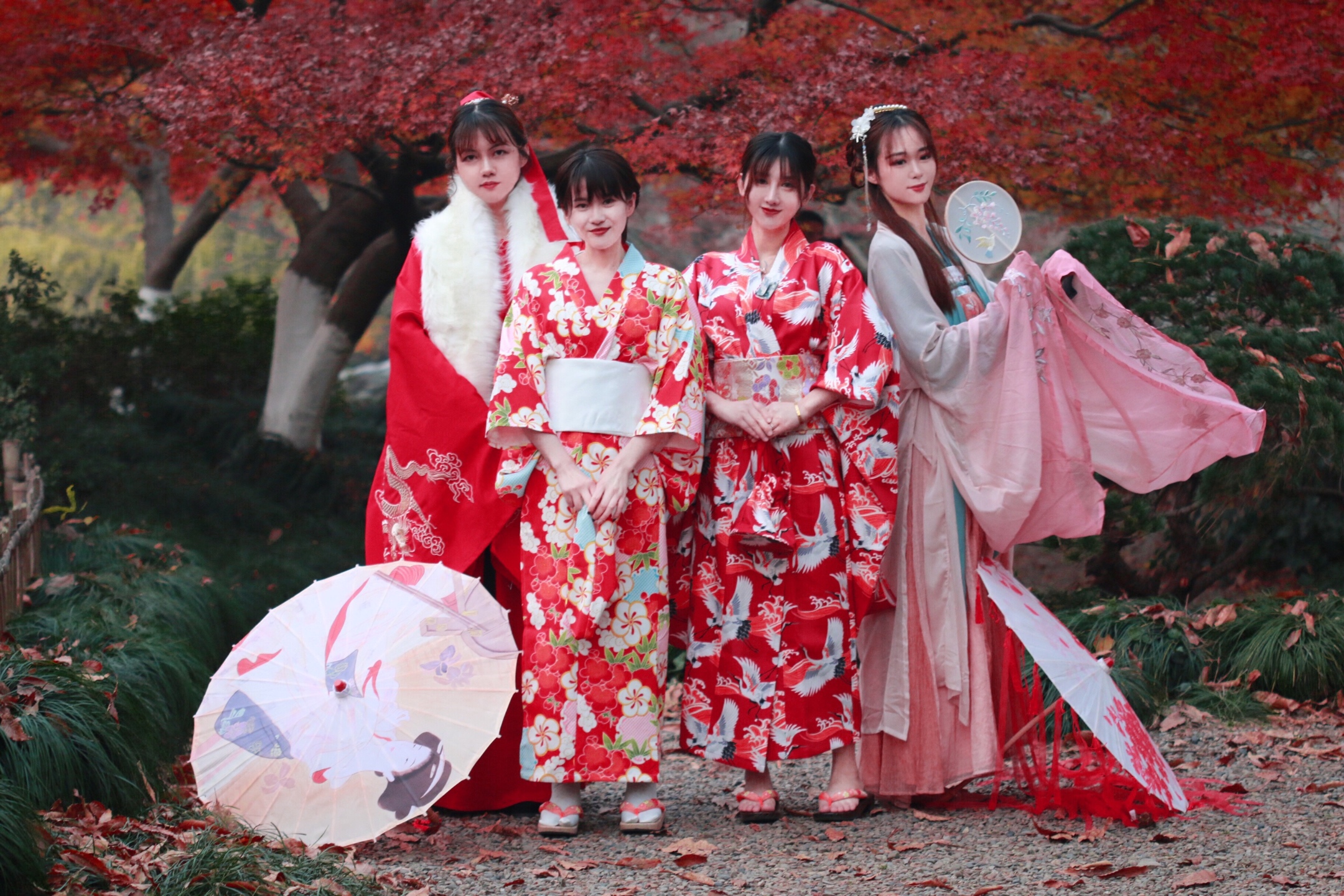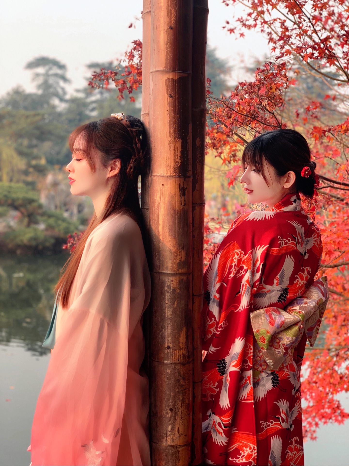 杭州枫叶,花港观鱼#拍照圣地##杭州#枫叶#枫叶##汉服##和服##闺蜜照#闺蜜#