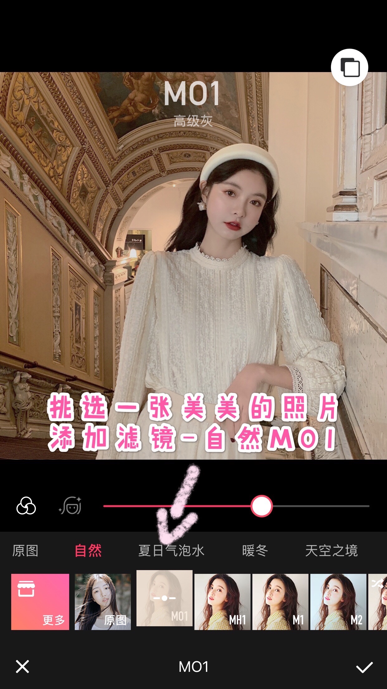 1、选择一张美美的照片添加滤镜-自然M01(高级灰)