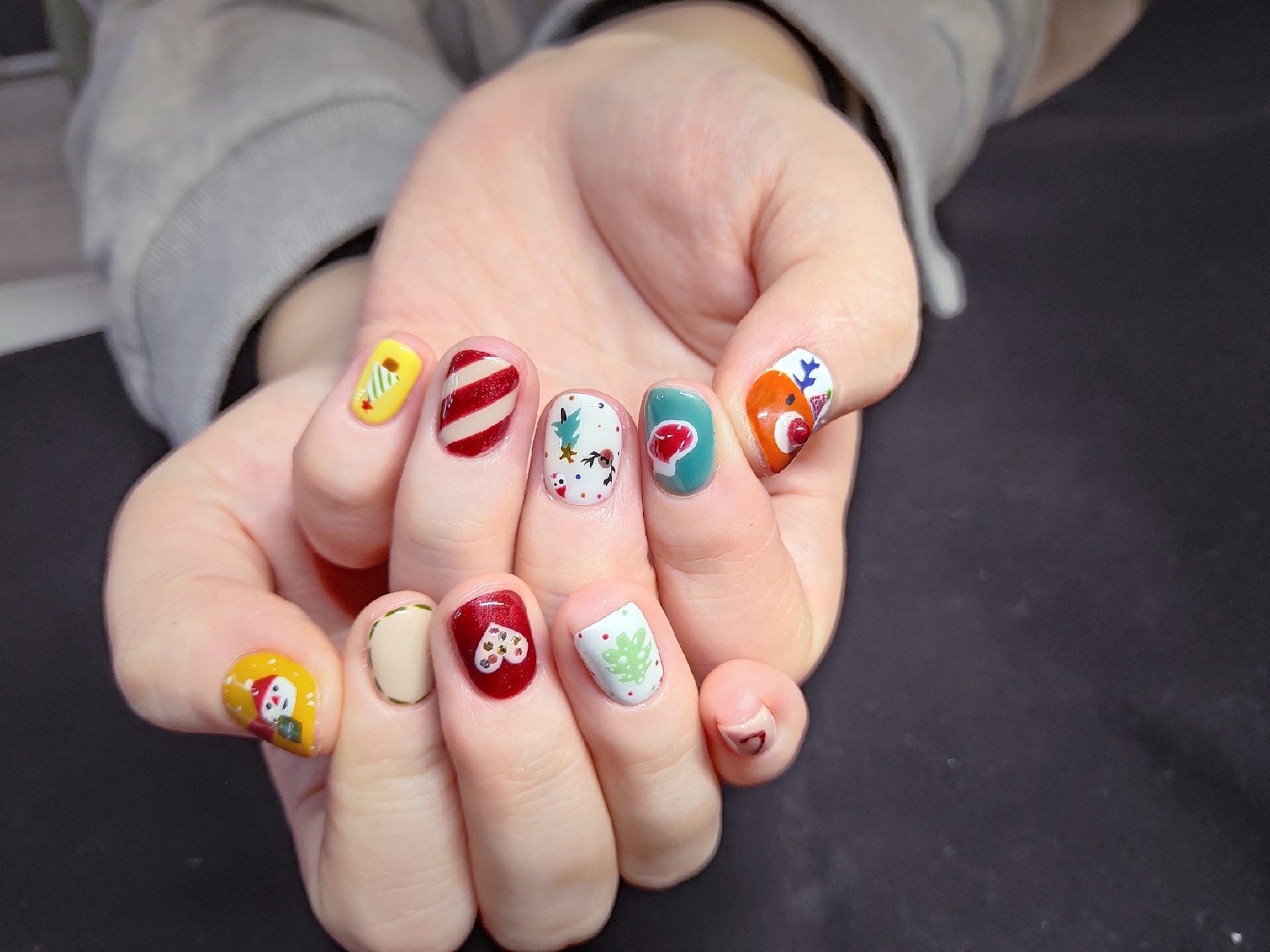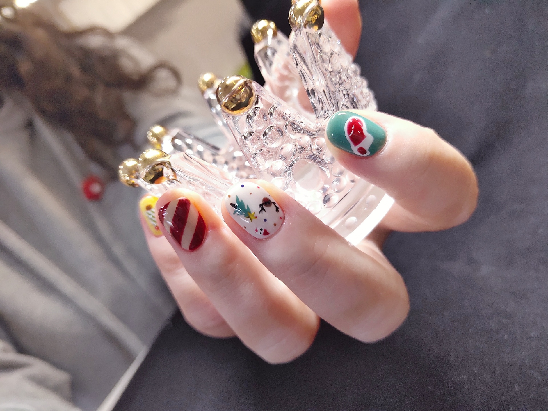 圣诞美甲十个指甲上都是手绘图案哦真是一点懒也没有偷到呢😄�-美图社区-美图秀秀